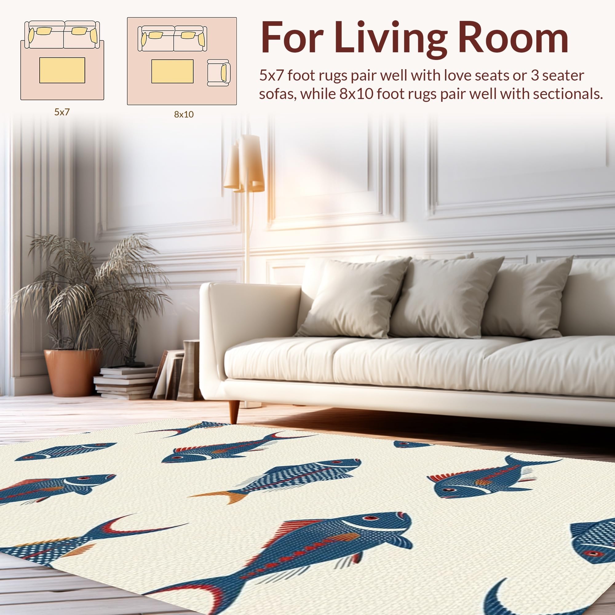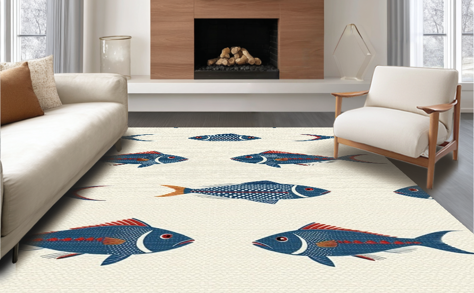 Ultra Soft Area Rug, Non Slip, Stain Resistant, Washable Area Rugs for Living Room, Bedroom, Transitional Bright Oceanic Color Palette(Beige) Overview: