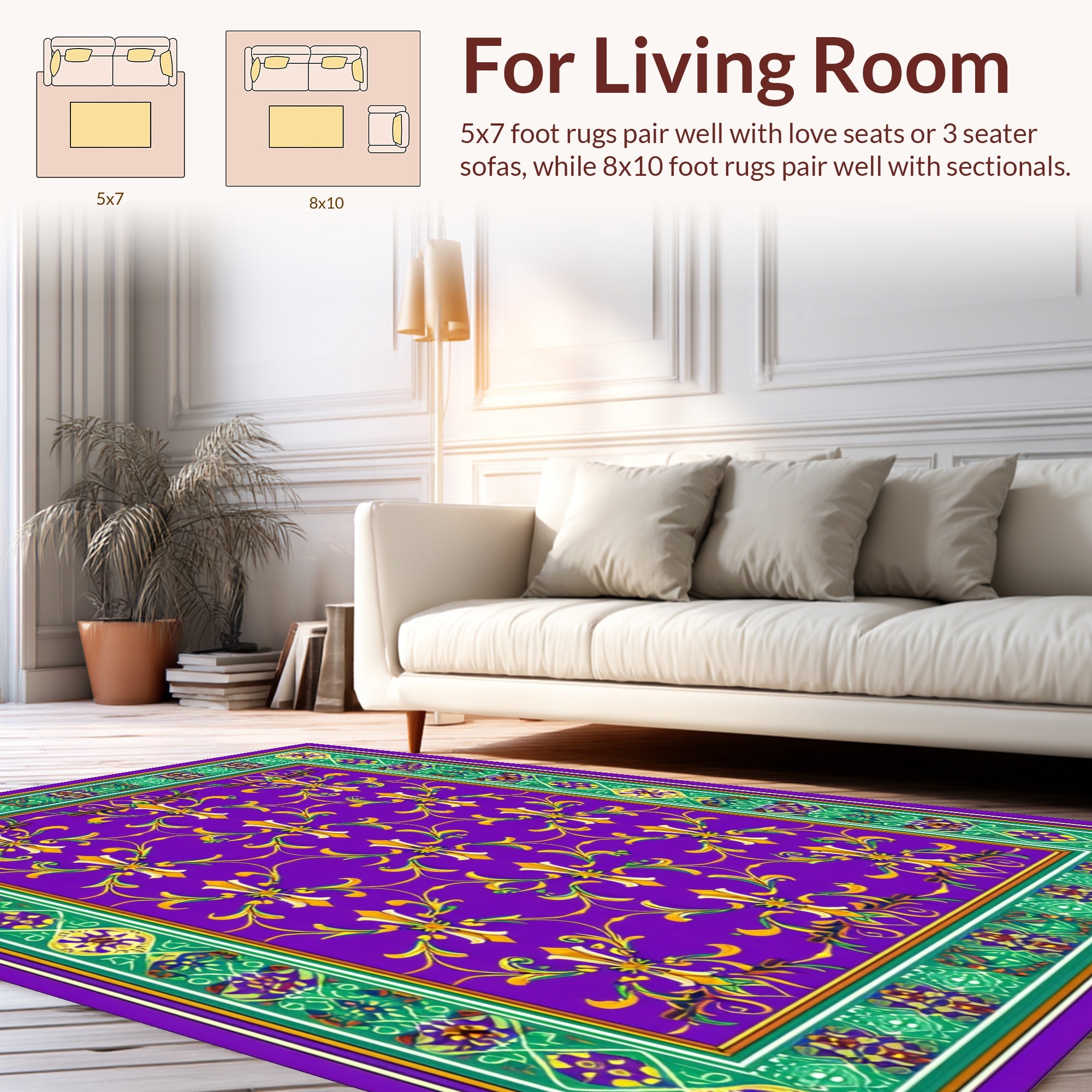 Flatwoven High Traffic Area Rug, Transitional Carnival Inspired, Non Slip, Stain Resistant, Washable Area Rugs for Living Room, Bedroom (Purple) Overview: