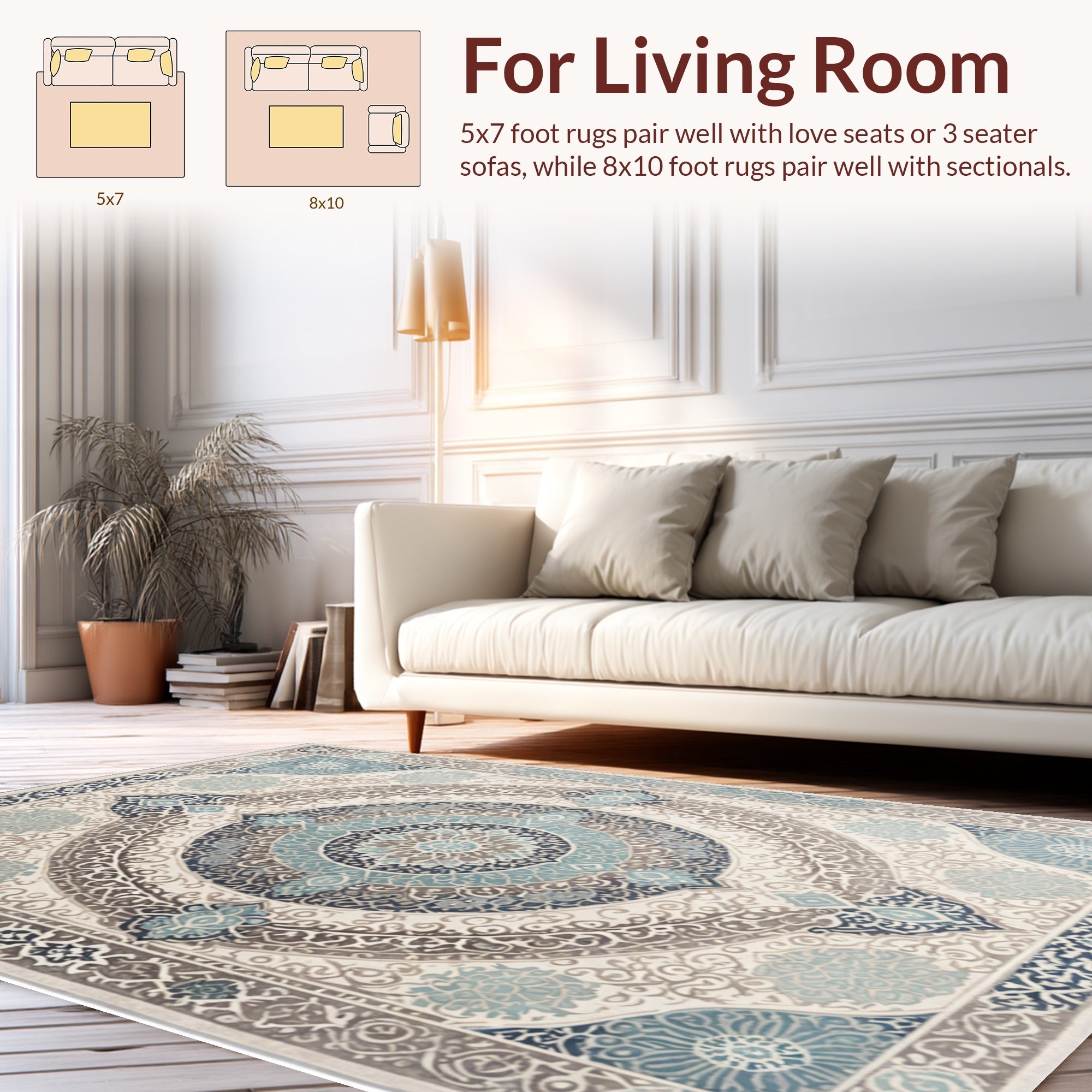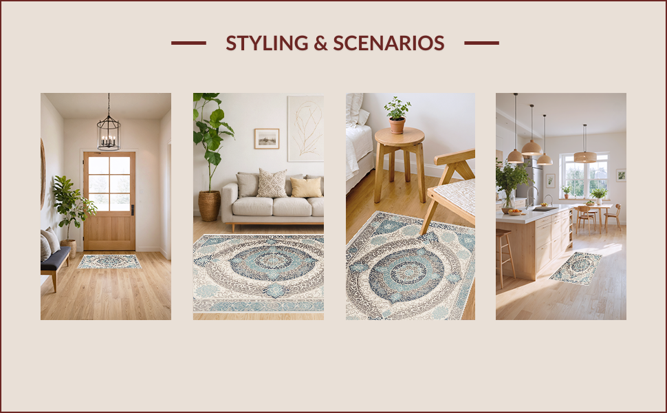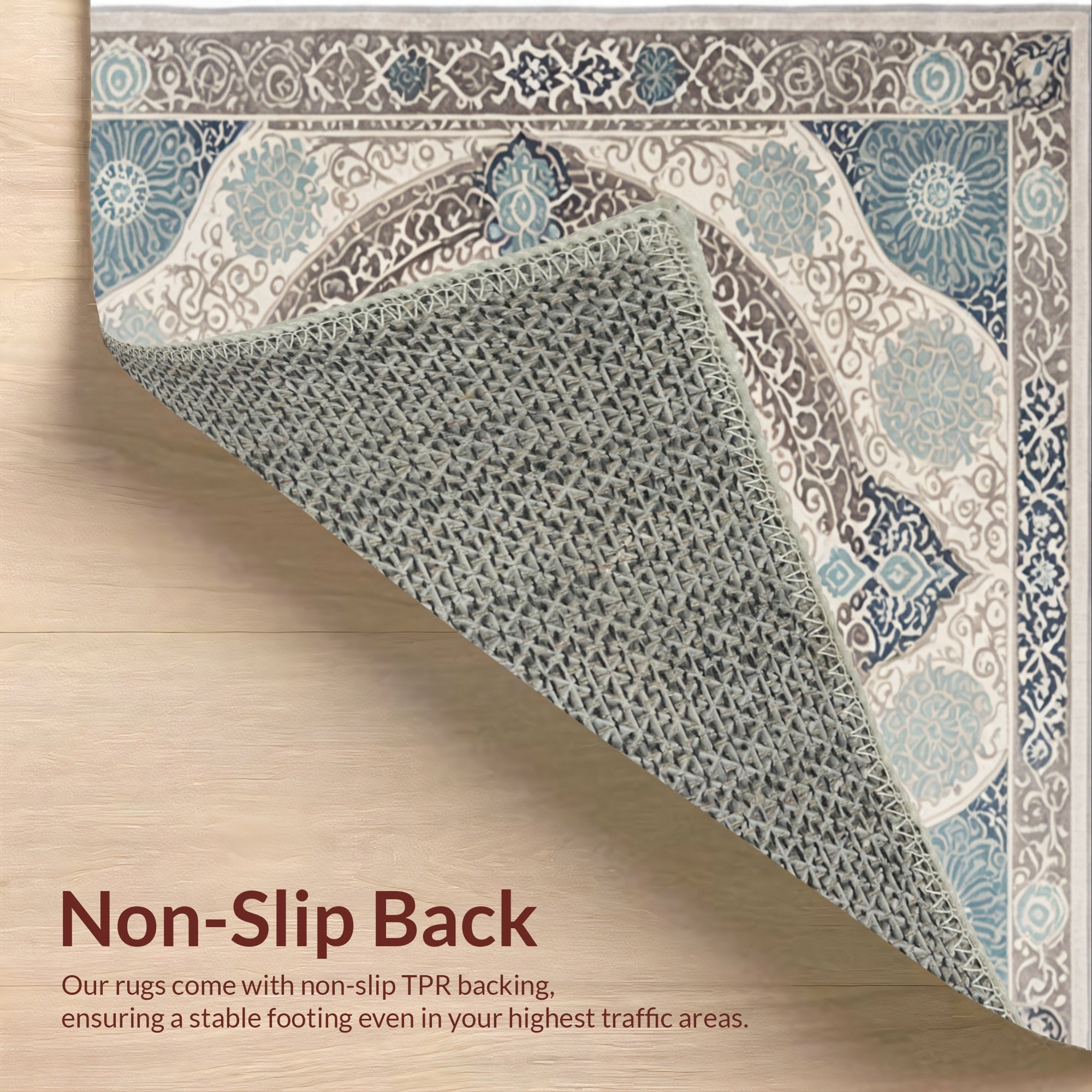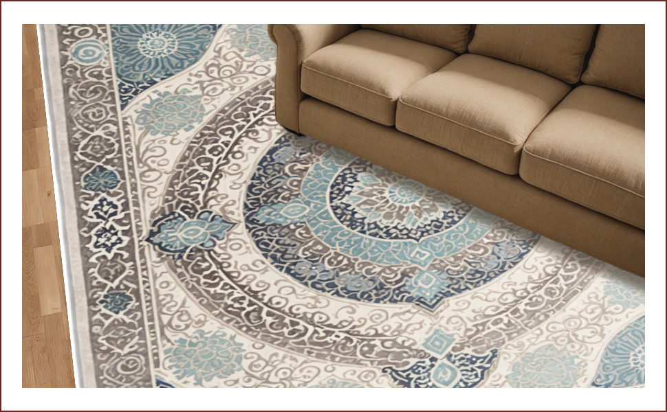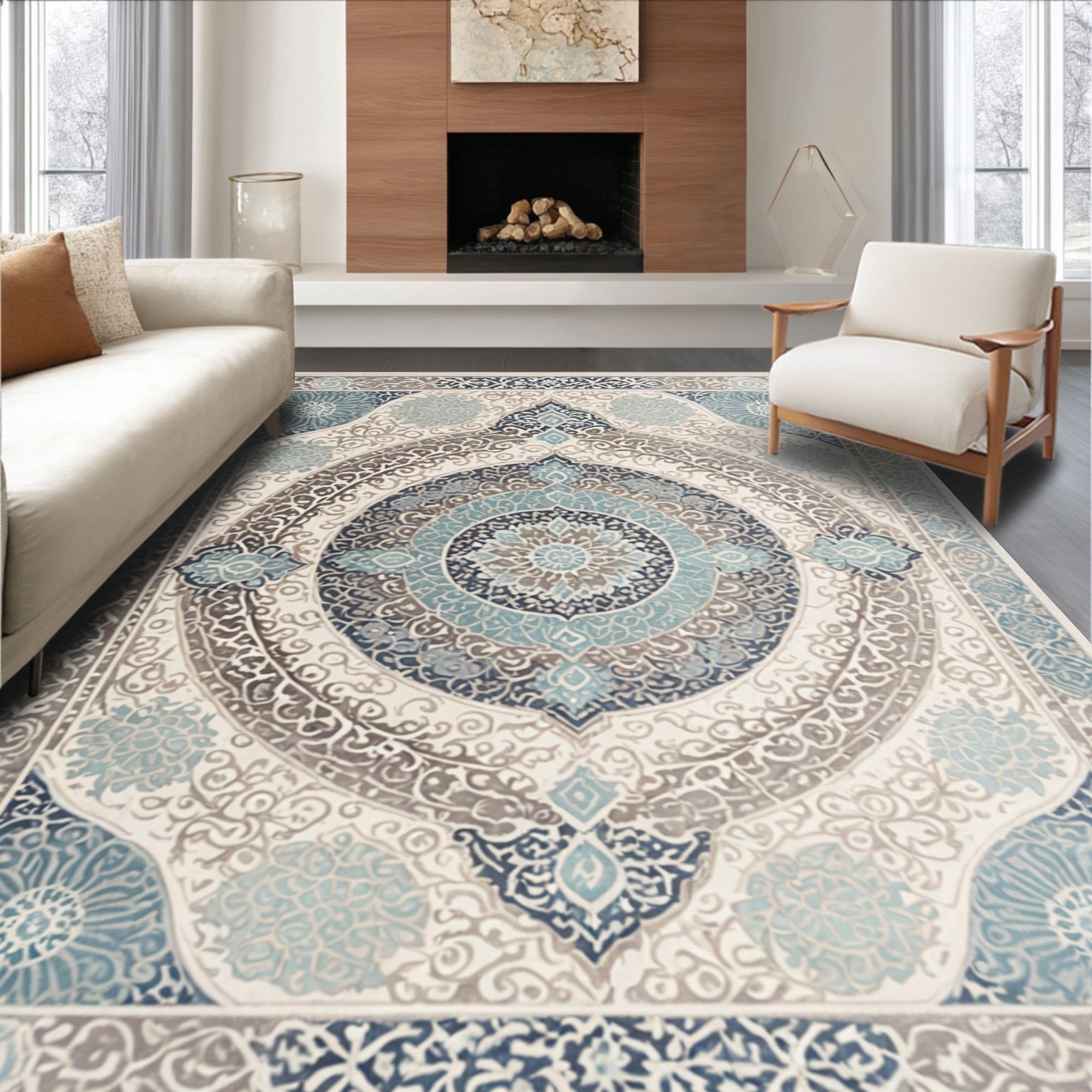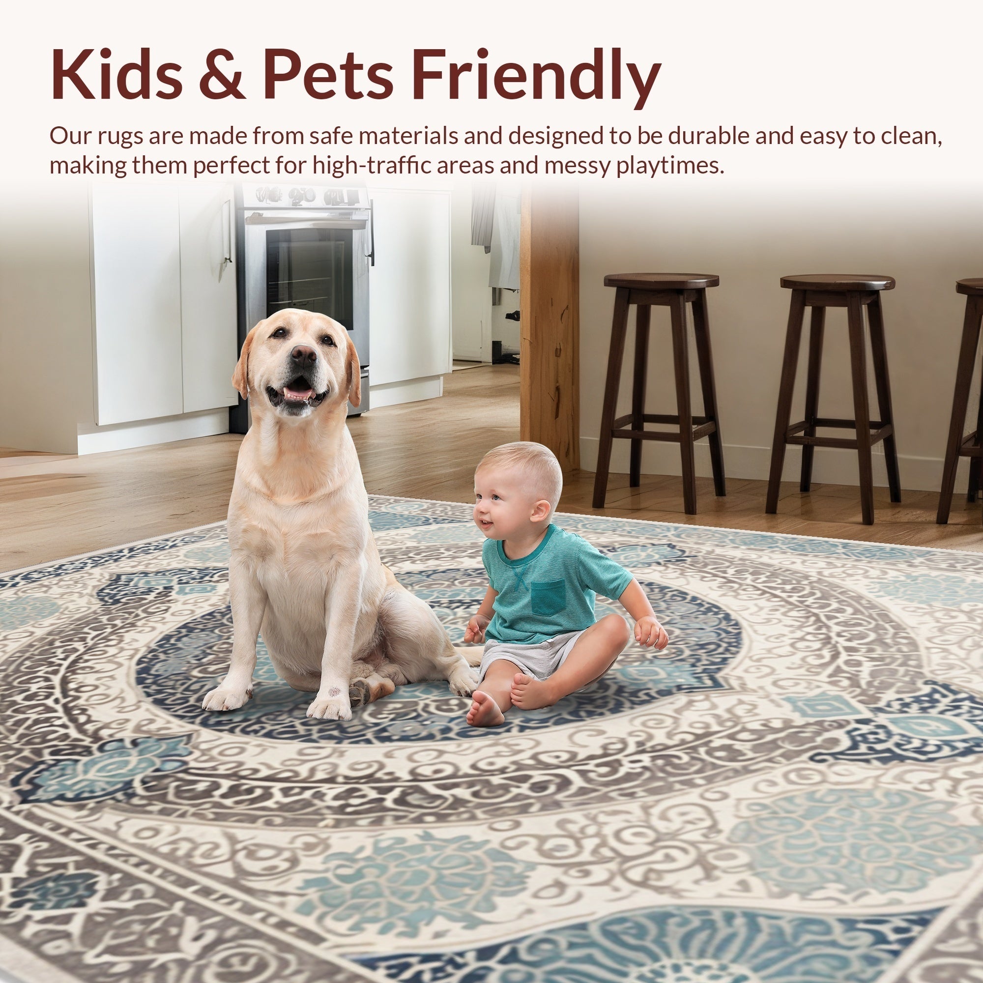 Ultra Soft Area Rug, Non Slip, Stain Resistant, Washable Area Rugs for Living Room, Bedroom, Transitional Damask Boho(Beige) Overview: