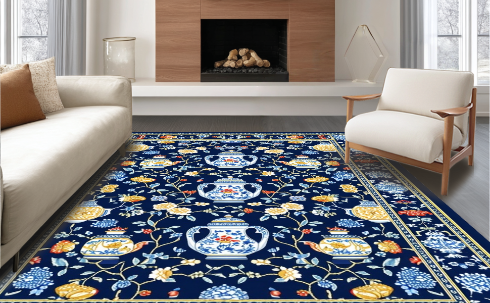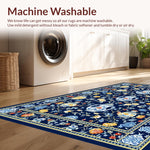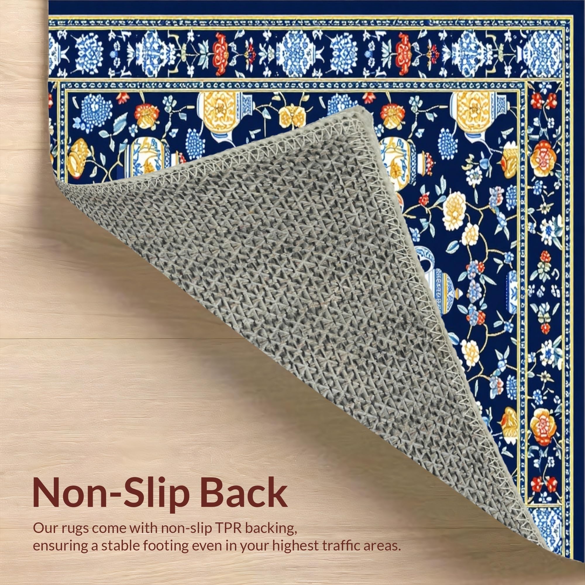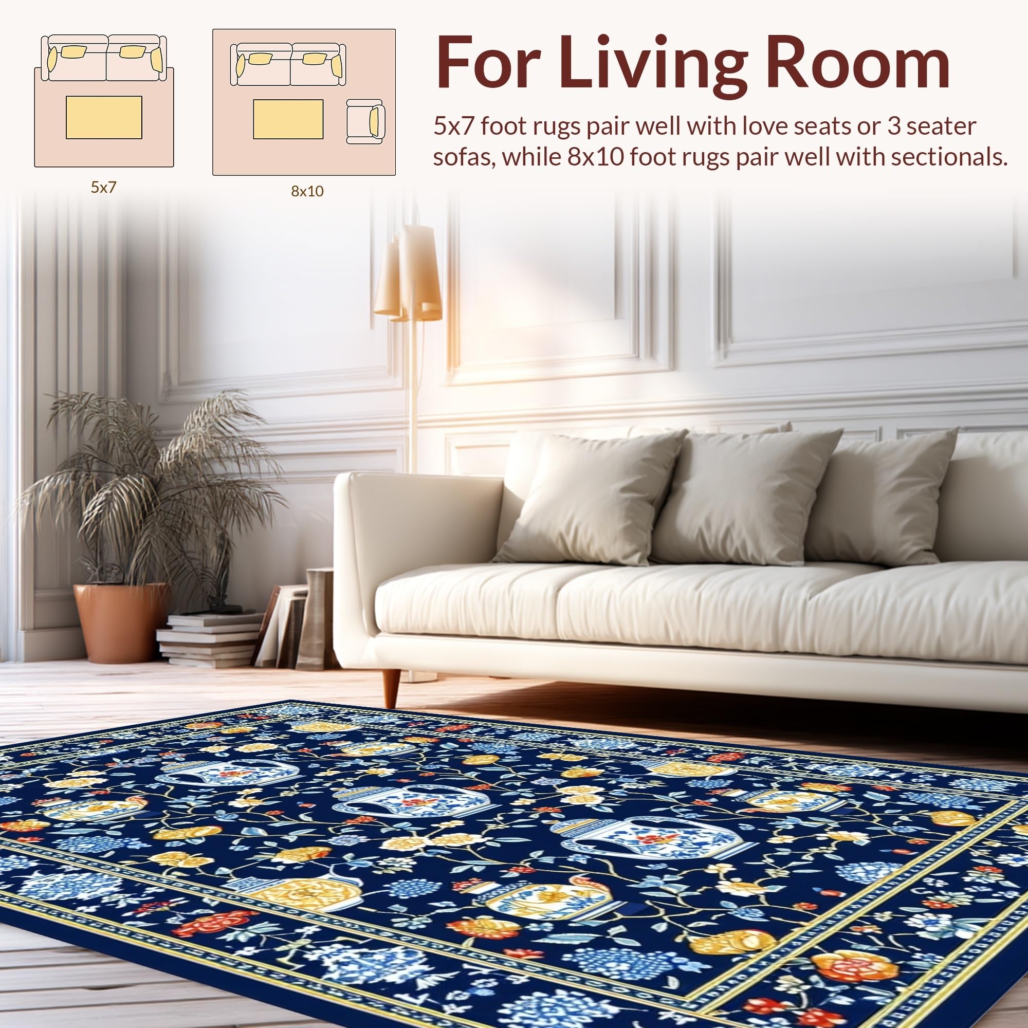 Ultra Soft Area Rug, Non Slip, Stain Resistant, Washable Area Rugs for Living Room, Bedroom, Transitional Earth Tone Medallion Design(Blue) Overview: