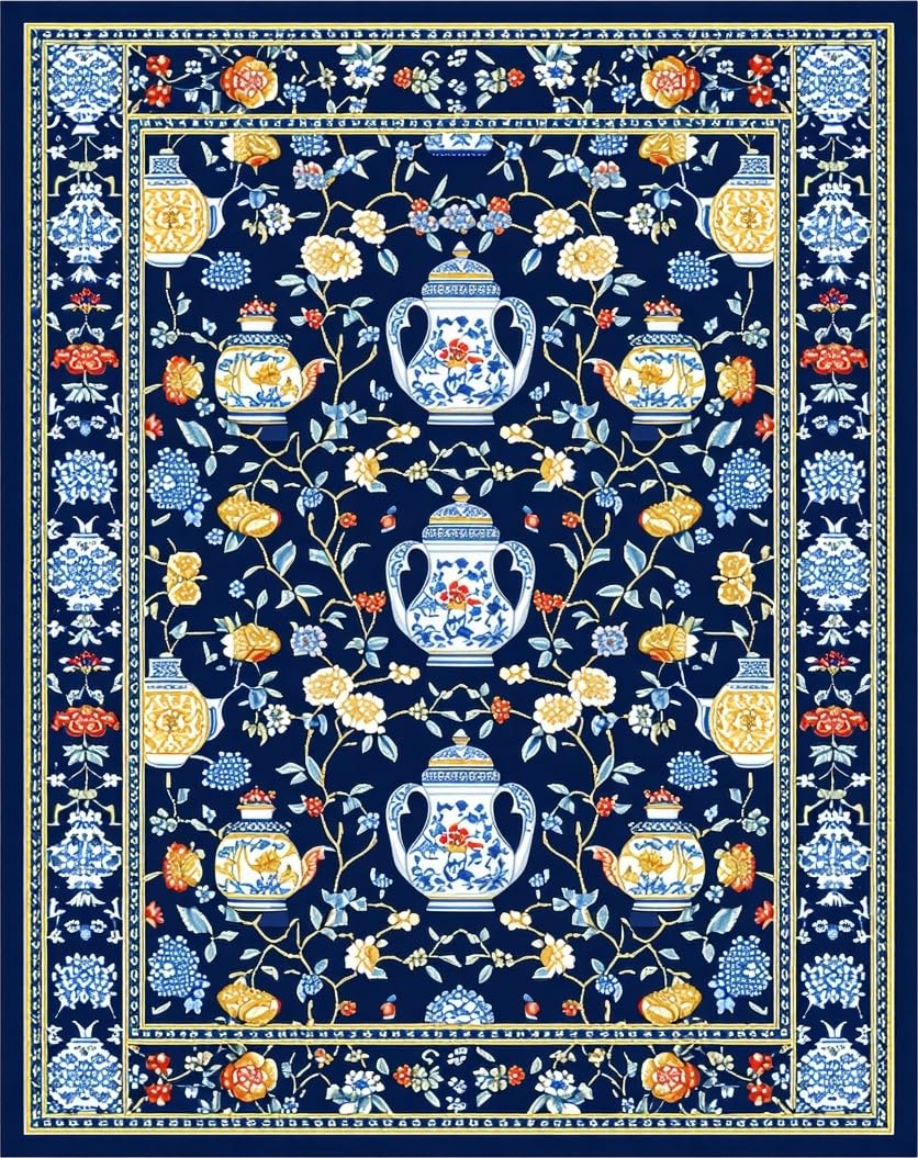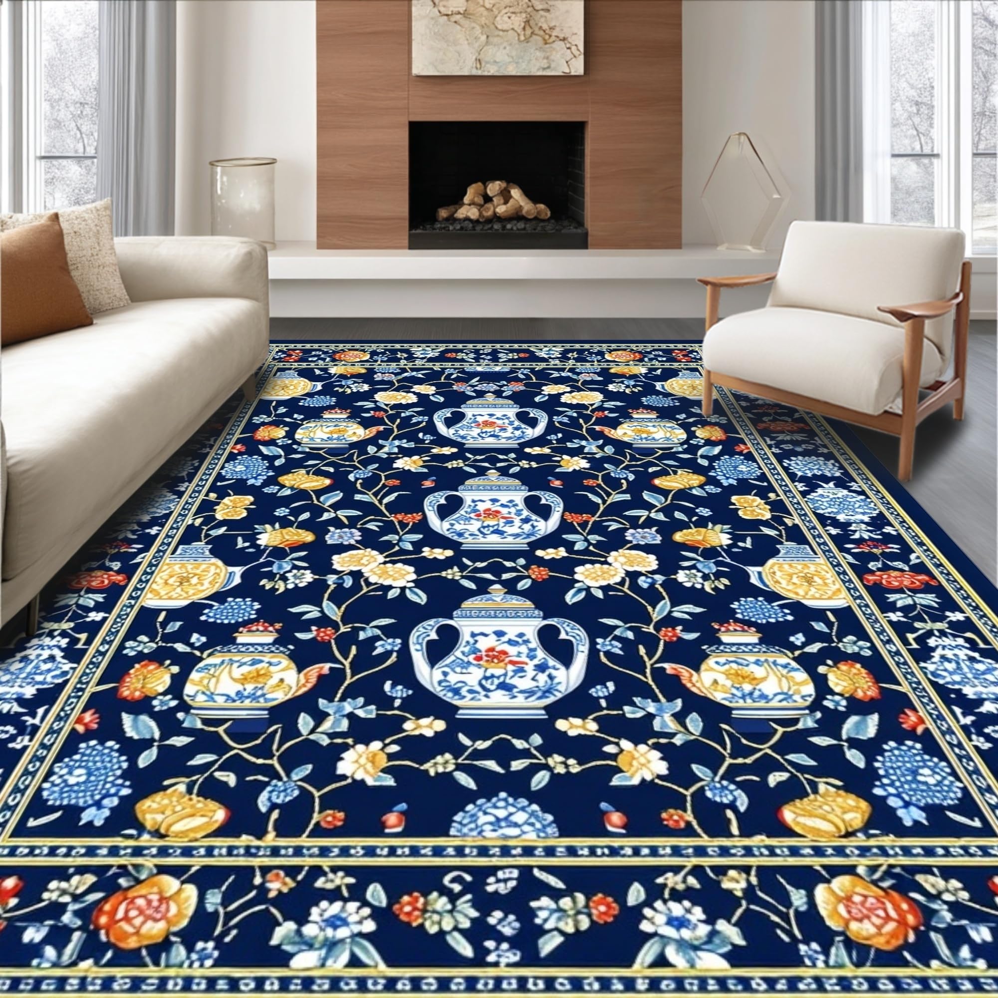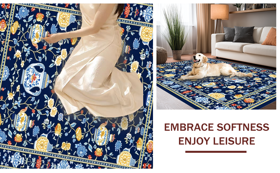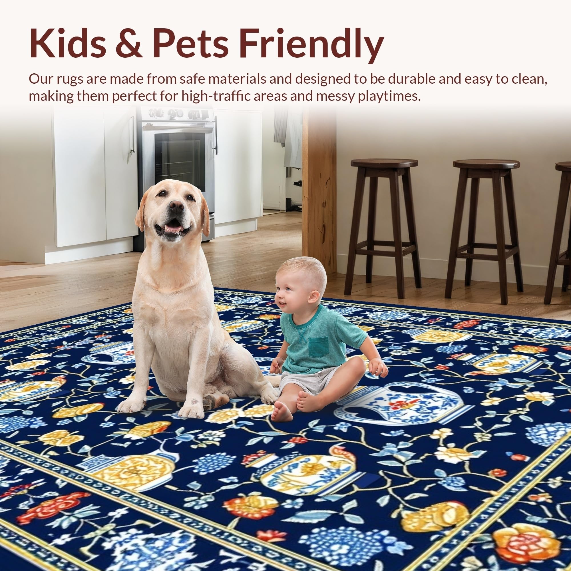 Ultra Soft Area Rug, Non Slip, Stain Resistant, Washable Area Rugs for Living Room, Bedroom, Transitional Earth Tone Medallion Design(Blue) Overview: