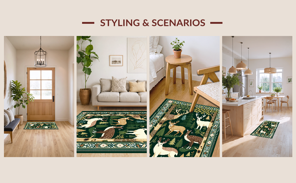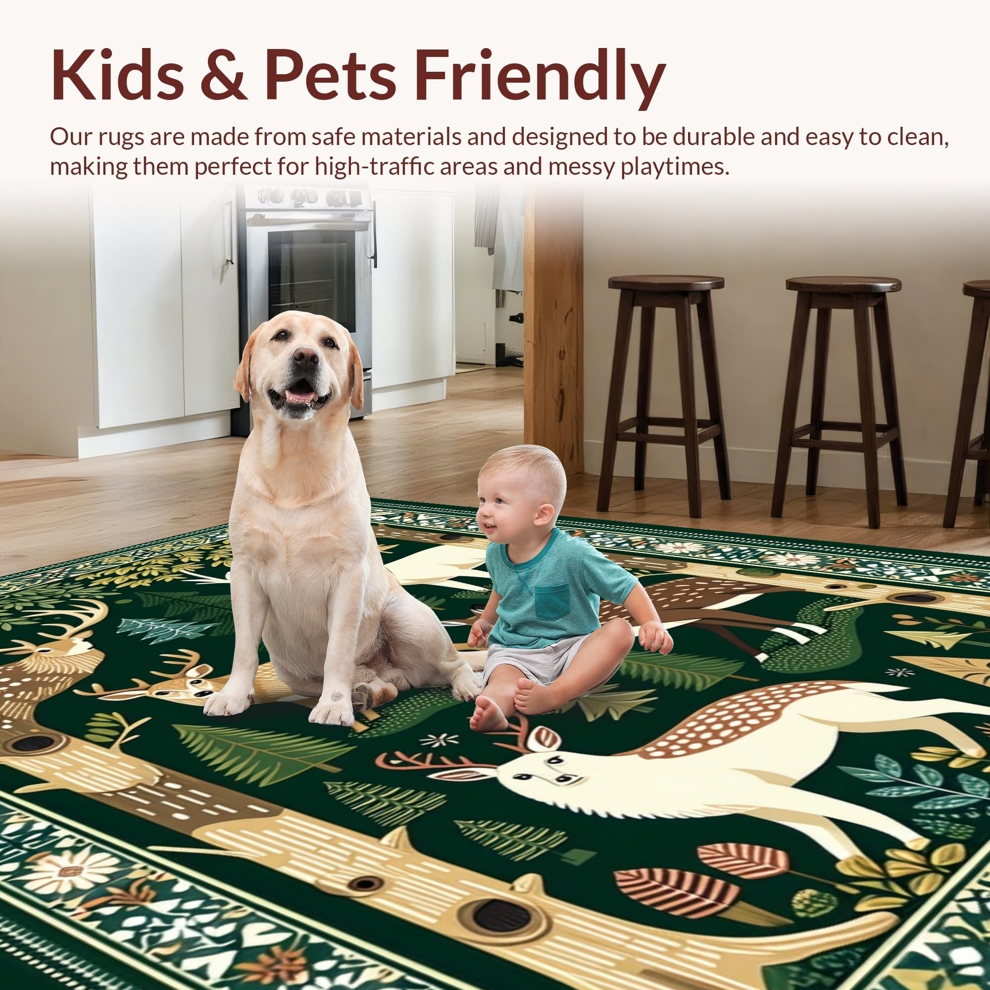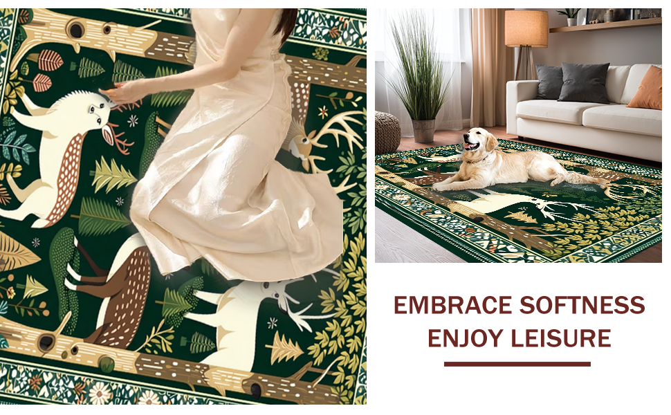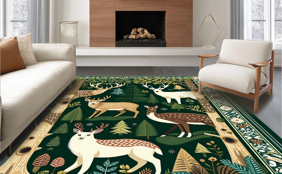 Ultra Soft Area Rug, Non Slip, Stain Resistant, Washable Area Rugs for Living Room, Bedroom, Transitional Earthy Textured Print(Green) Overview:
