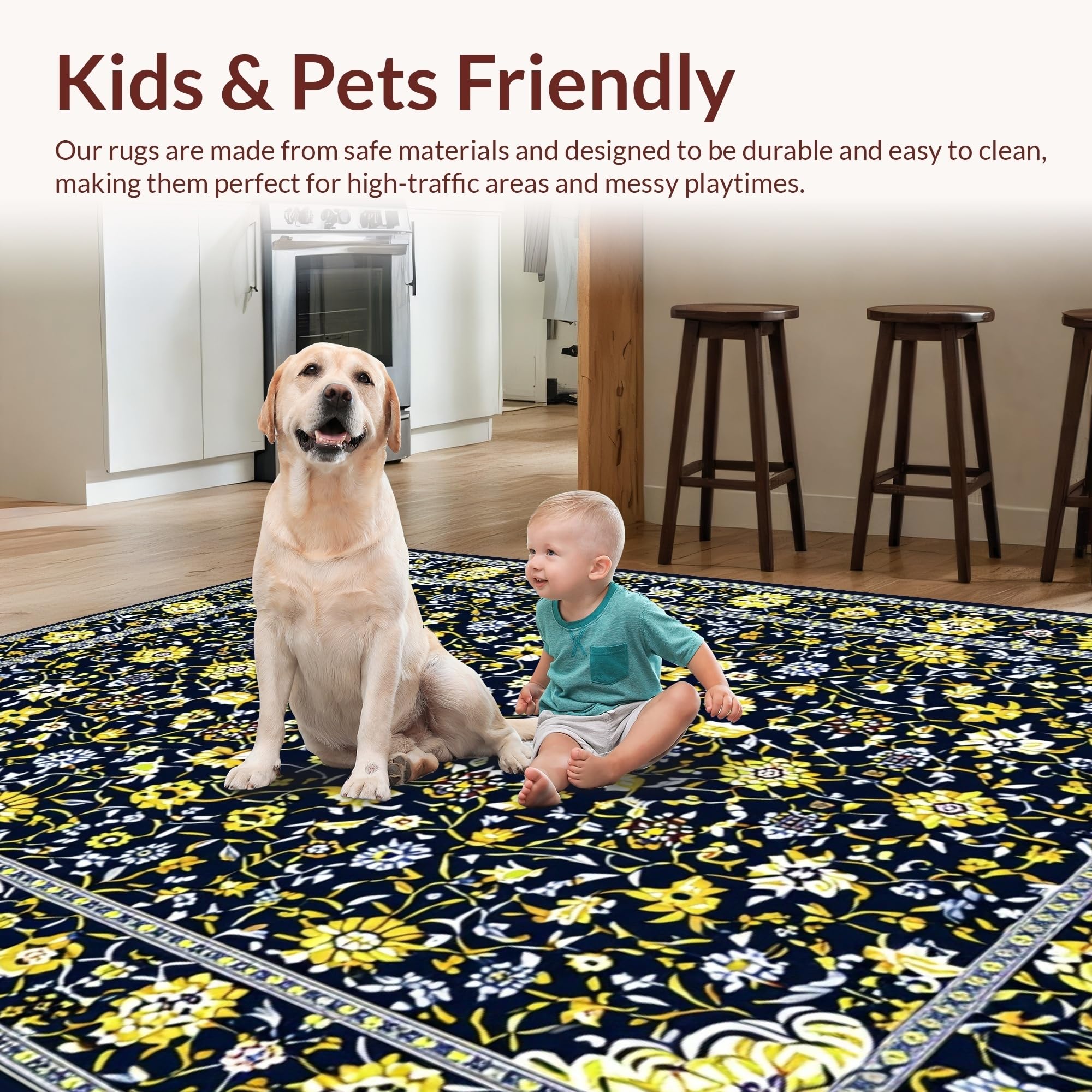 Ultra Soft Area Rug, Non Slip, Stain Resistant, Washable Area Rugs for Living Room, Bedroom, Transitional Elegant Trellis Aesthetic(Blue) Overview: