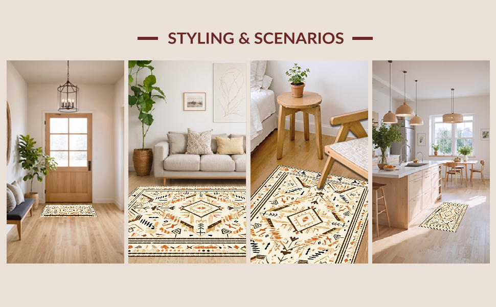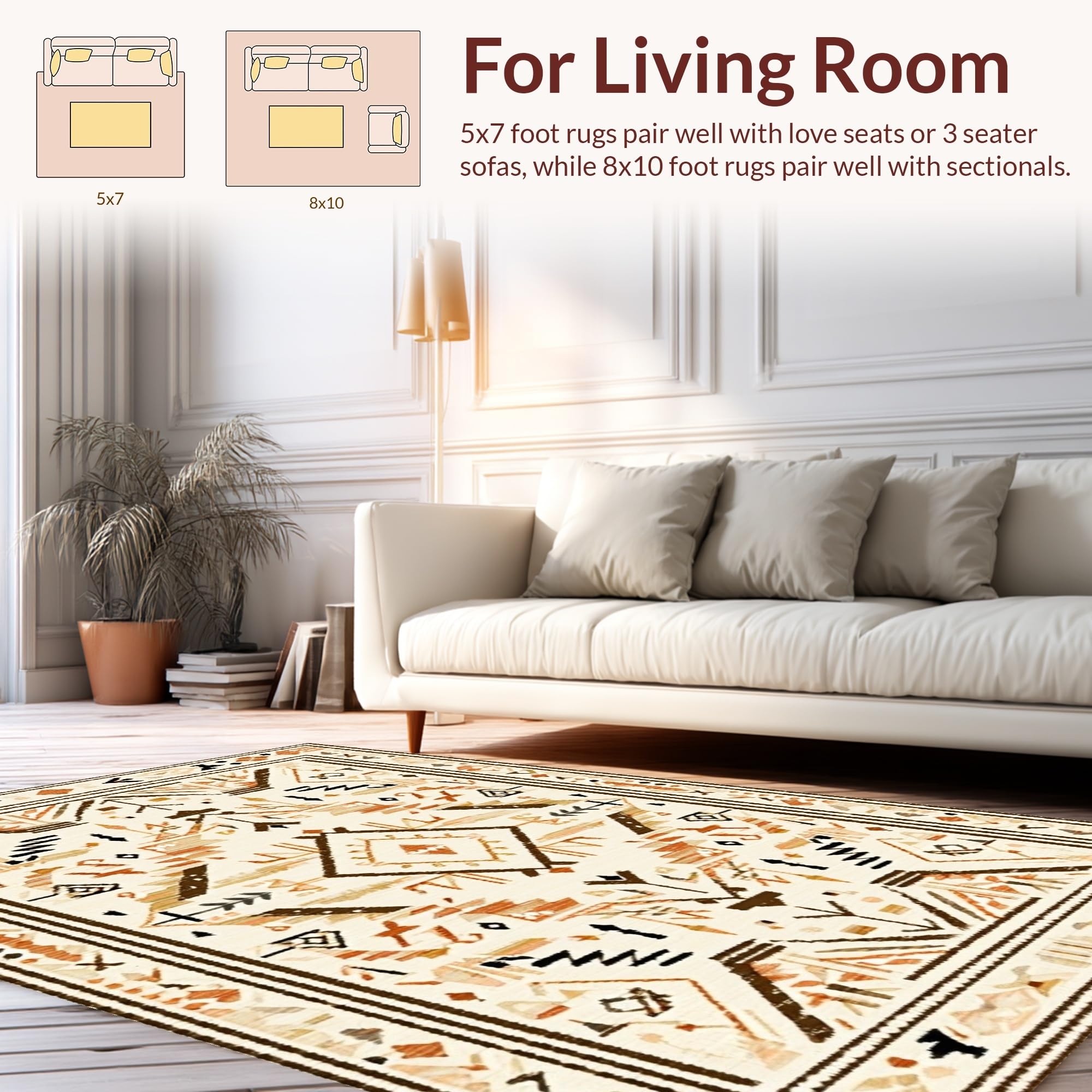 Ultra Soft Area Rug, Non Slip, Stain Resistant, Washable Area Rugs for Living Room, Bedroom, Transitional Geometric Rustic Appeal(Beige) Overview: