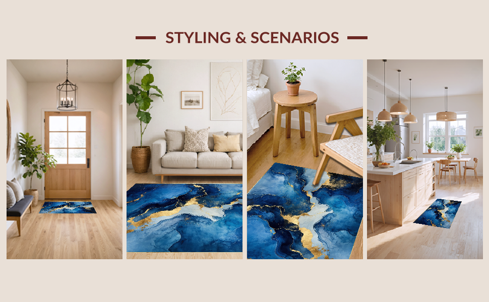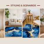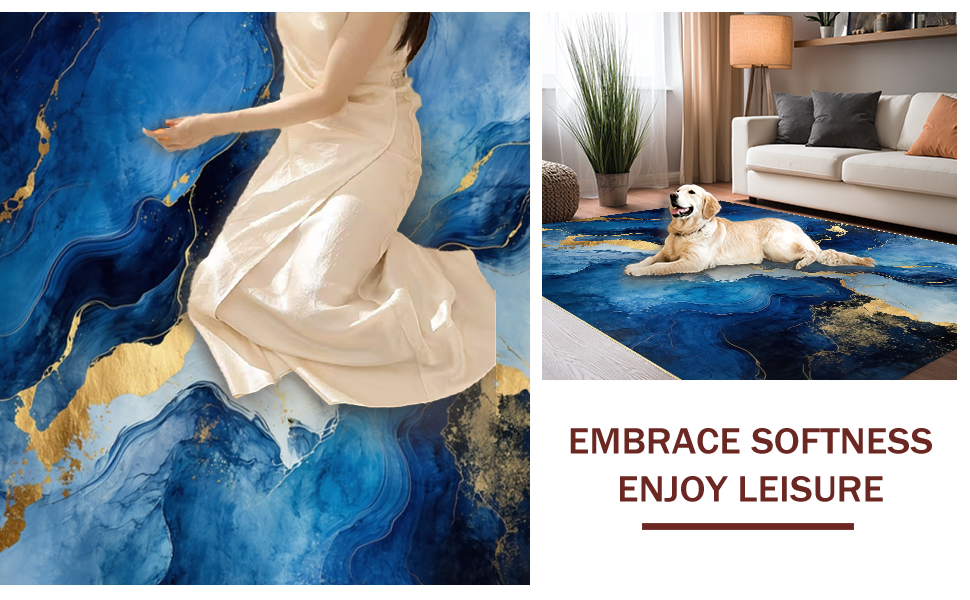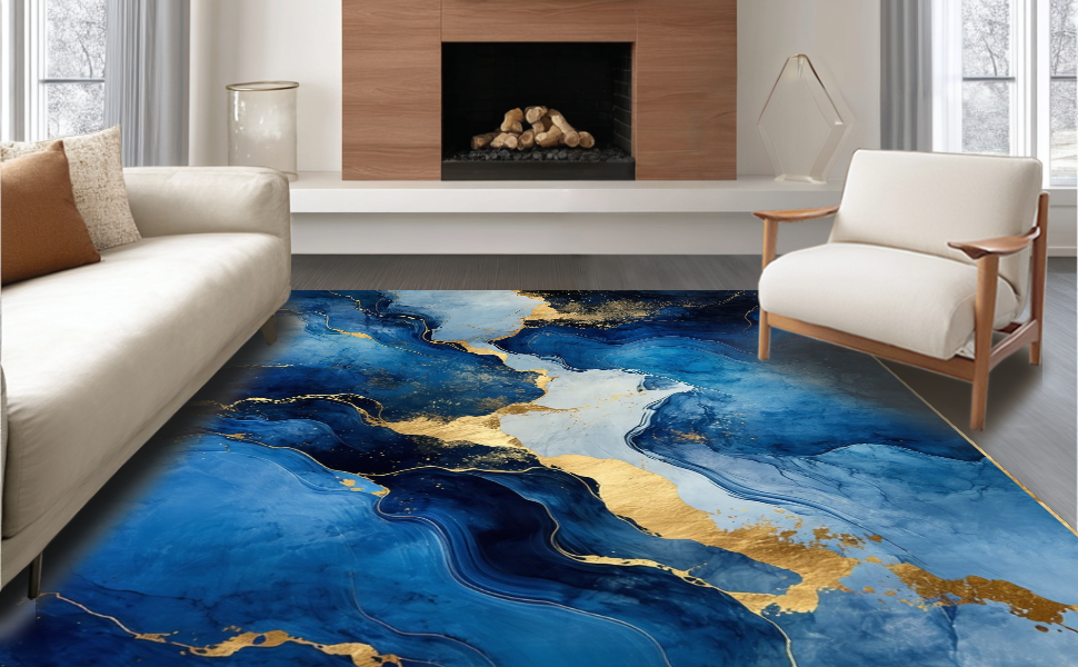 Ultra Soft Area Rug, Non Slip, Stain Resistant, Washable Area Rugs for Living Room, Bedroom, Transitional Gray and Blue Harmony(Blue) Overview: