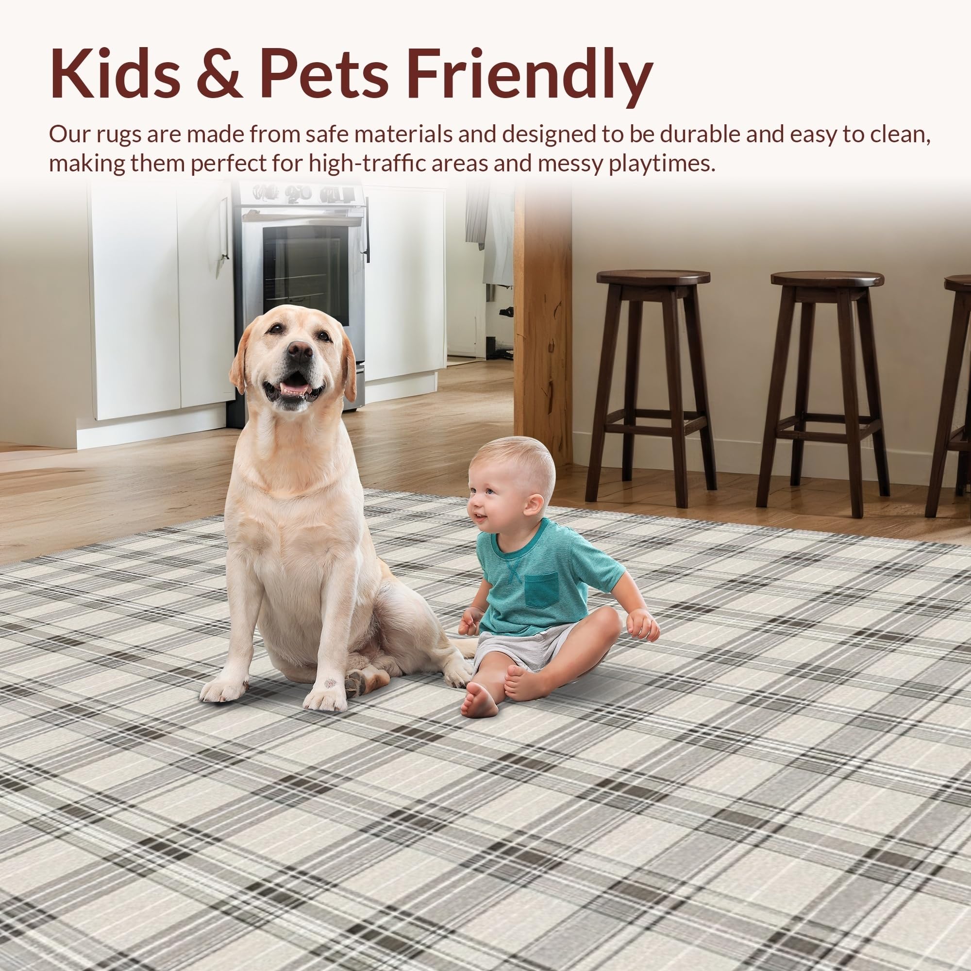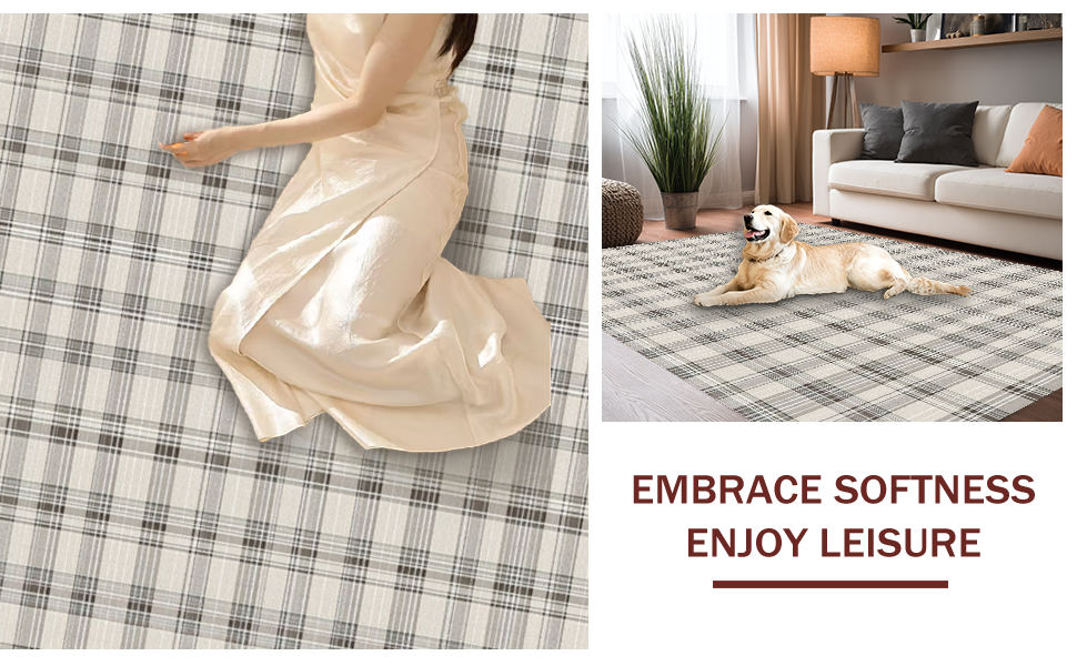 Ultra Soft Area Rug, Non Slip, Stain Resistant, Washable Area Rugs for Living Room, Bedroom, Transitional Gray Checked Delight(Beige) Overview: