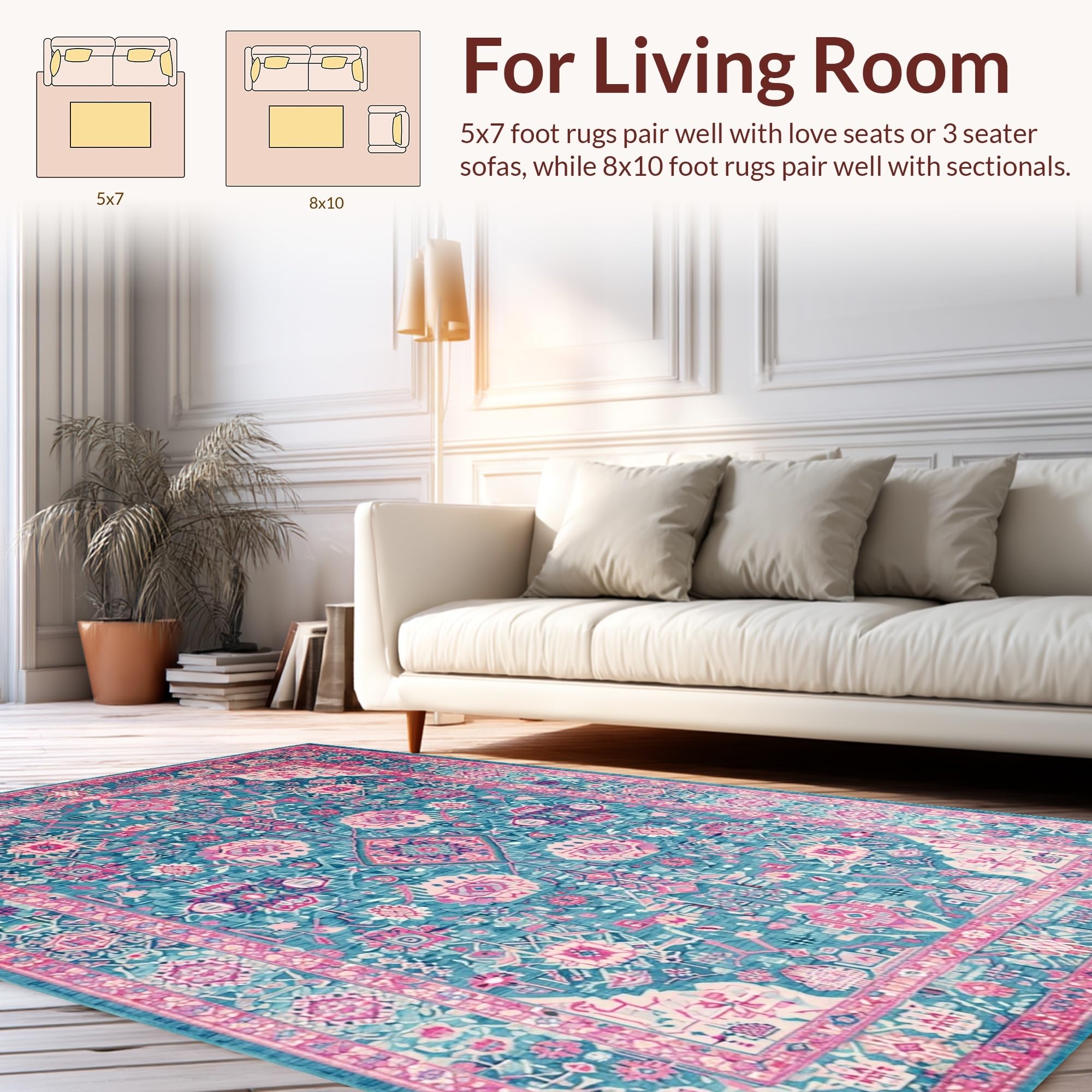 Ultra Soft Area Rug, Non Slip, Stain Resistant, Washable Area Rugs for Living Room, Bedroom, Transitional Lattice Artwork Style(Blue) Overview: