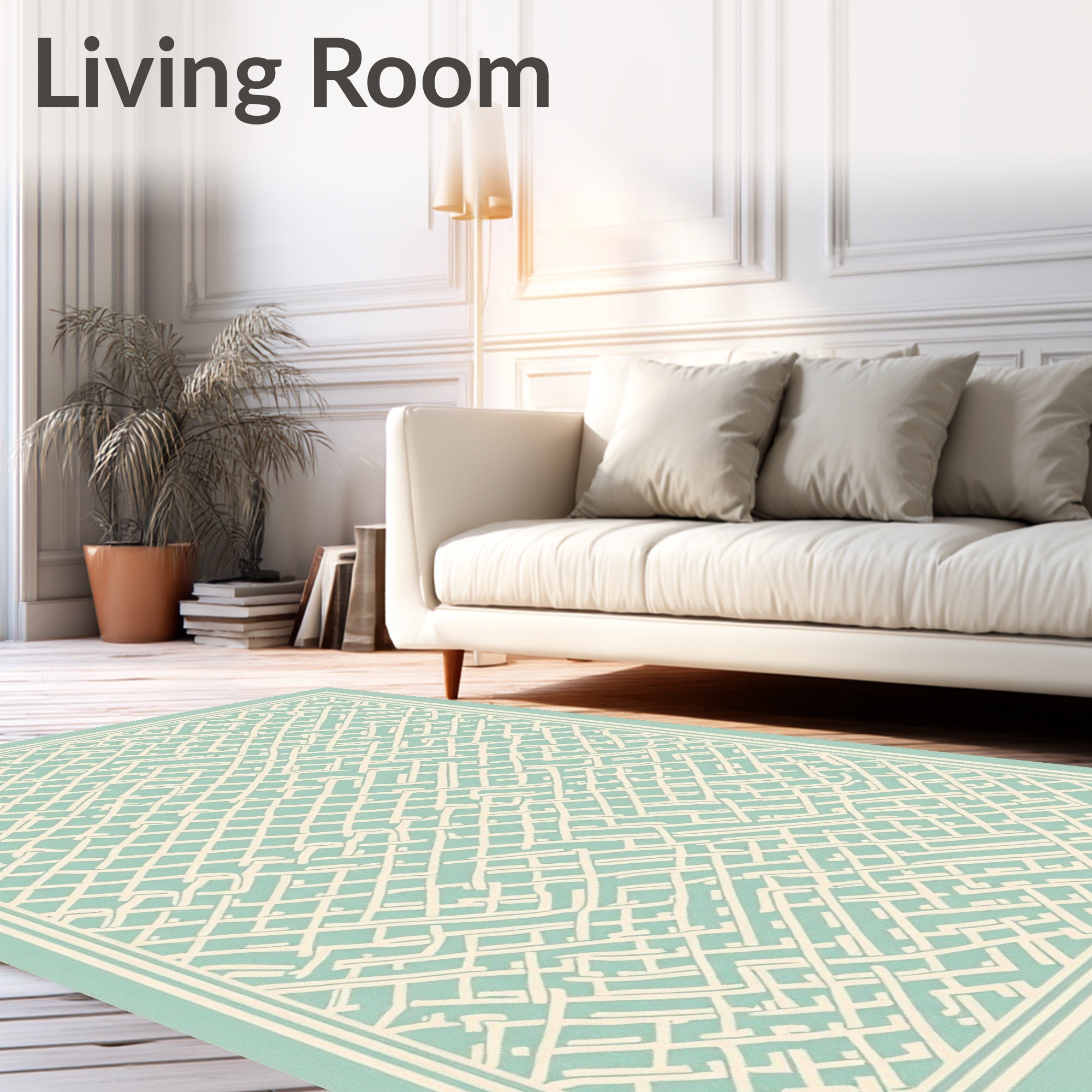 Ultra Soft Area Rug, Non Slip, Stain Resistant, Washable Area Rugs for Living Room, Bedroom, Transitional Lattice Trellis Interwoven Maze(Turquoise) Overview: