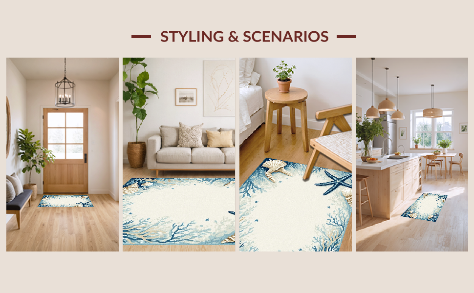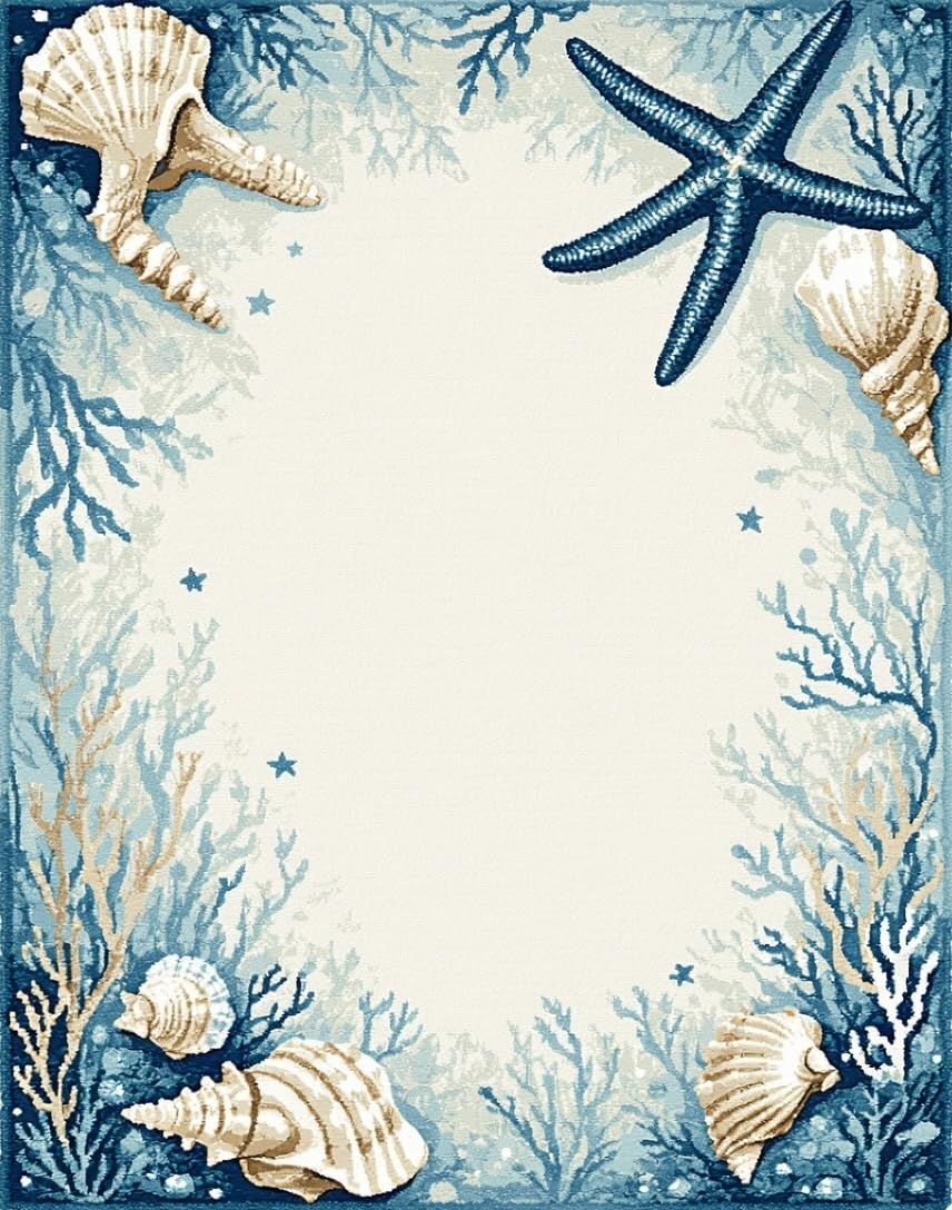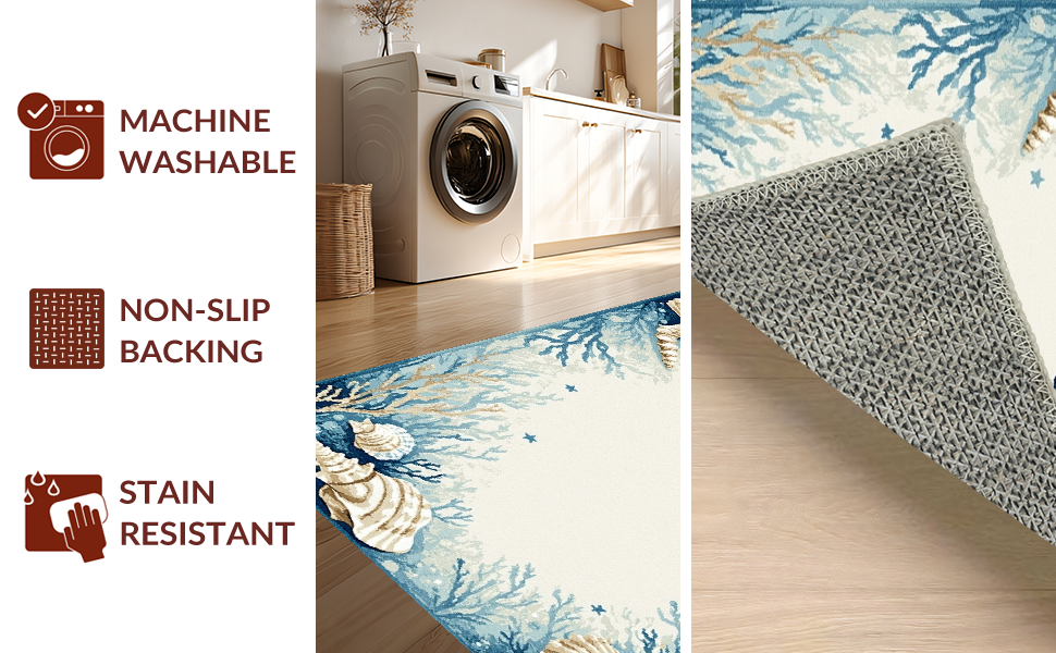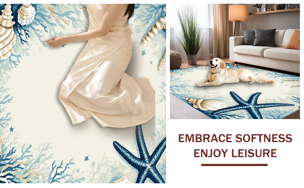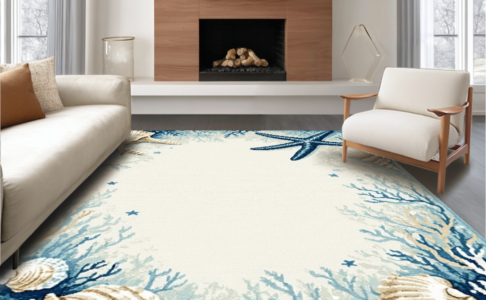 Ultra Soft Area Rug, Non Slip, Stain Resistant, Washable Area Rugs for Living Room, Bedroom, Transitional Light Blue Coastal Theme(Blue) Overview: