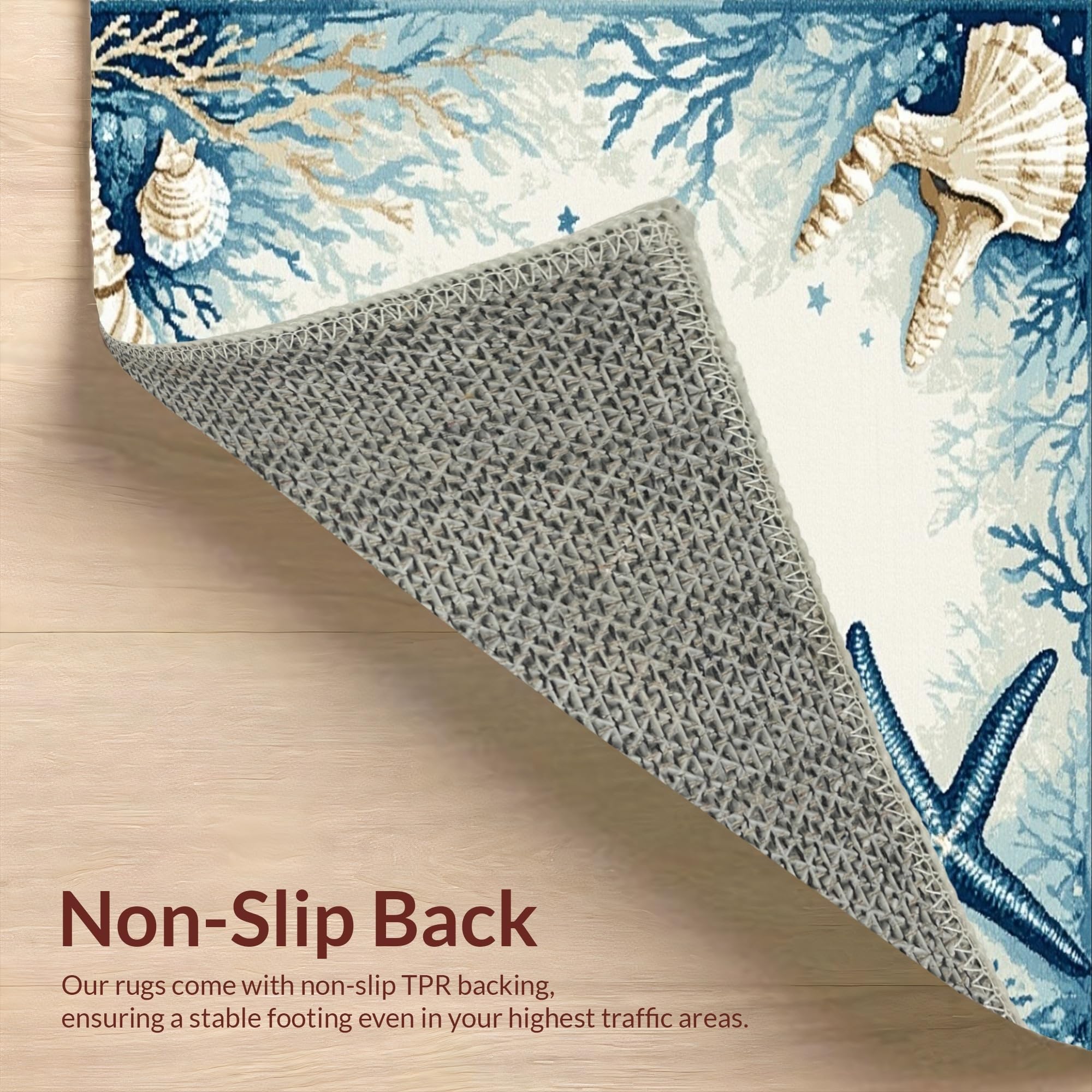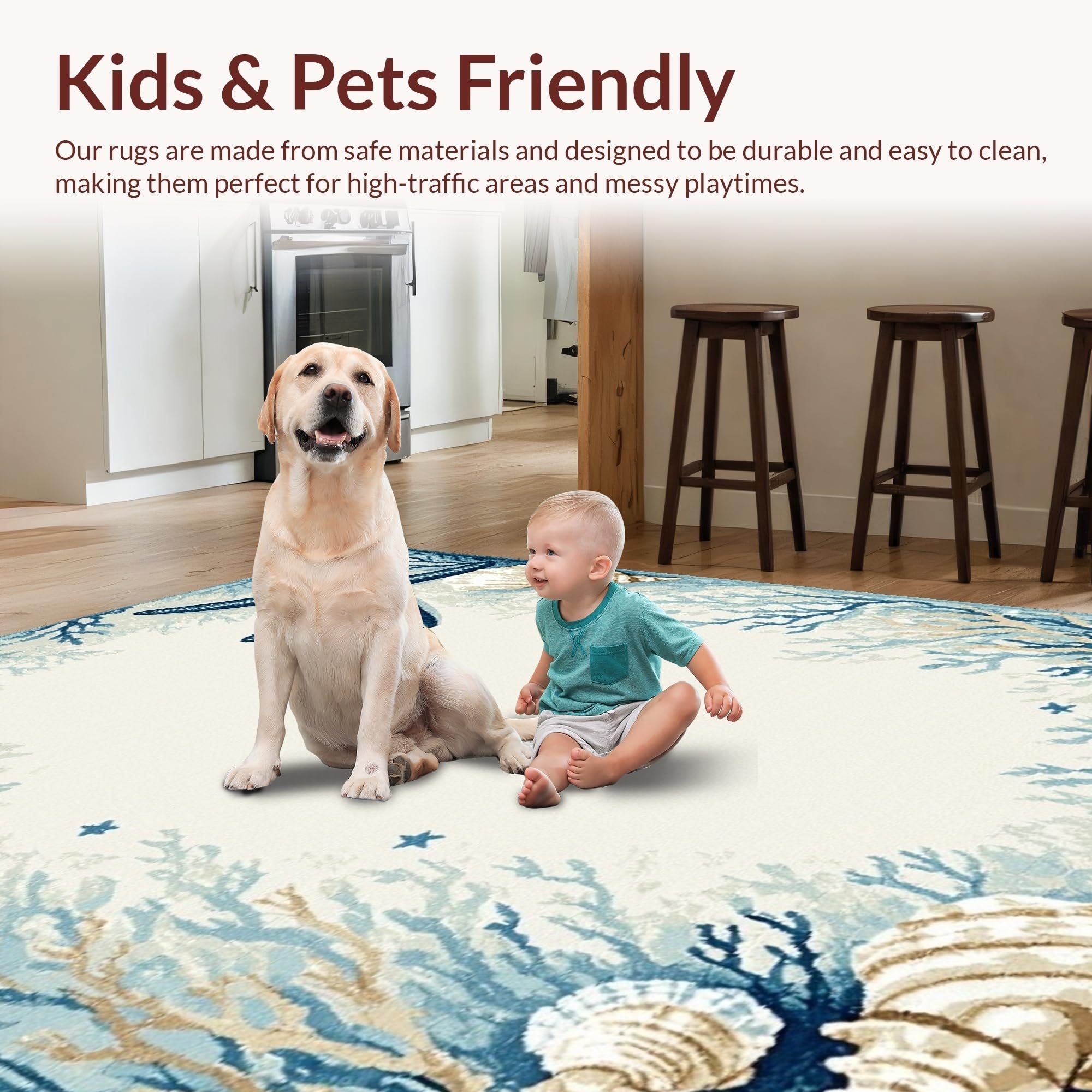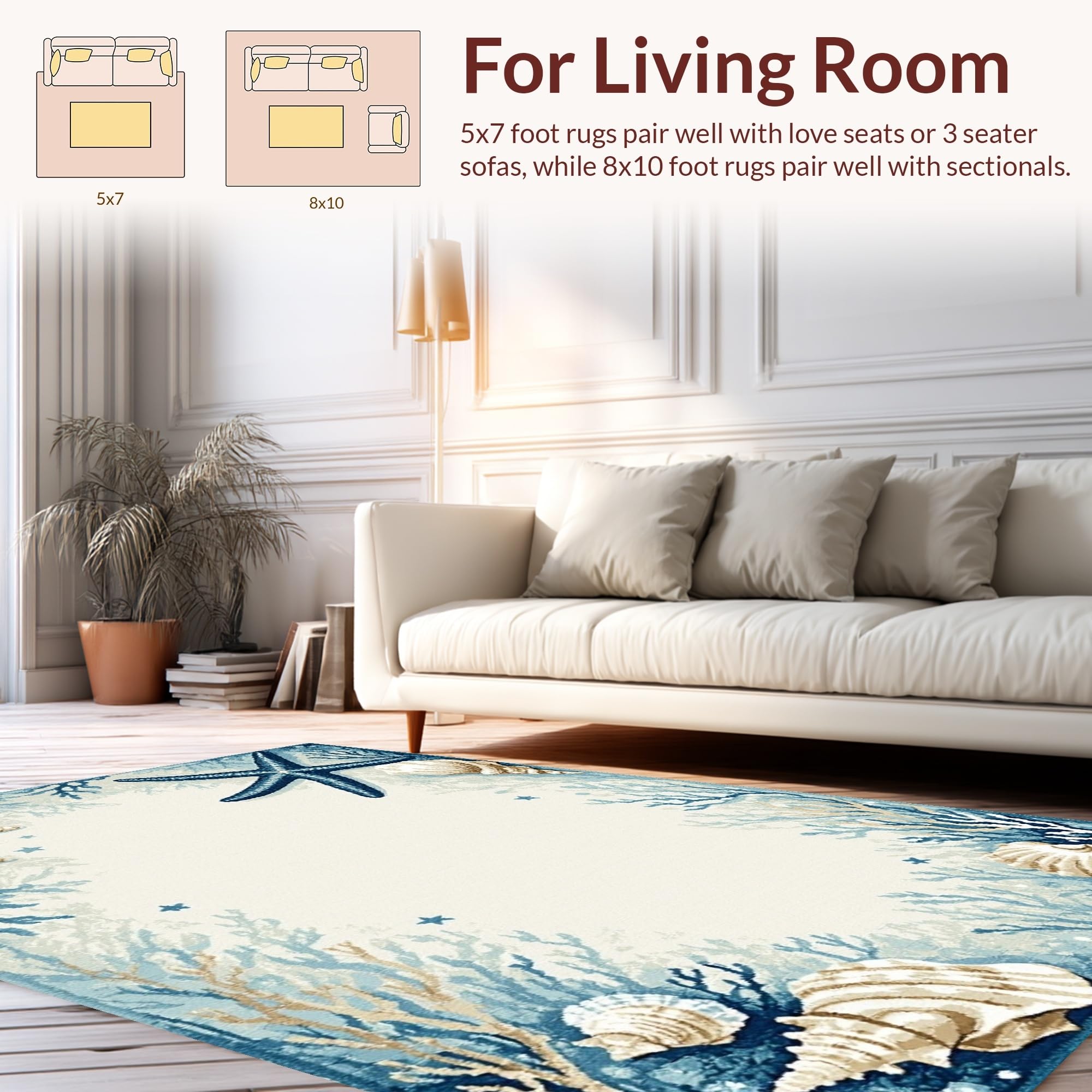 Ultra Soft Area Rug, Non Slip, Stain Resistant, Washable Area Rugs for Living Room, Bedroom, Transitional Light Blue Coastal Theme(Blue) Overview: