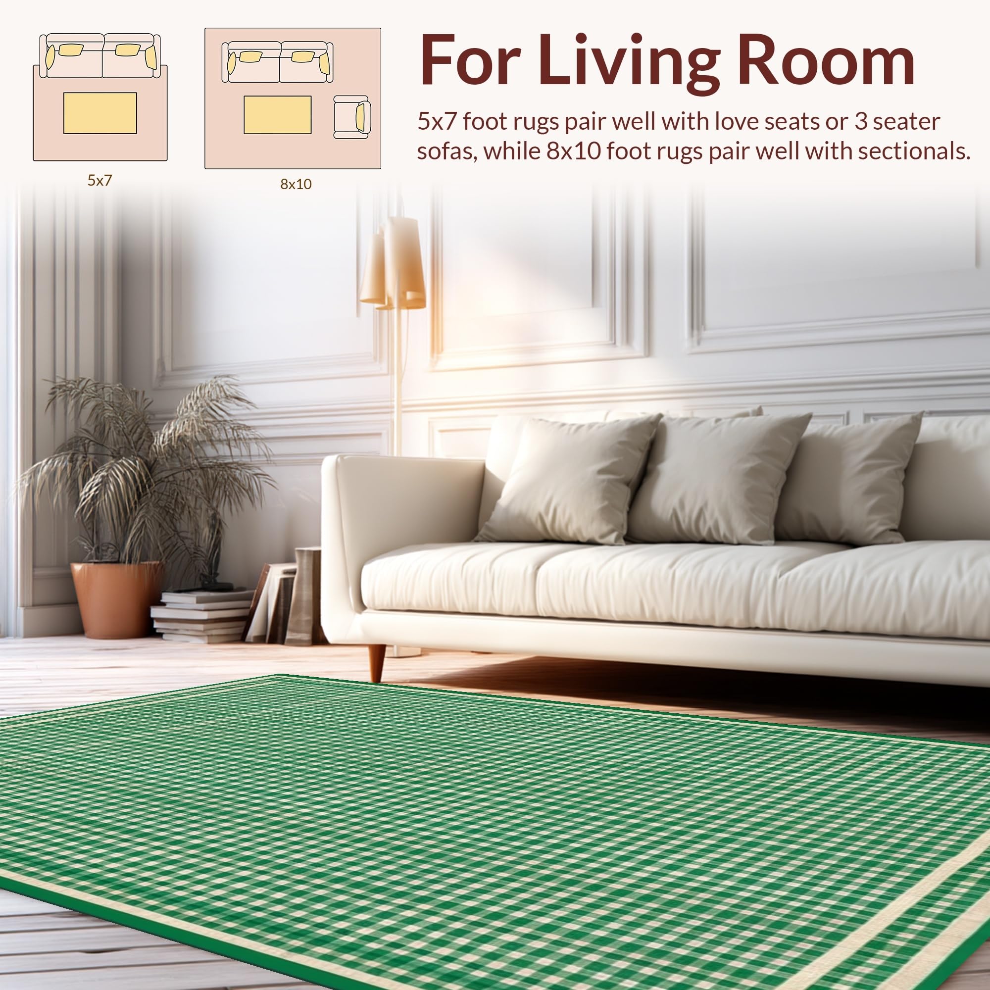 Ultra Soft Area Rug, Non Slip, Stain Resistant, Washable Area Rugs for Living Room, Bedroom, Transitional Medallion Pattern with Warm Accents(Green) Overview: