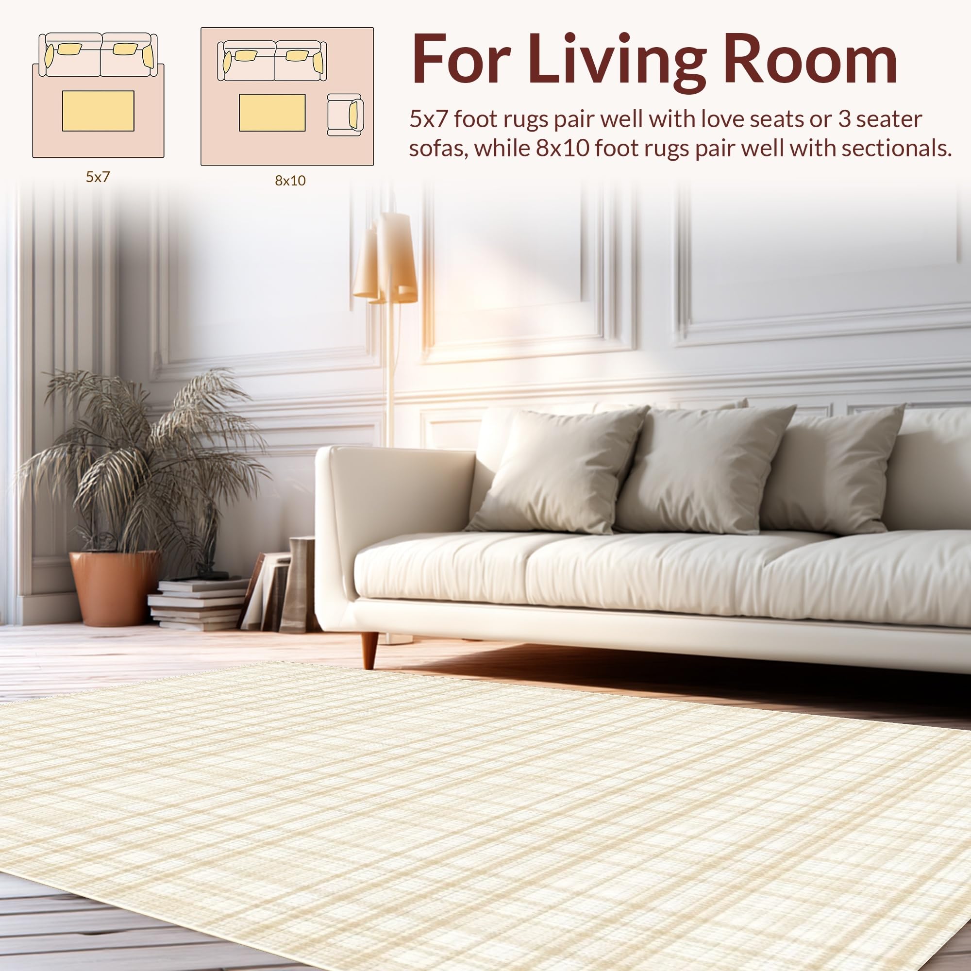 Ultra Soft Area Rug, Non Slip, Stain Resistant, Washable Area Rugs for Living Room, Bedroom, Transitional Soft-tone Houndstooth Look(Beige) Overview: