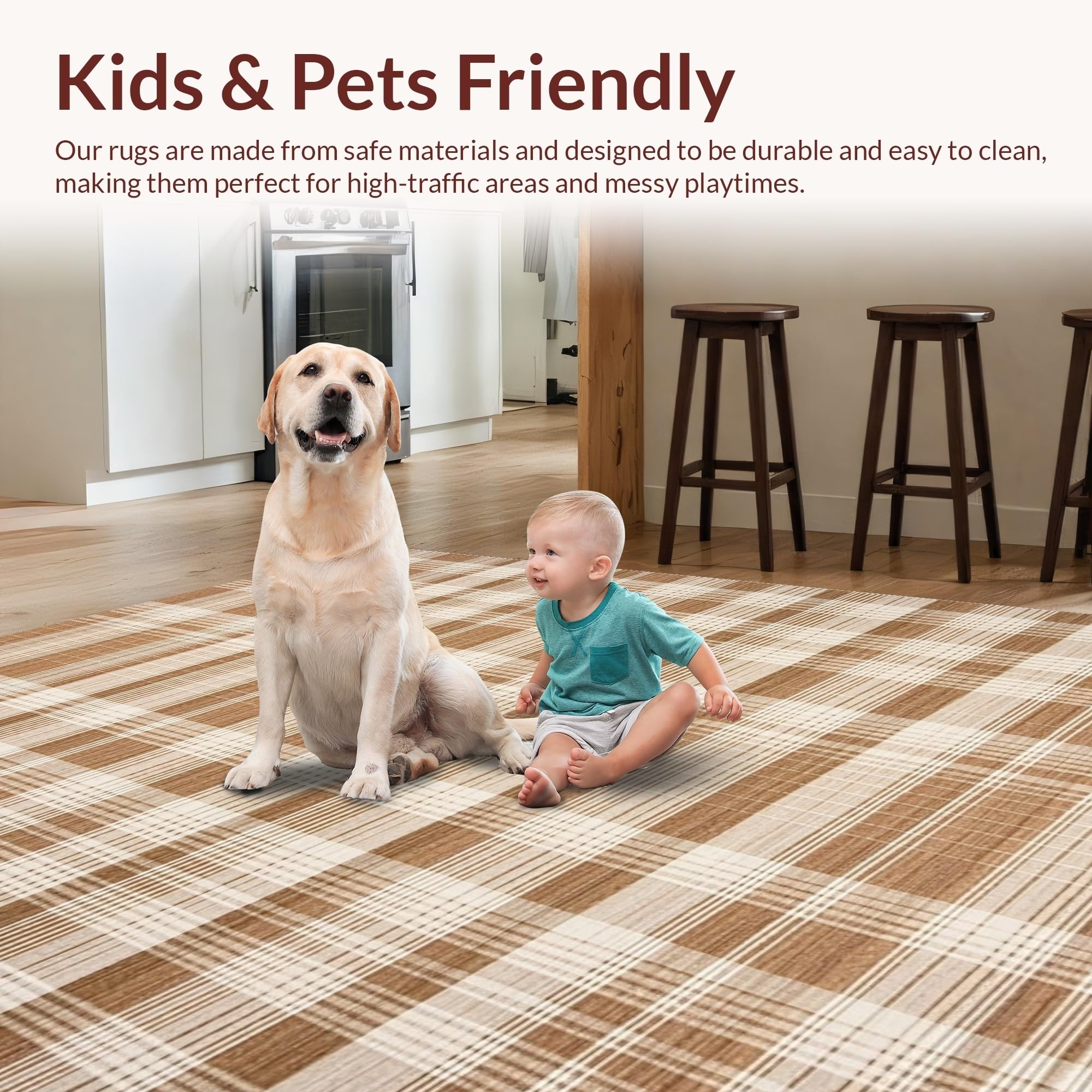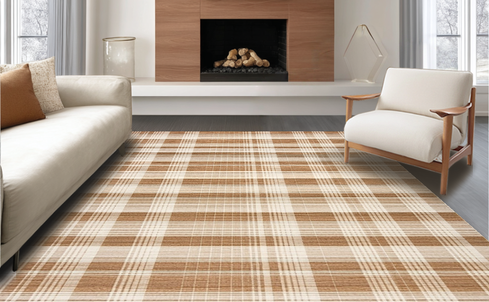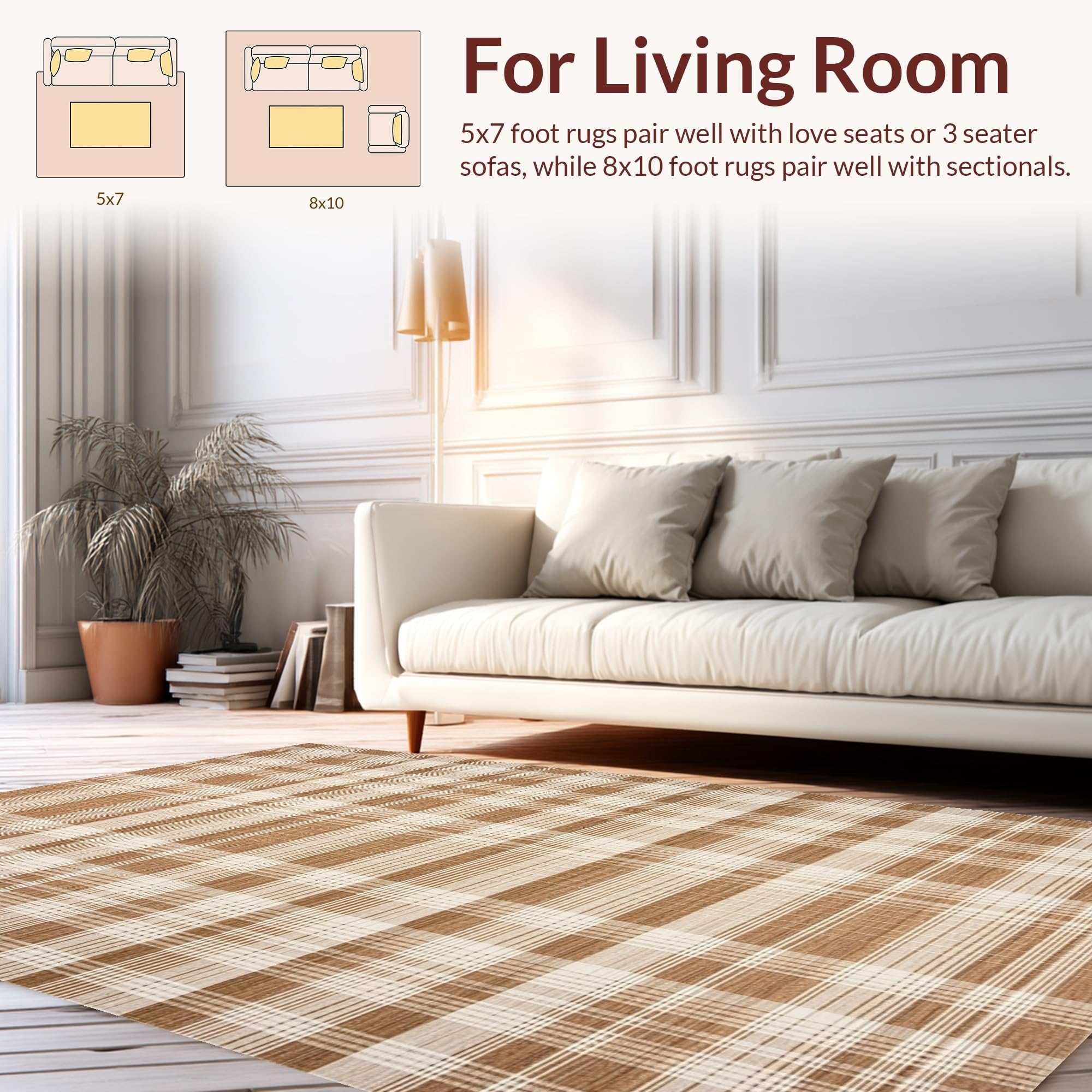 Ultra Soft Area Rug, Non Slip, Stain Resistant, Washable Area Rugs for Living Room, Bedroom, Transitional Subtle Striped Visual(Beige) Overview: