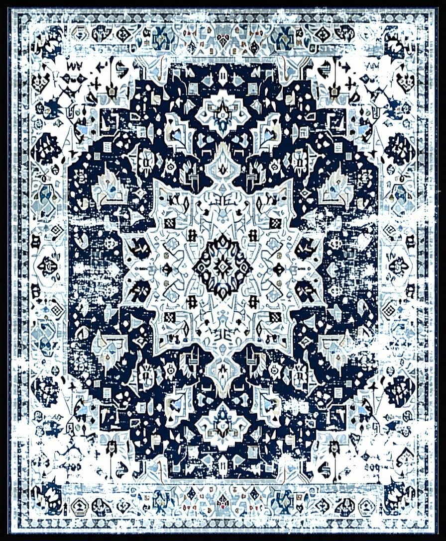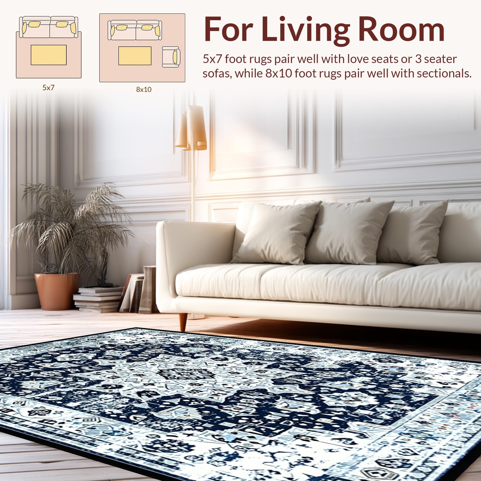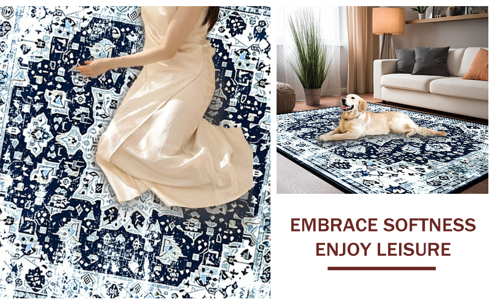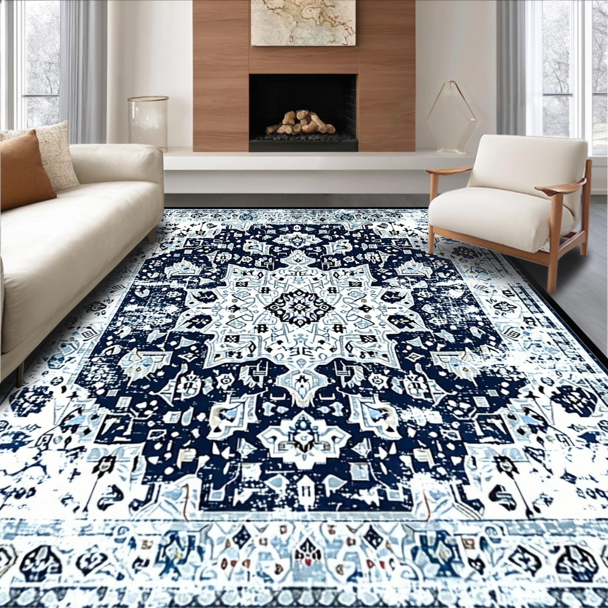 Ultra Soft Area Rug, Non Slip, Stain Resistant, Washable Area Rugs for Living Room, Bedroom, Transitional Tiled Design with Character(Blue) Overview: