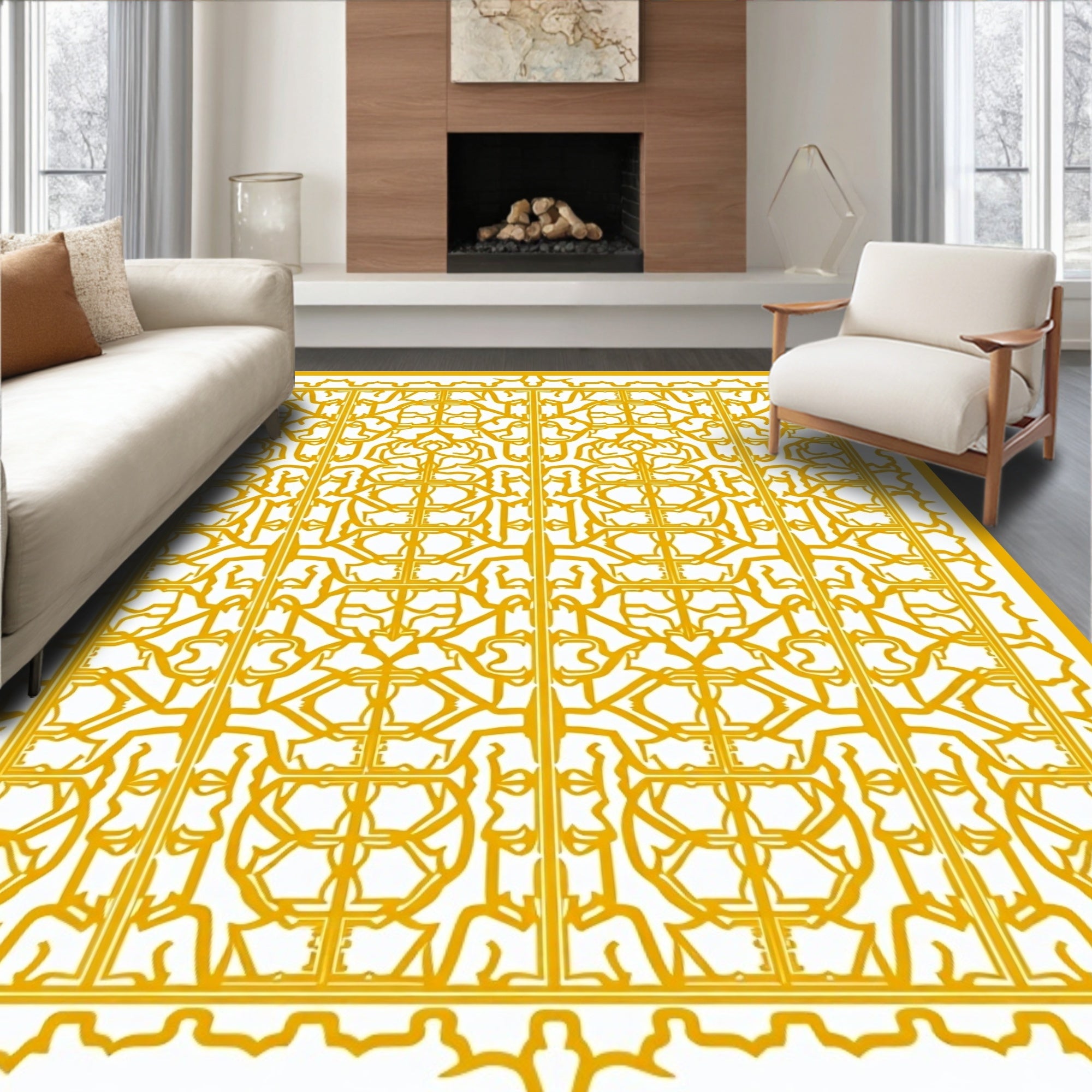 Ultra Soft Area Rug, Non Slip, Stain Resistant, Washable Area Rugs for Living Room, Bedroom, Trellis Frieze Collection Mediterranean Lattice Hexagonal Mosaic(Gold) Overview: