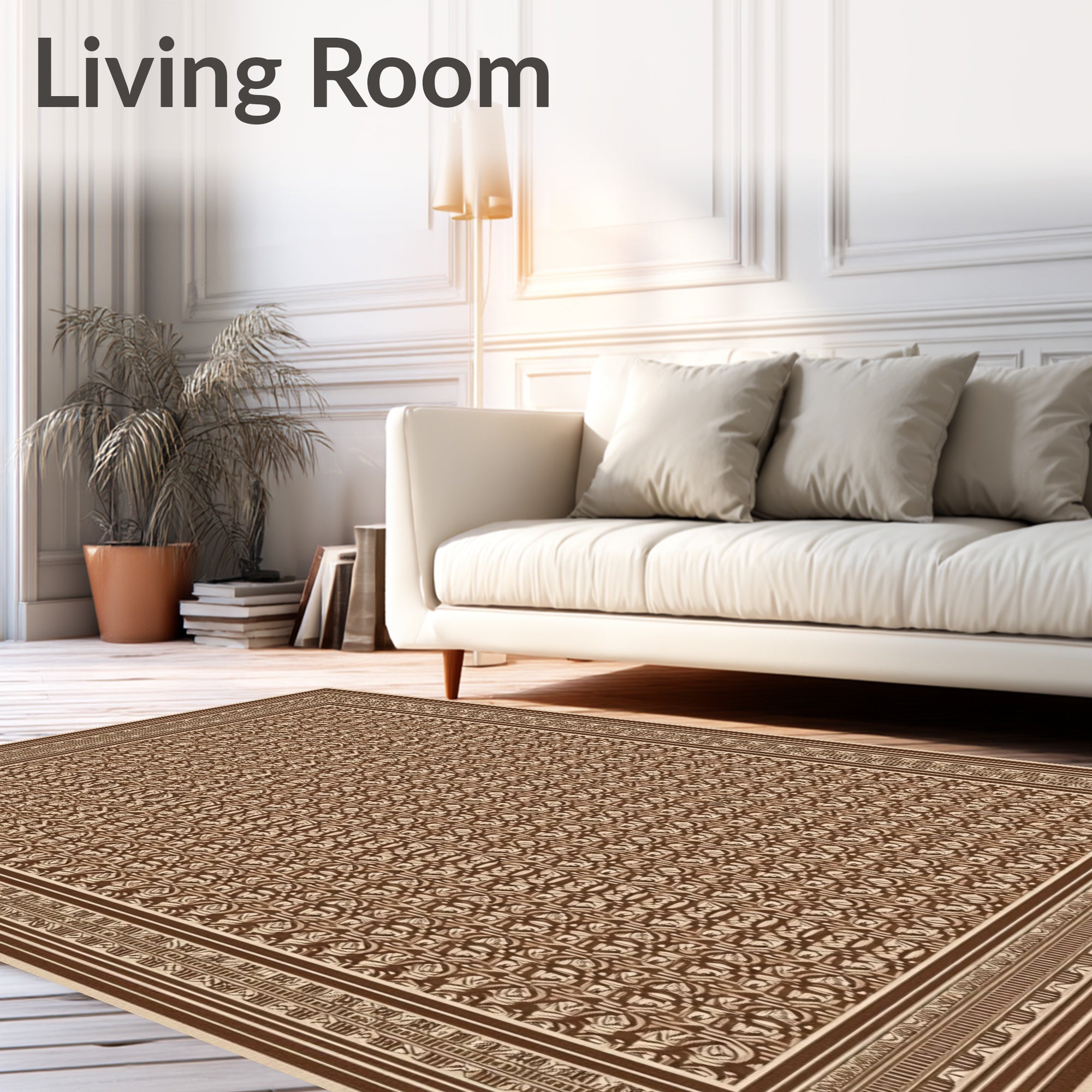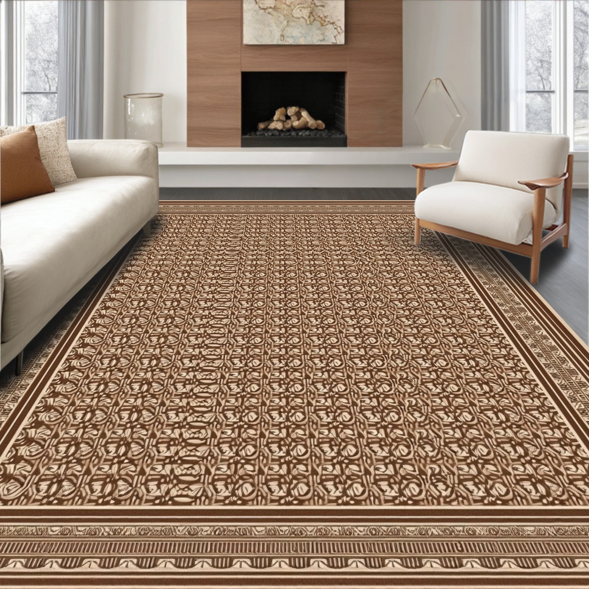 Flatwoven High Traffic Area Rug, Trellis Lattice Luxurious Jewel, Non Slip, Stain Resistant, Washable Area Rugs for Living Room, Bedroom (Brown) Overview: