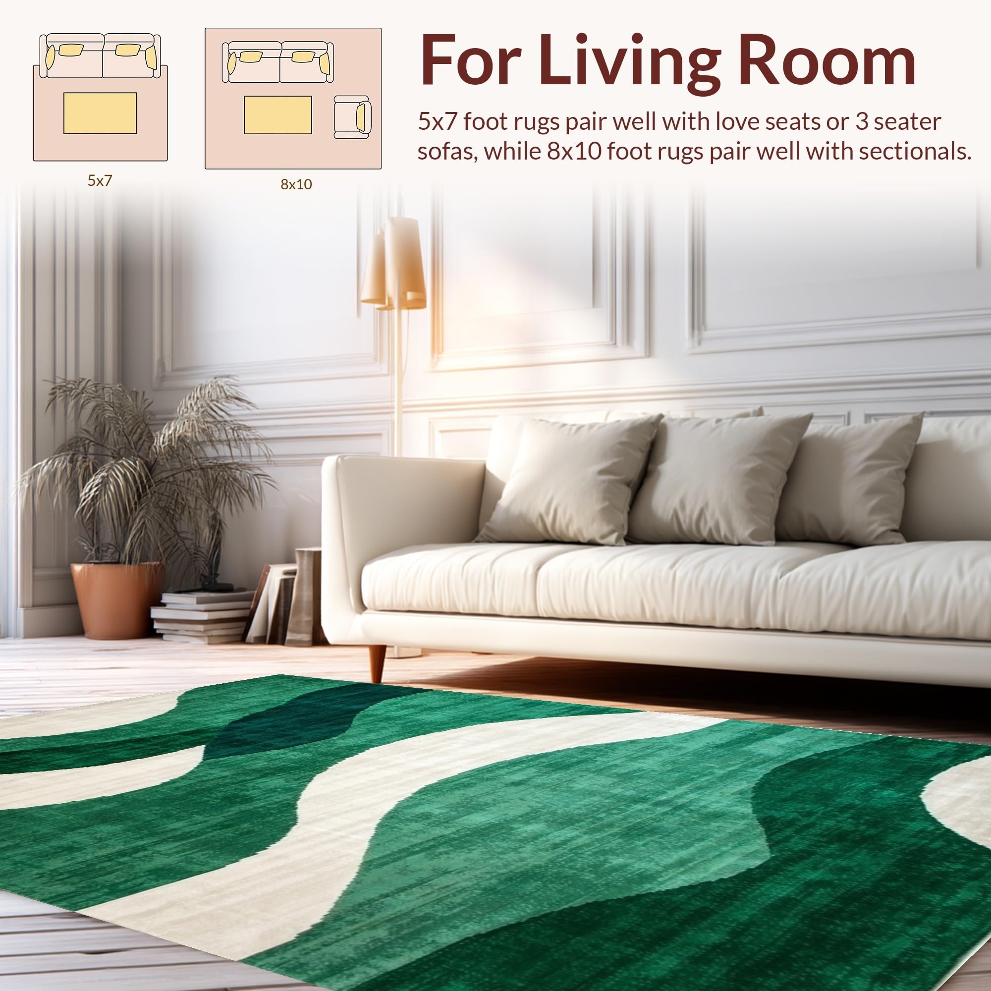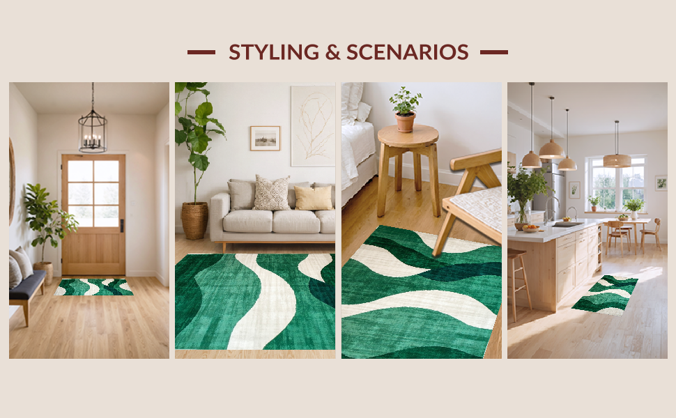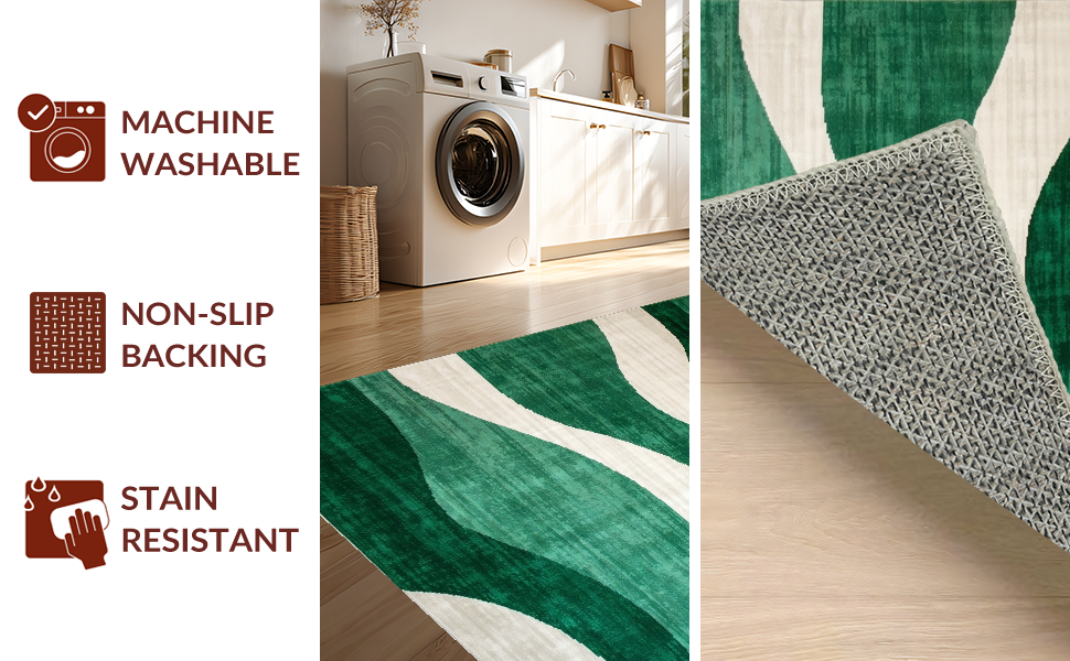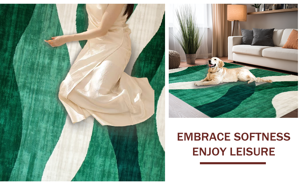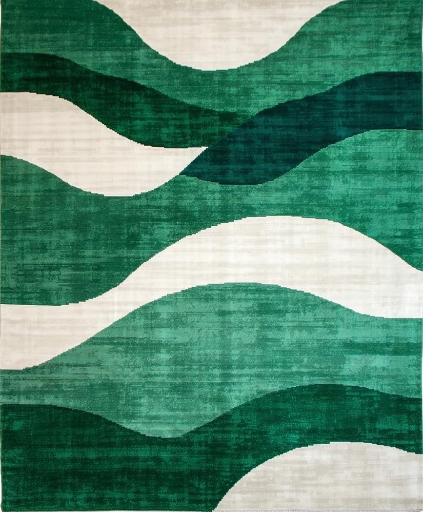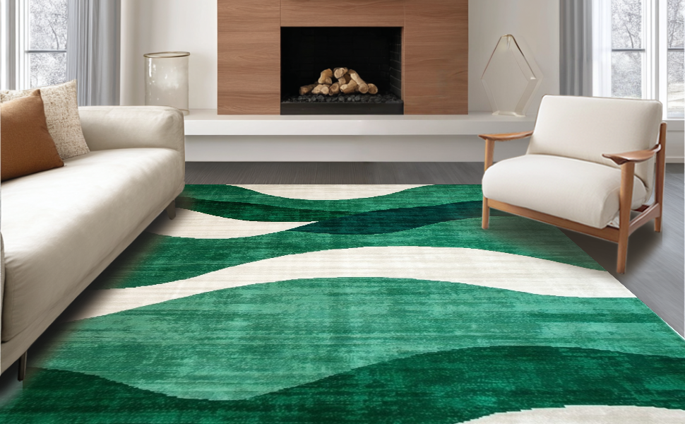 Ultra Soft Area Rug, Non Slip, Stain Resistant, Washable Area Rugs for Living Room, Bedroom, Trendy Artistic Abstract Curves(Green) Overview: