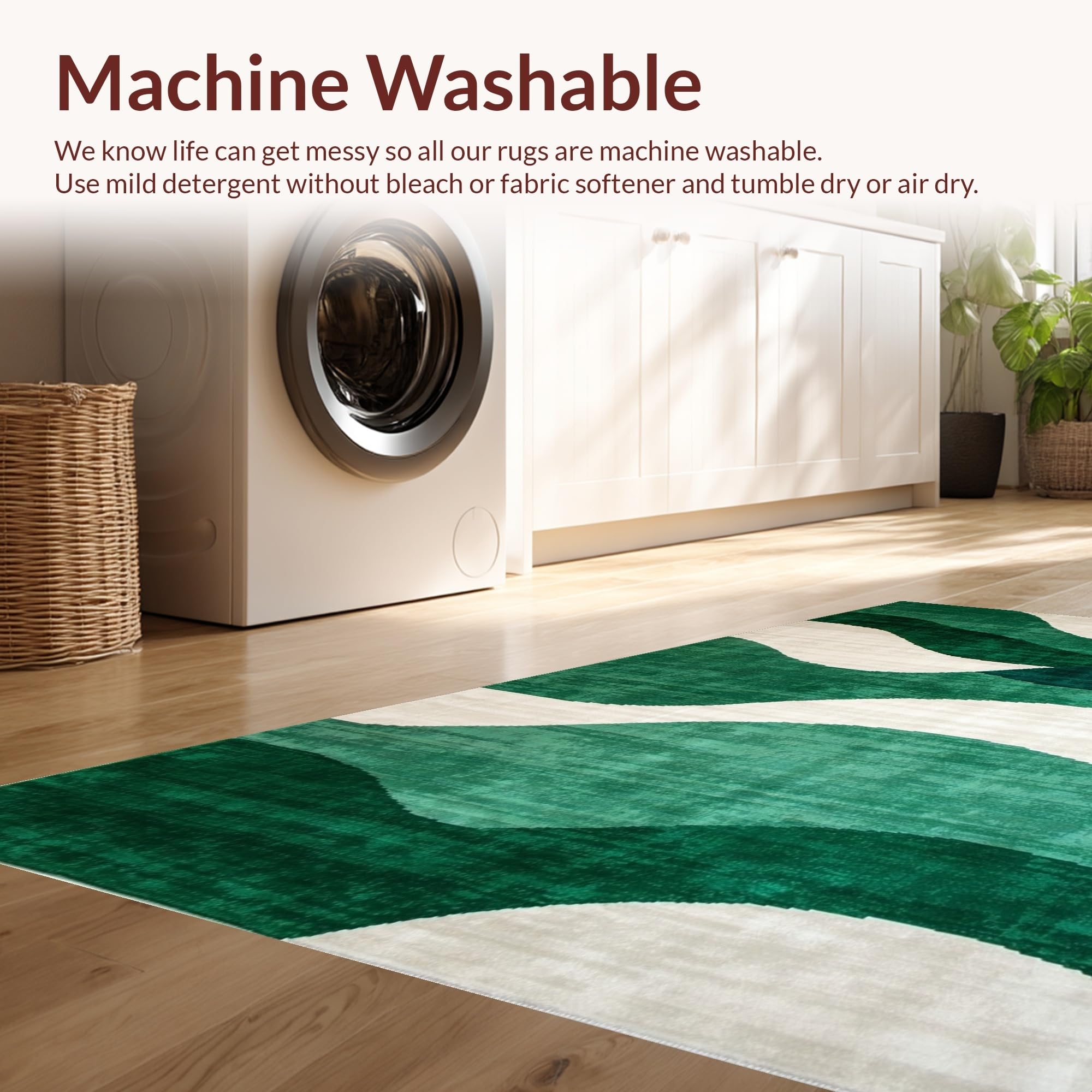 - Machine Washable: Our rugs can be easily thrown in the wash machine.