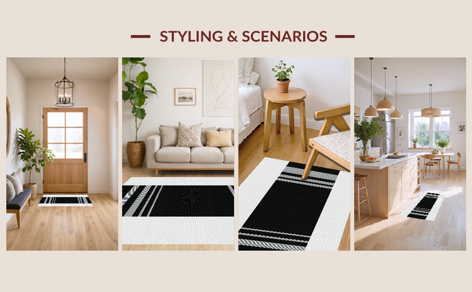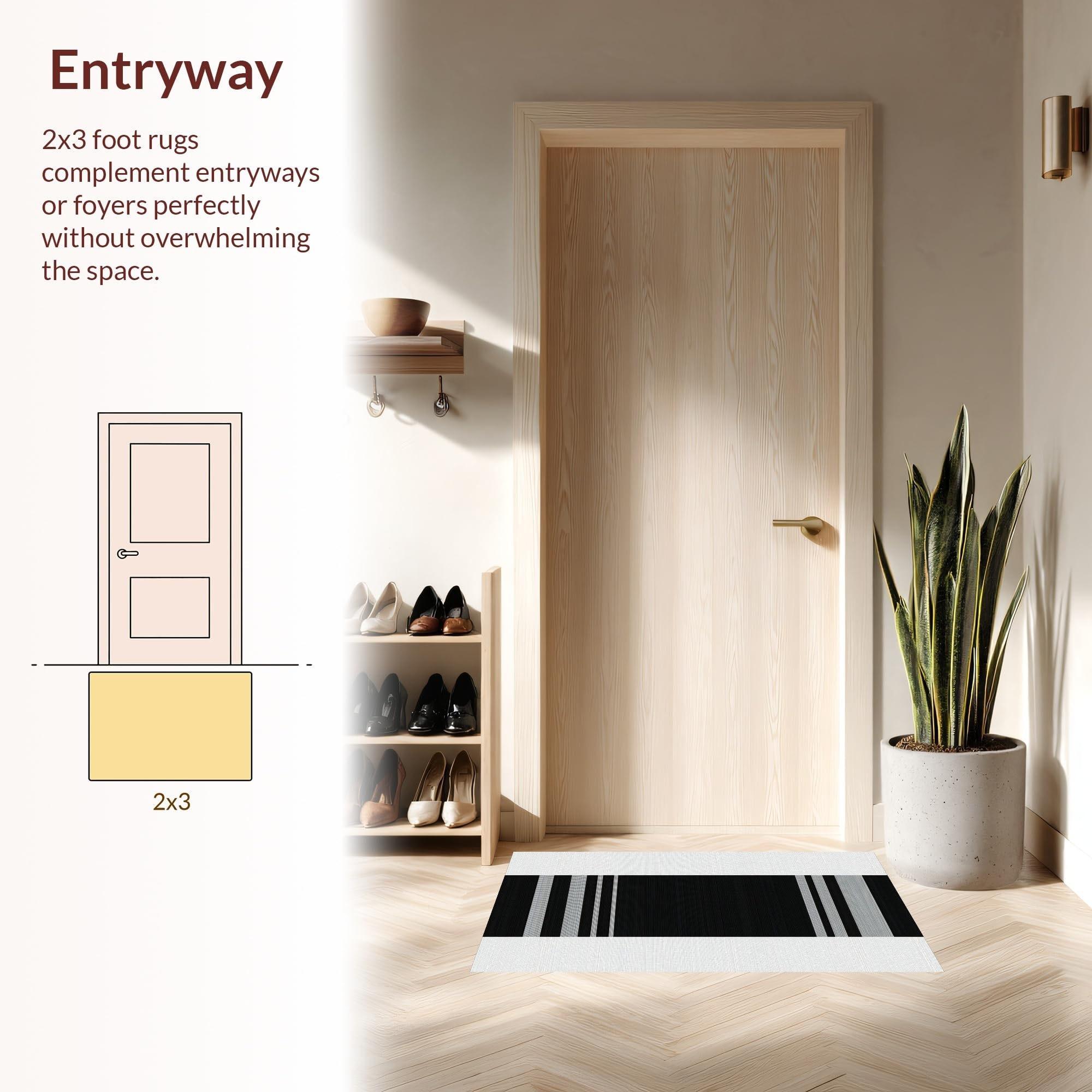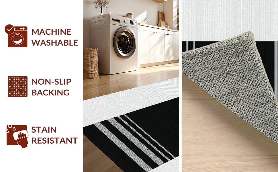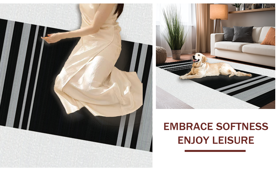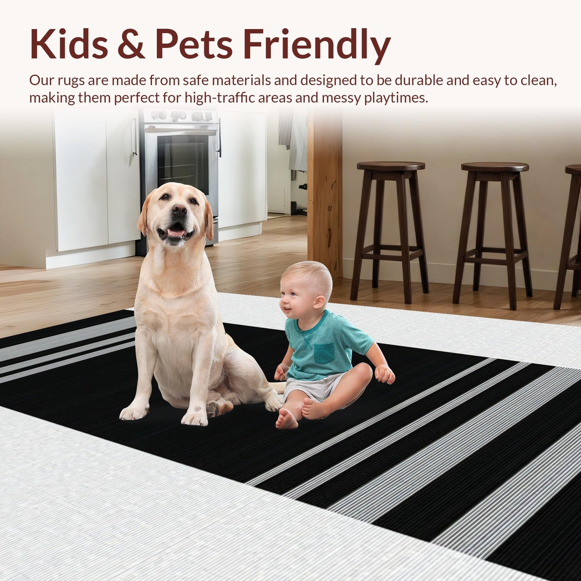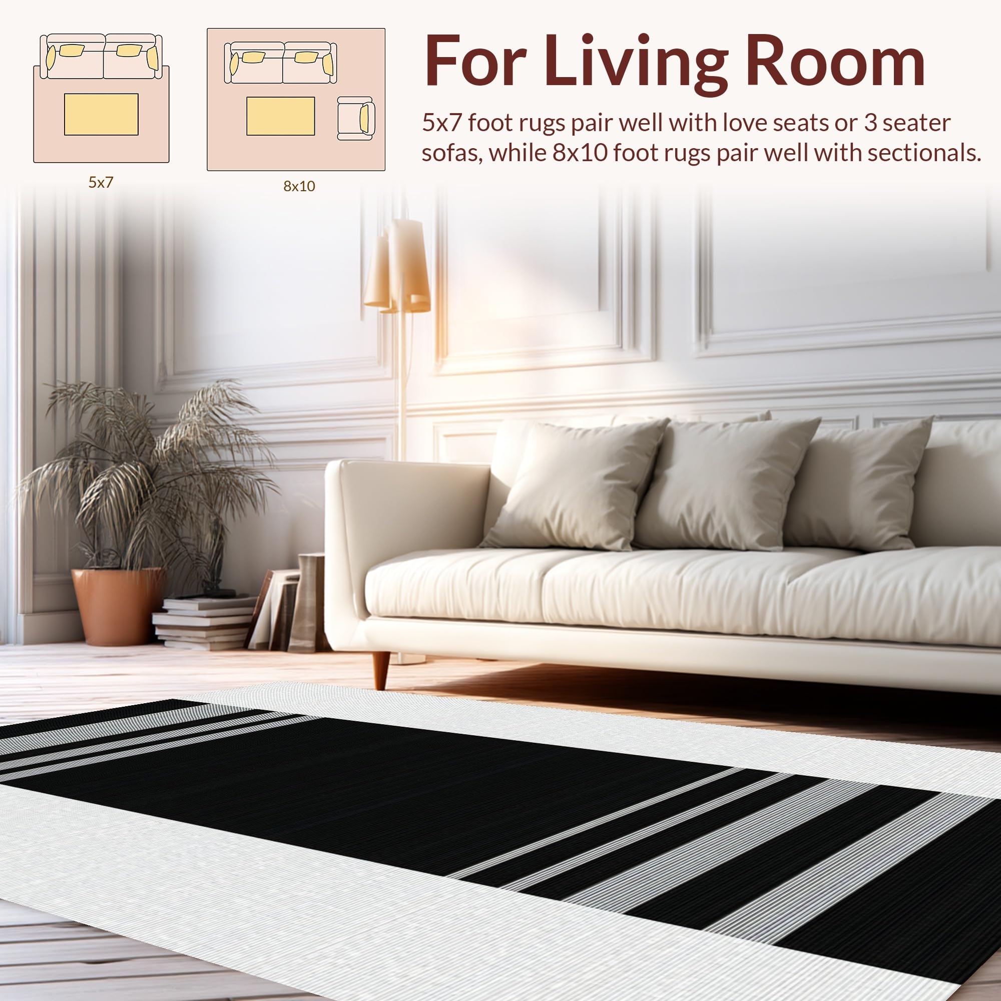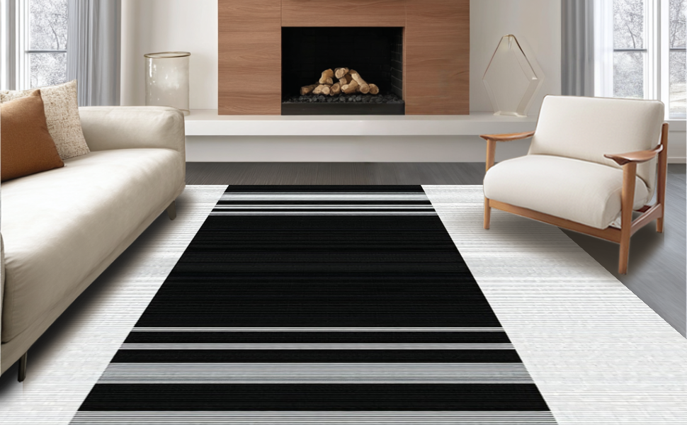 Ultra Soft Area Rug, Non Slip, Stain Resistant, Washable Area Rugs for Living Room, Bedroom, Trendy Black and White Pattern(Black) Overview: