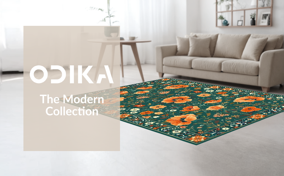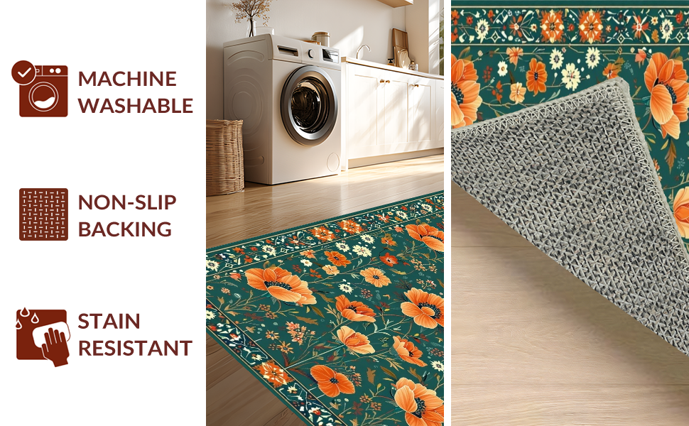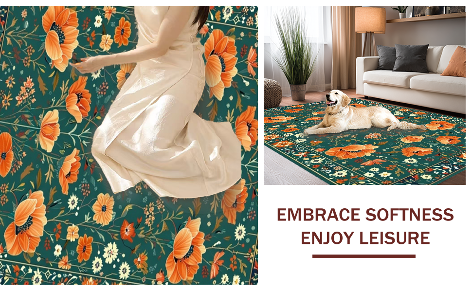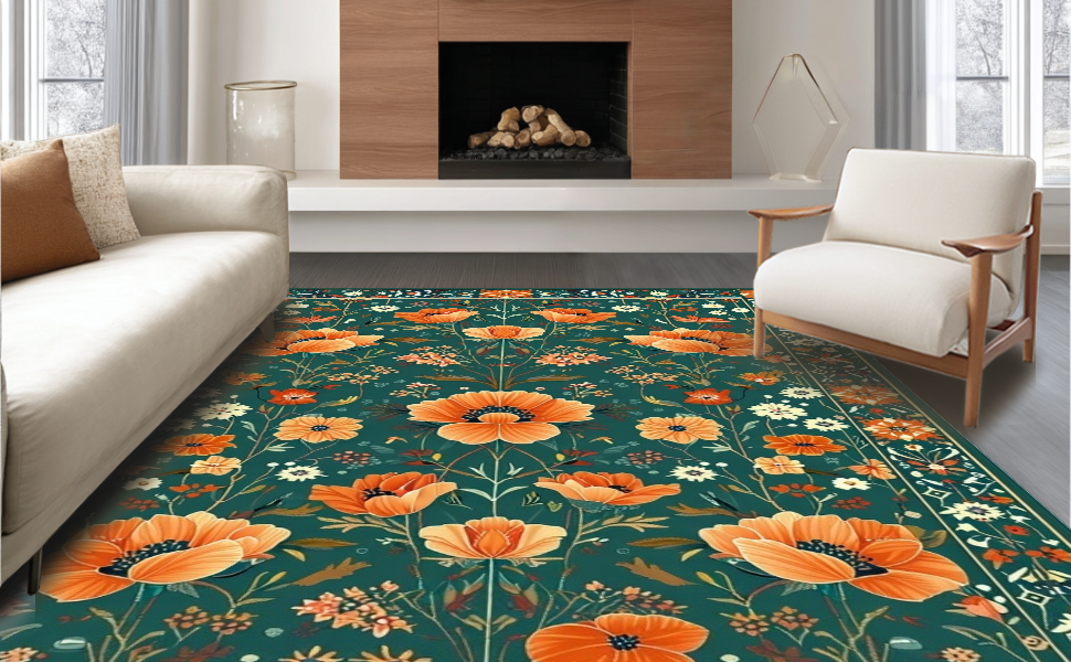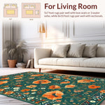 Ultra Soft Area Rug, Non Slip, Stain Resistant, Washable Area Rugs for Living Room, Bedroom, Trendy Contemporary Floral Fusion(Green) Overview: