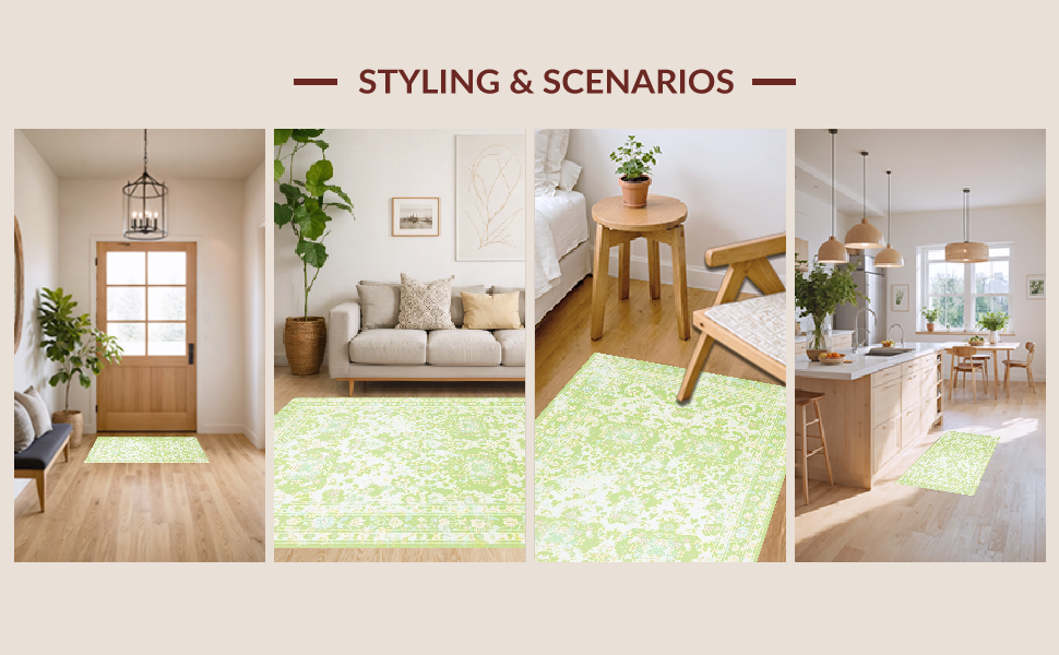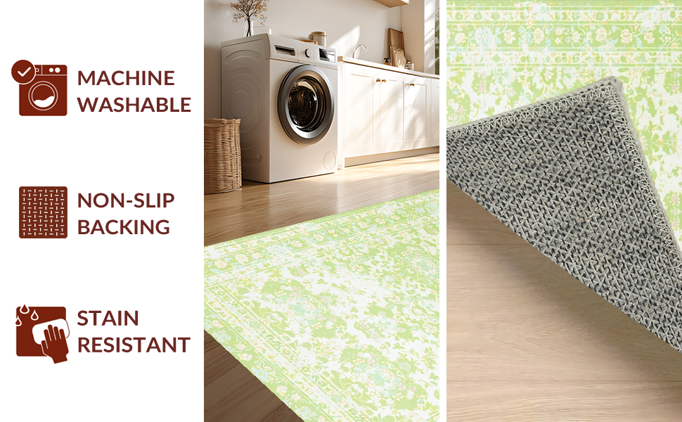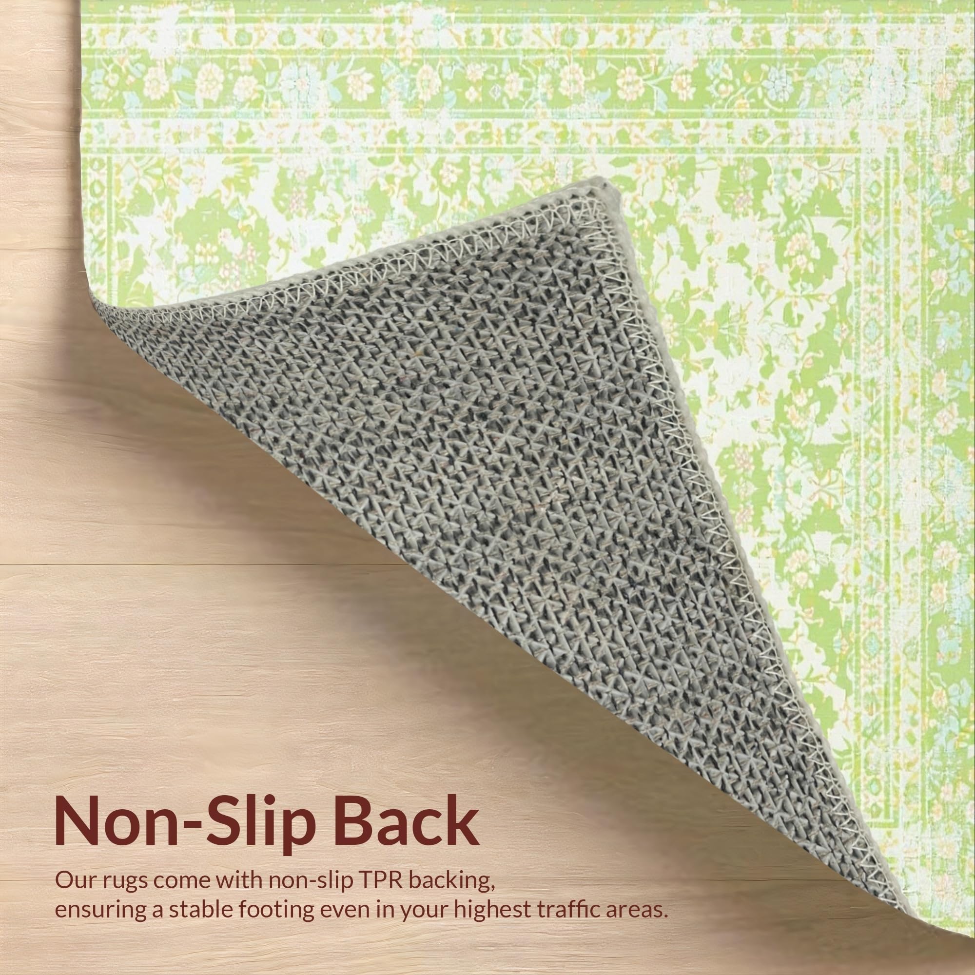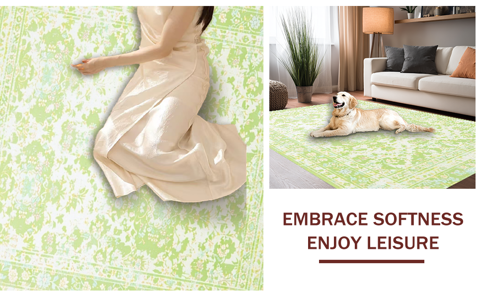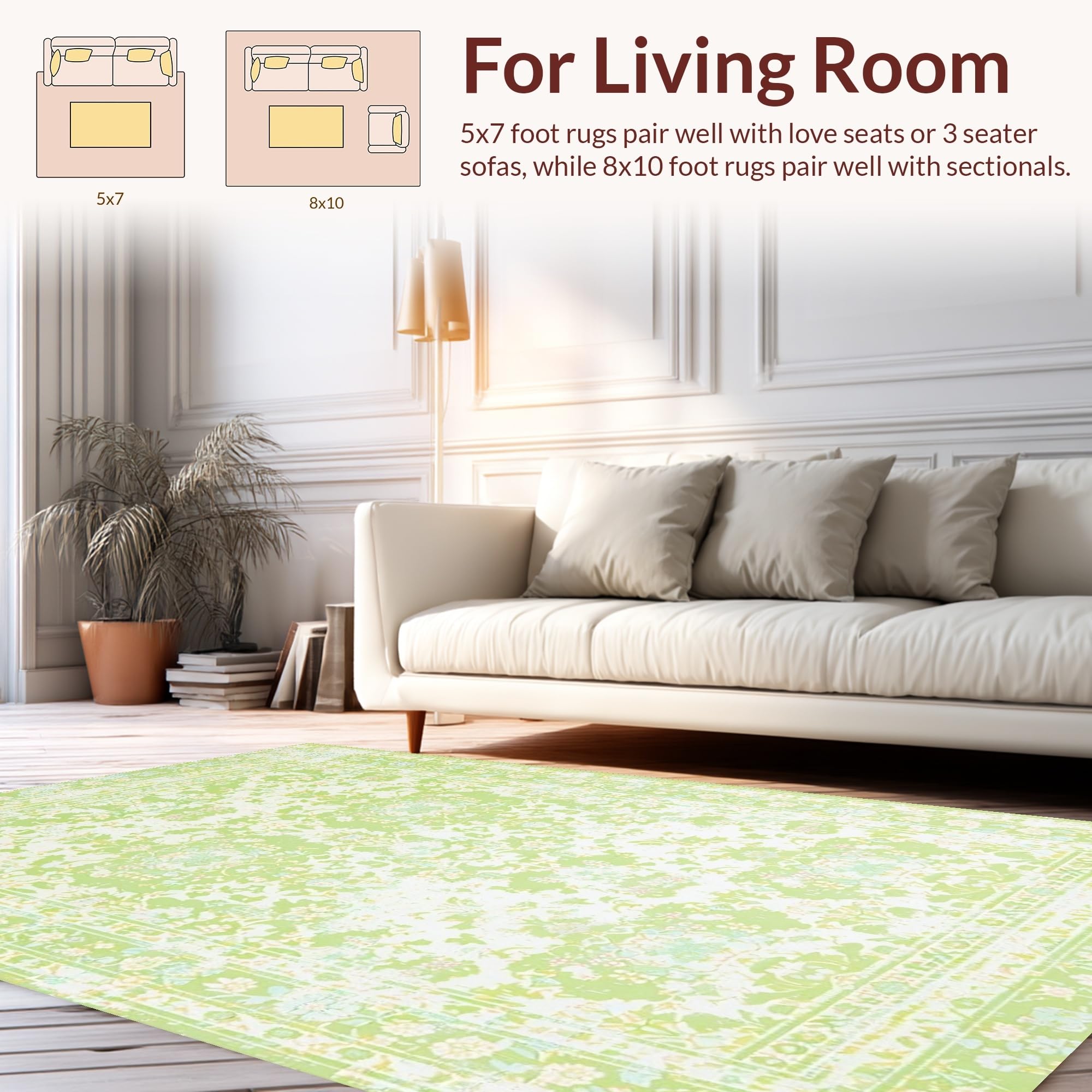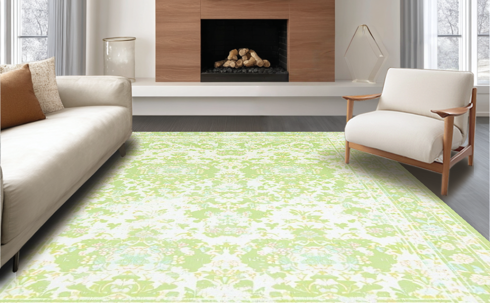Ultra Soft Area Rug, Non Slip, Stain Resistant, Washable Area Rugs for Living Room, Bedroom, Trendy Faded Tribal Motif(Green) Overview: