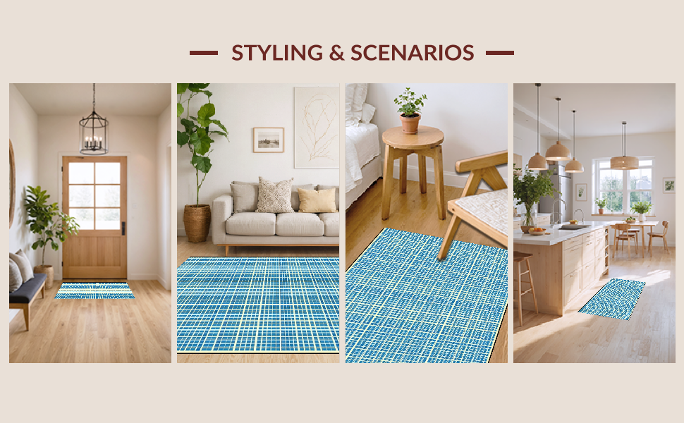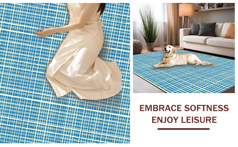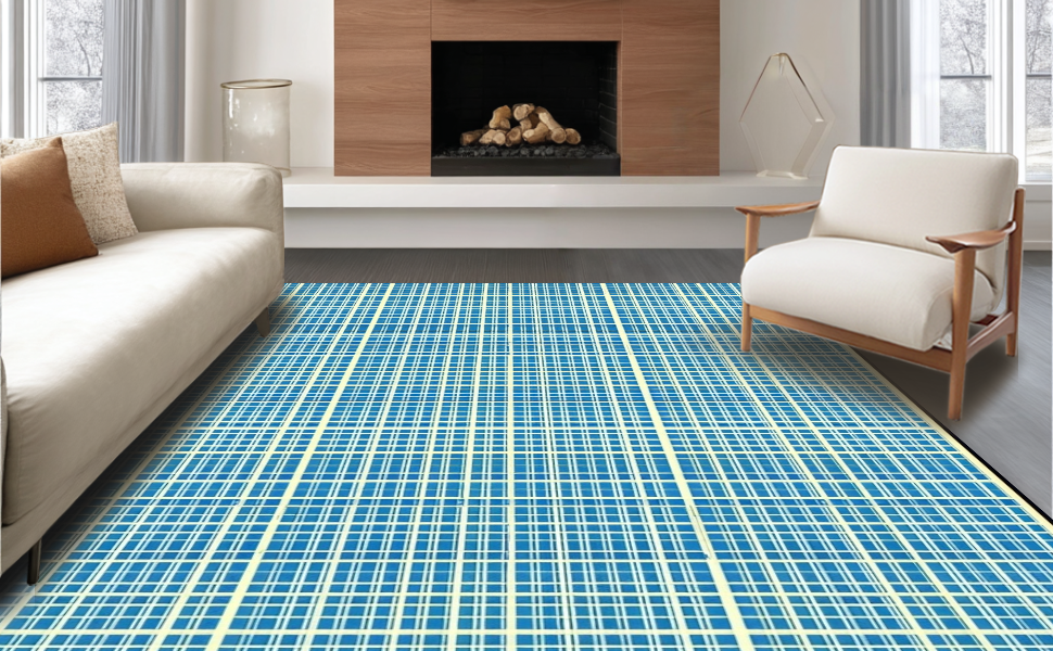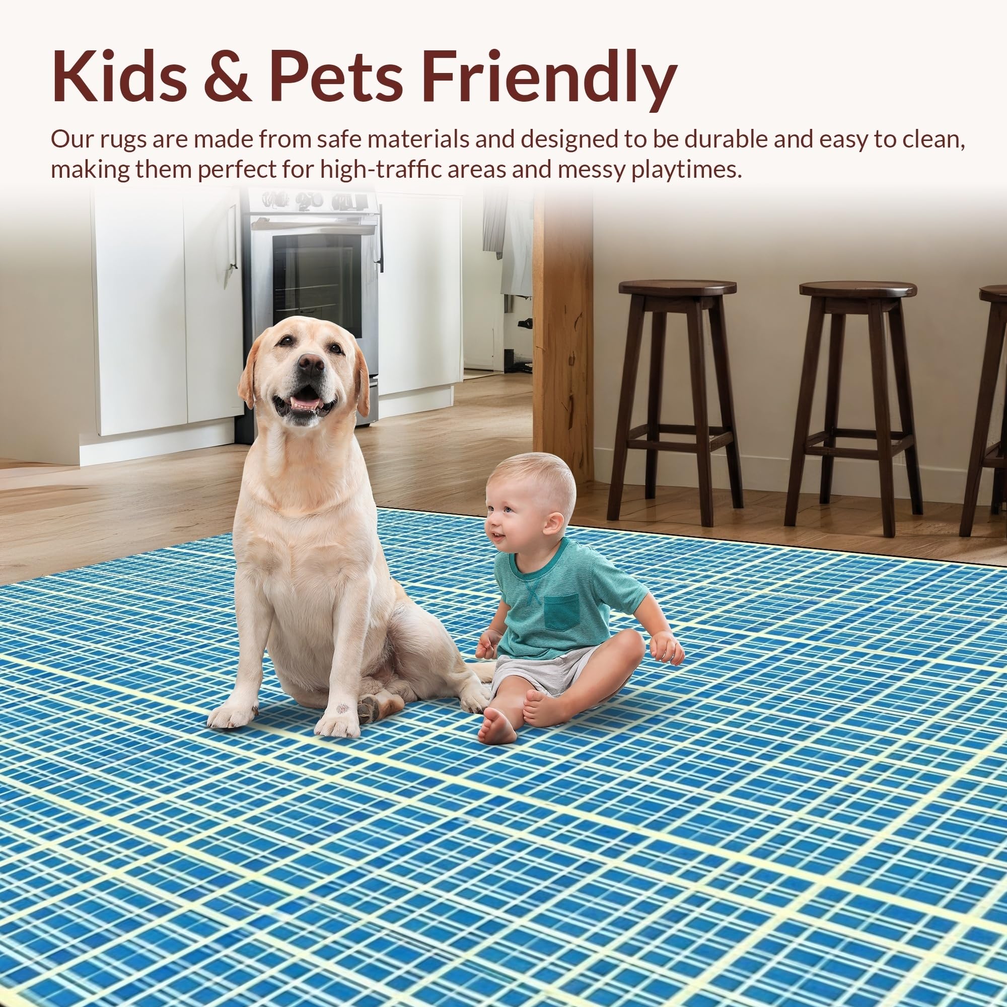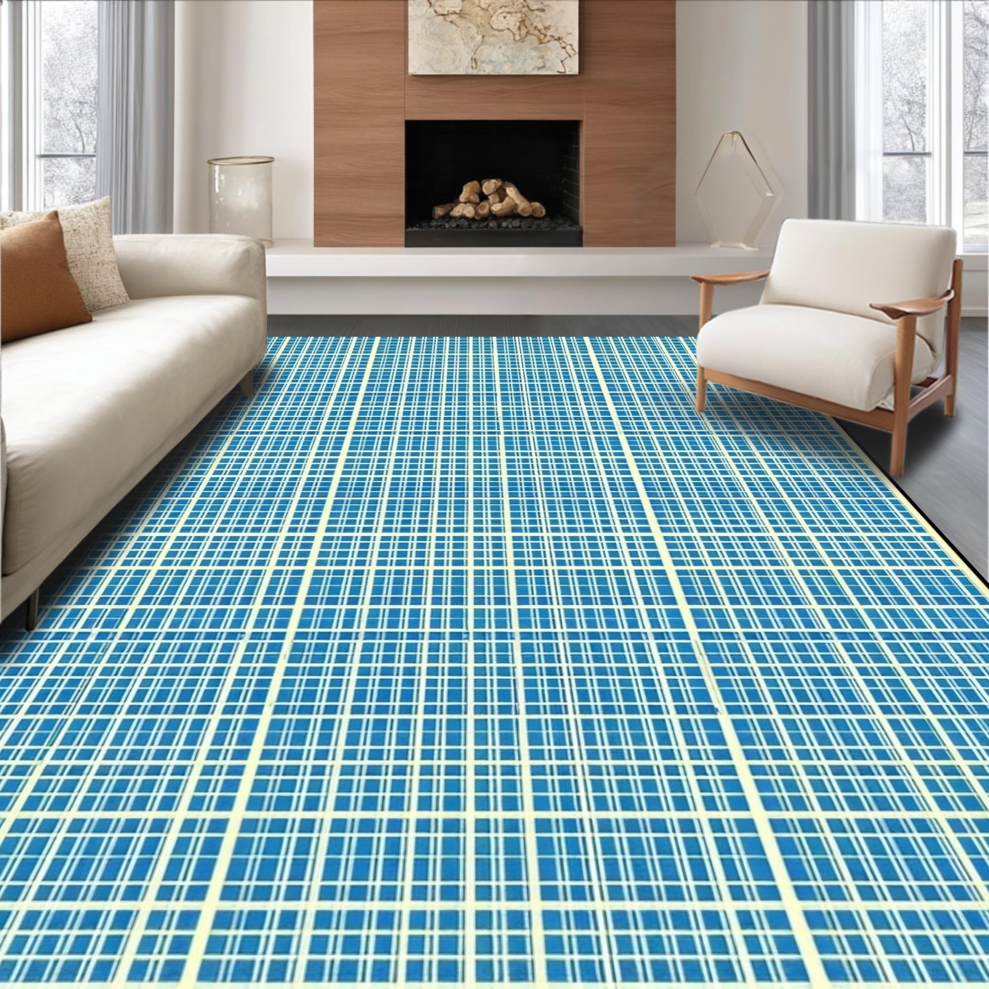 Ultra Soft Area Rug, Non Slip, Stain Resistant, Washable Area Rugs for Living Room, Bedroom, Trendy Lattice Structure with Depth(Blue) Overview: