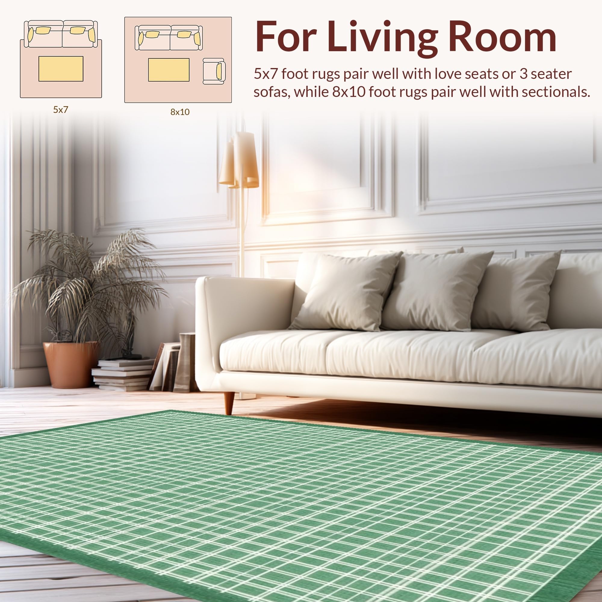 Ultra Soft Area Rug, Non Slip, Stain Resistant, Washable Area Rugs for Living Room, Bedroom, Trendy Minimalist Sage Decor(Green) Overview: