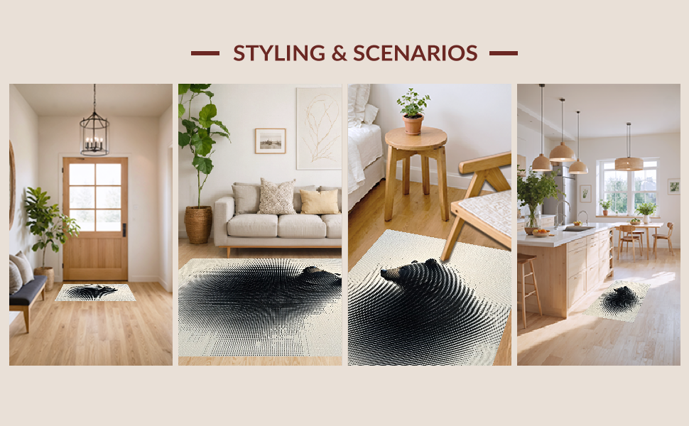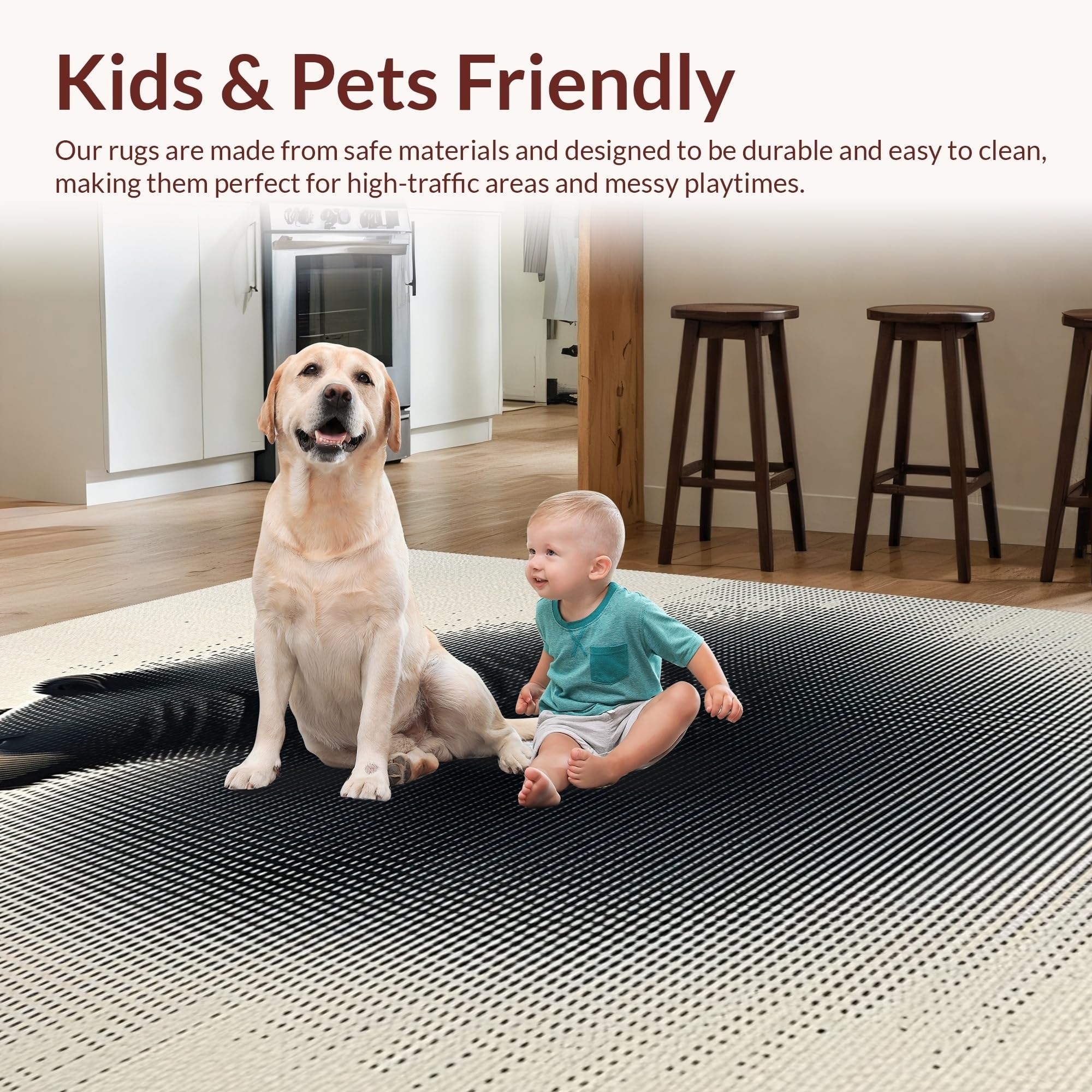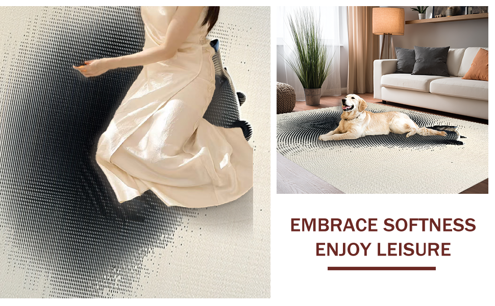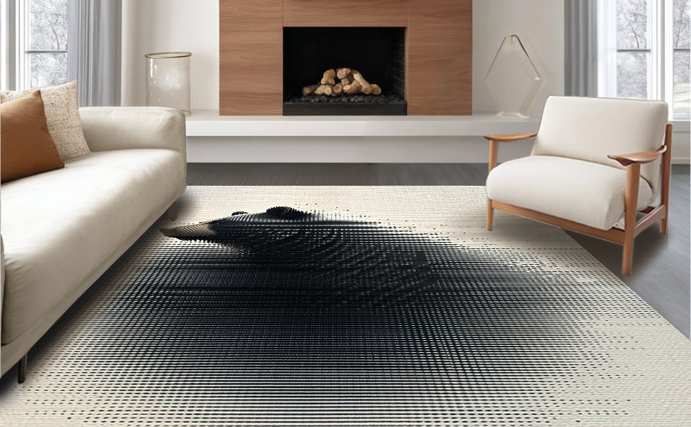 Ultra Soft Area Rug, Non Slip, Stain Resistant, Washable Area Rugs for Living Room, Bedroom, Trendy Monochrome Shag Pattern(Black) Overview: