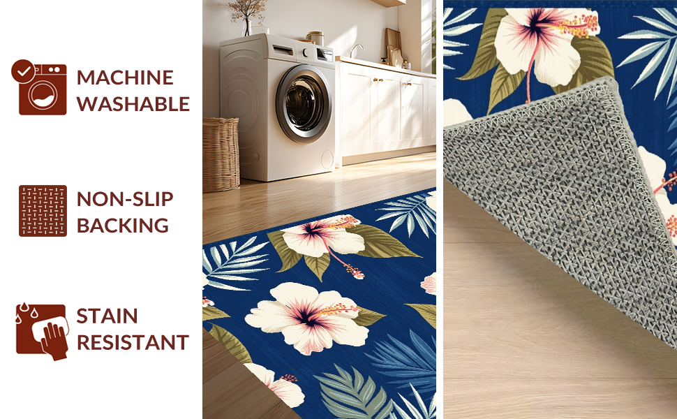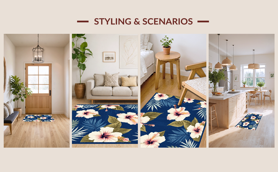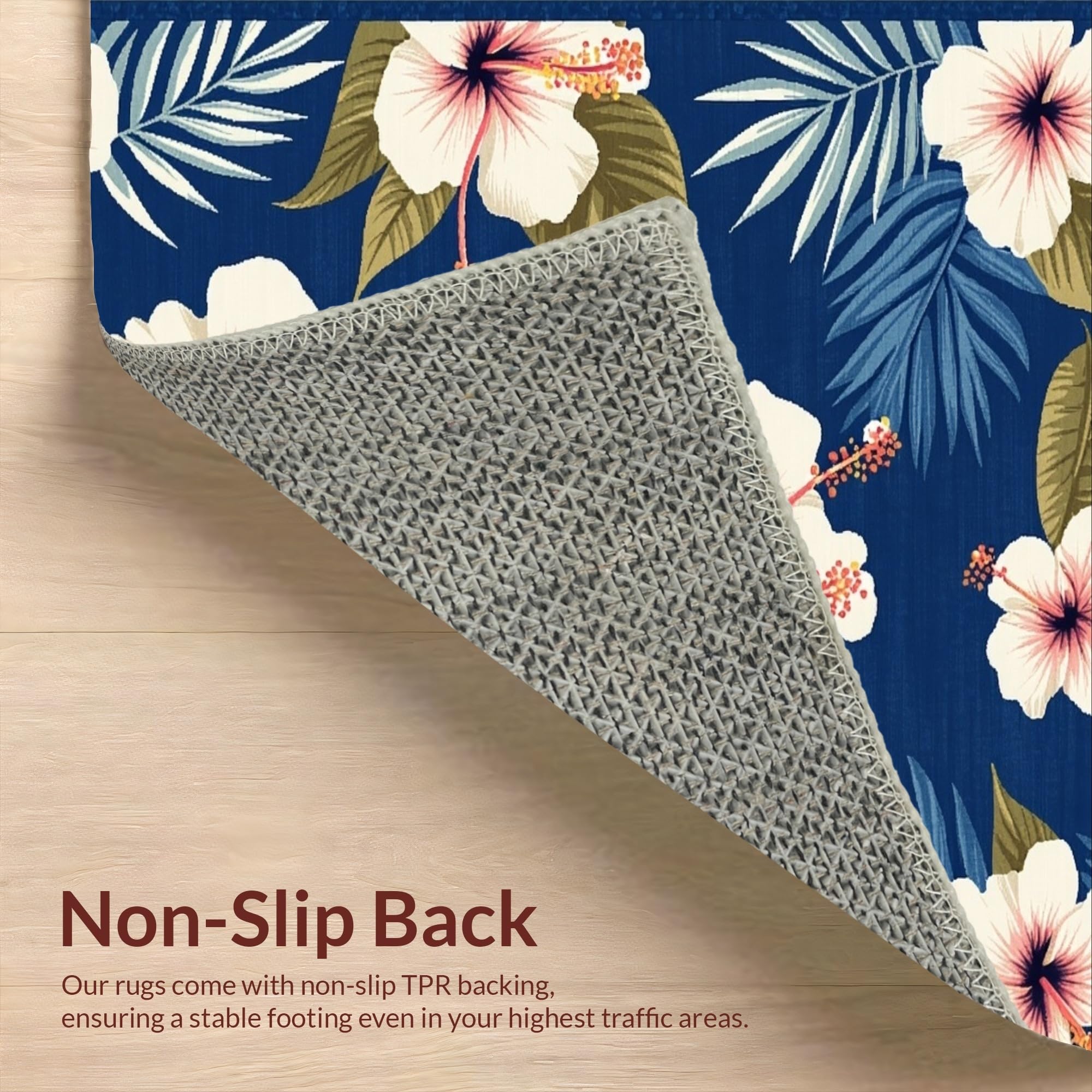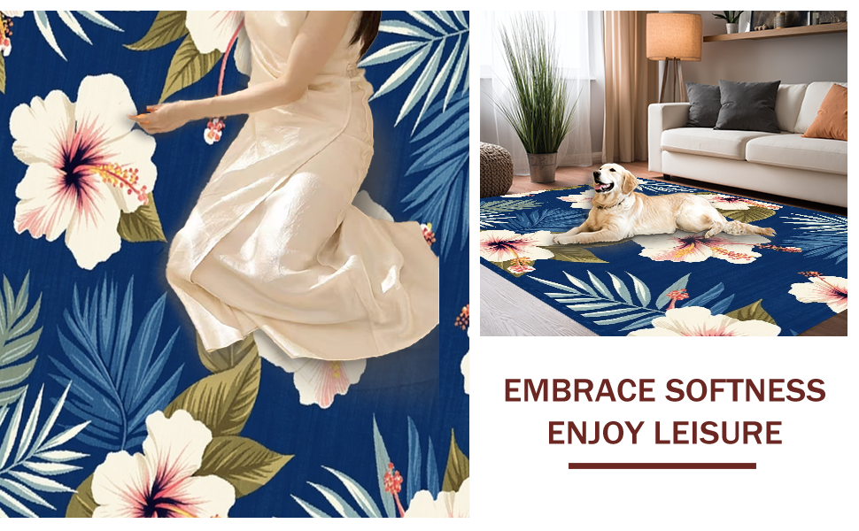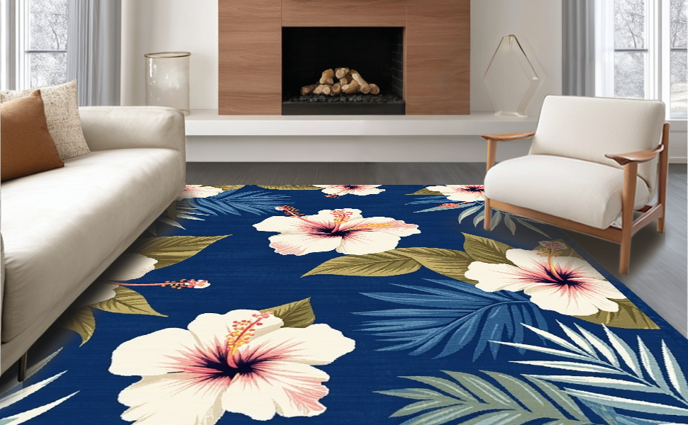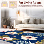 Ultra Soft Area Rug, Non Slip, Stain Resistant, Washable Area Rugs for Living Room, Bedroom, Trendy Navy Floral Composition(Blue) Overview: