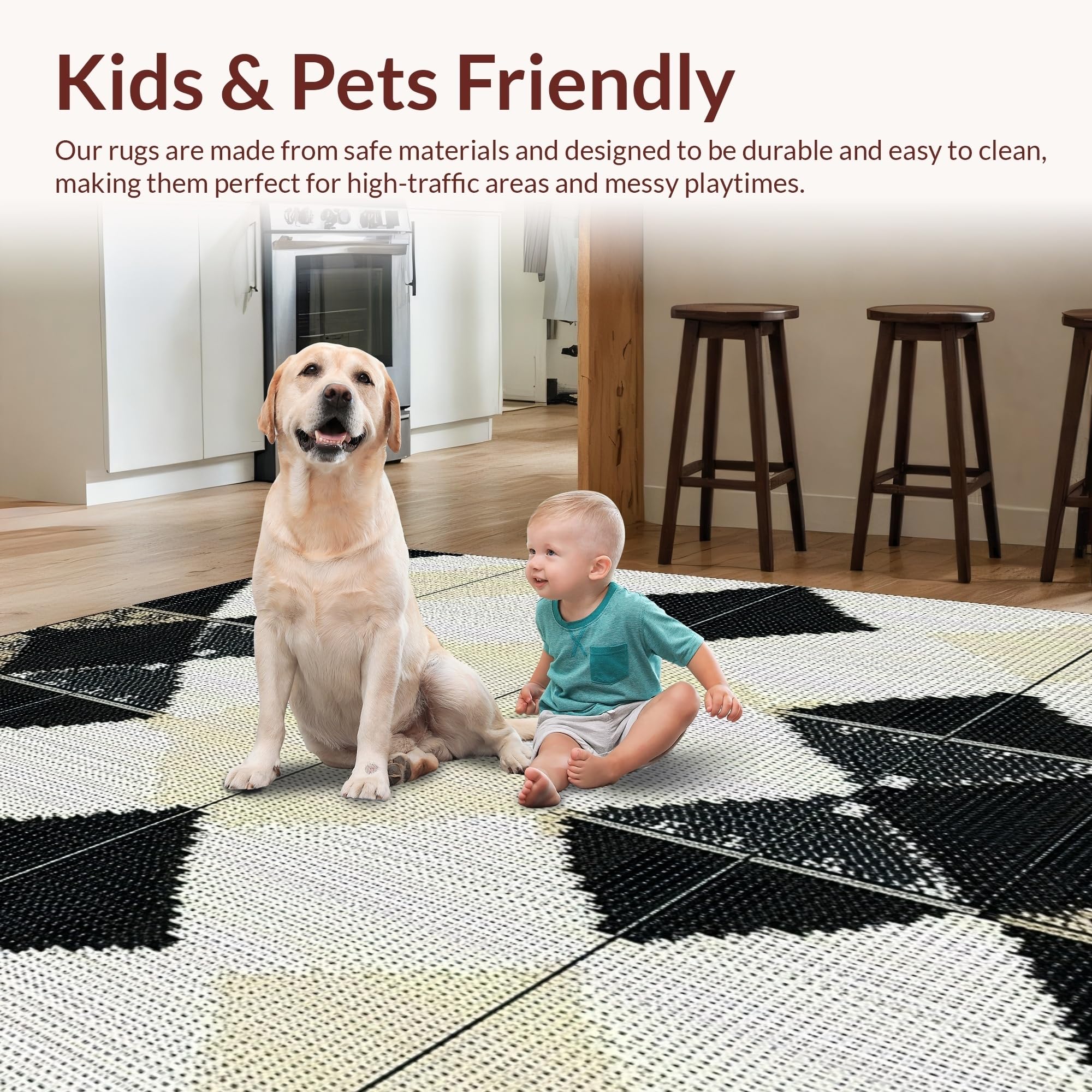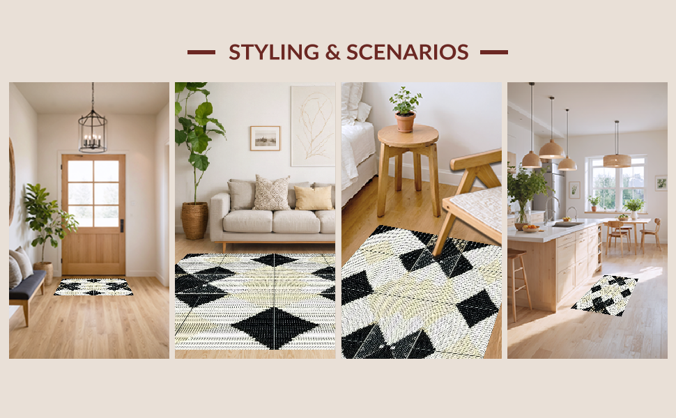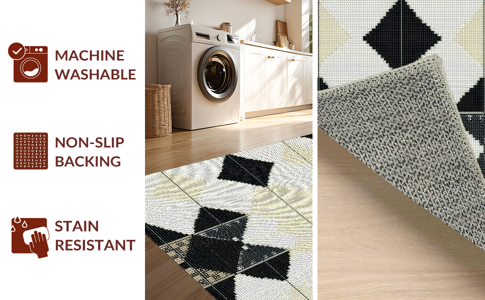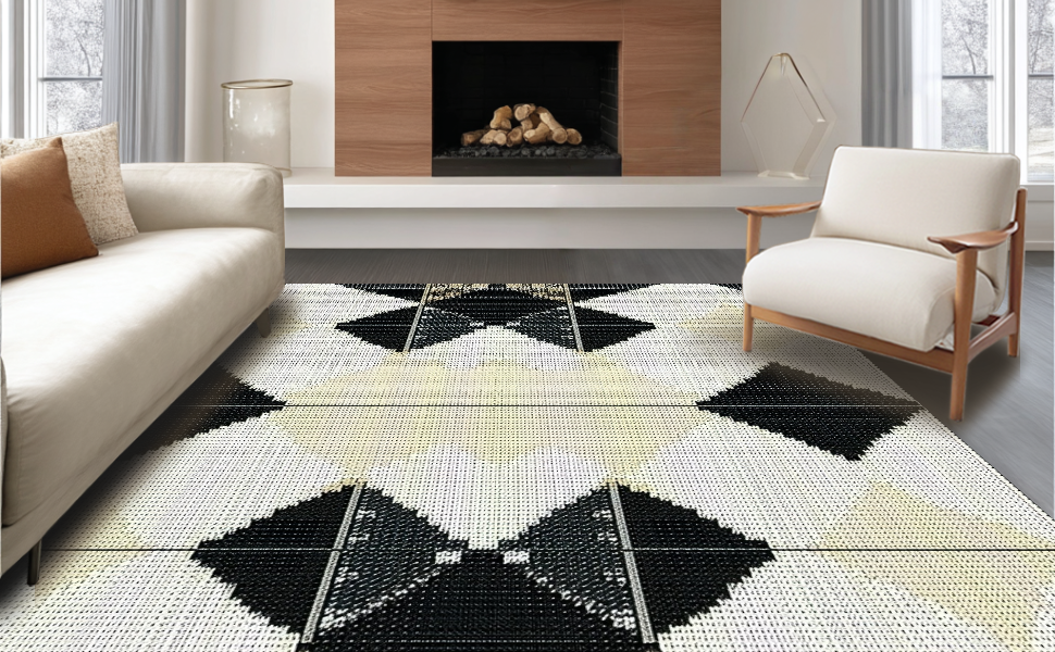 Ultra Soft Area Rug, Non Slip, Stain Resistant, Washable Area Rugs for Living Room, Bedroom, Trendy Open Space Geometric Pattern(Black) Overview: