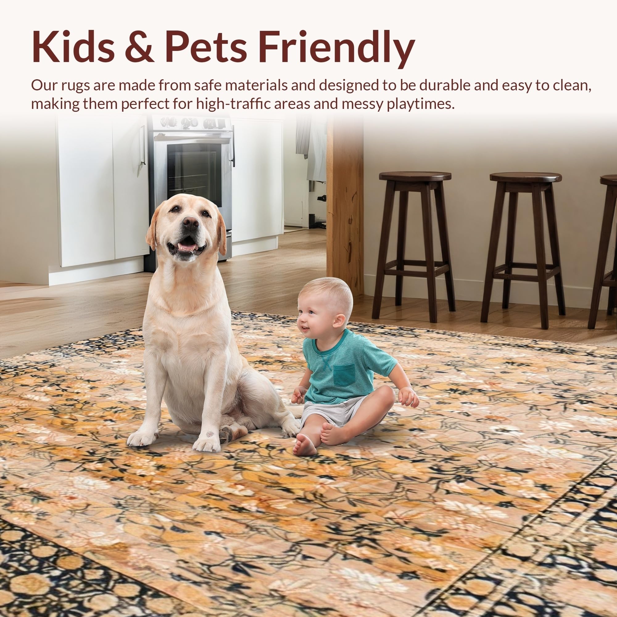 Ultra Soft Area Rug, Non Slip, Stain Resistant, Washable Area Rugs for Living Room, Bedroom, Trendy Patchwork Area with Contemporary Floral Design(Beige) Overview:
