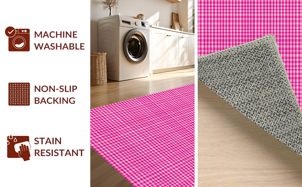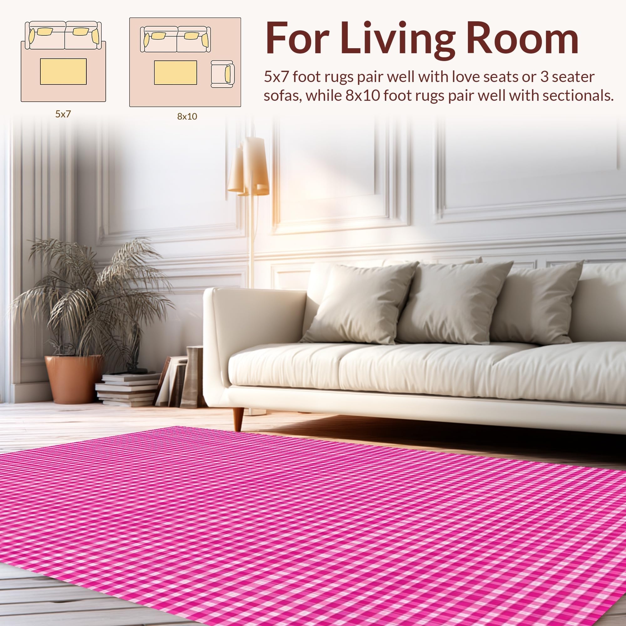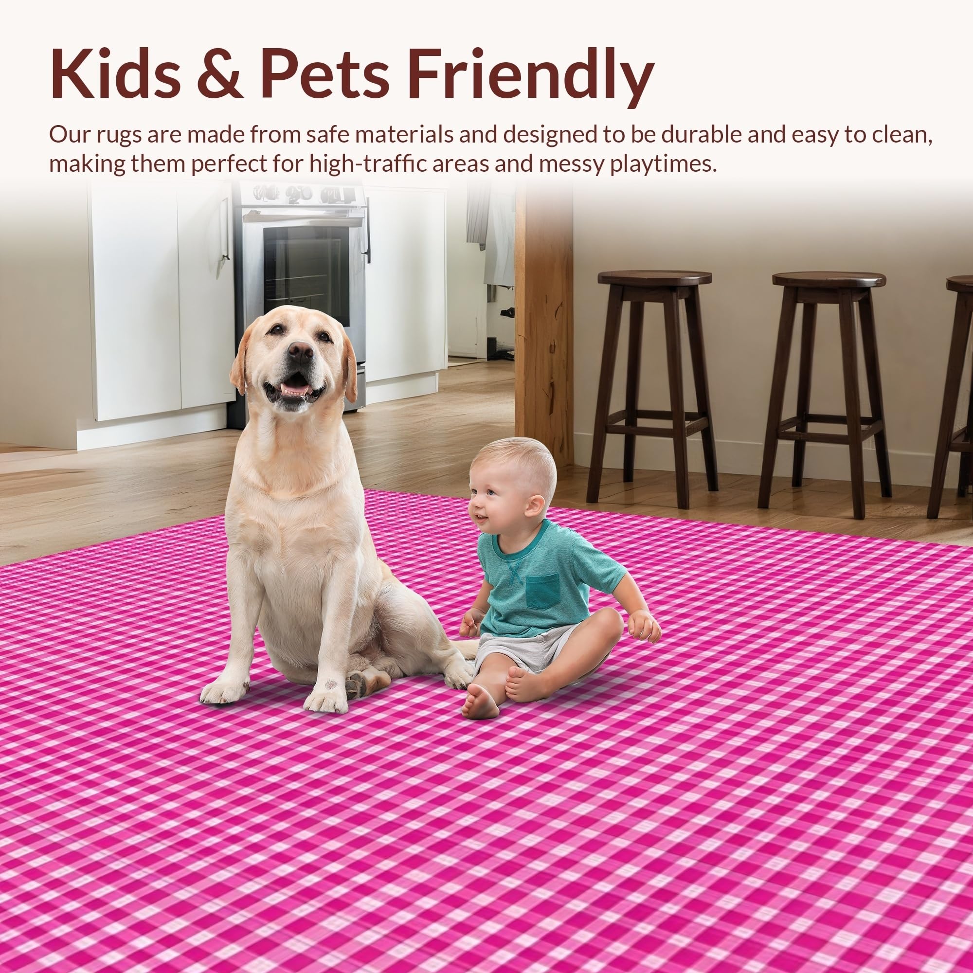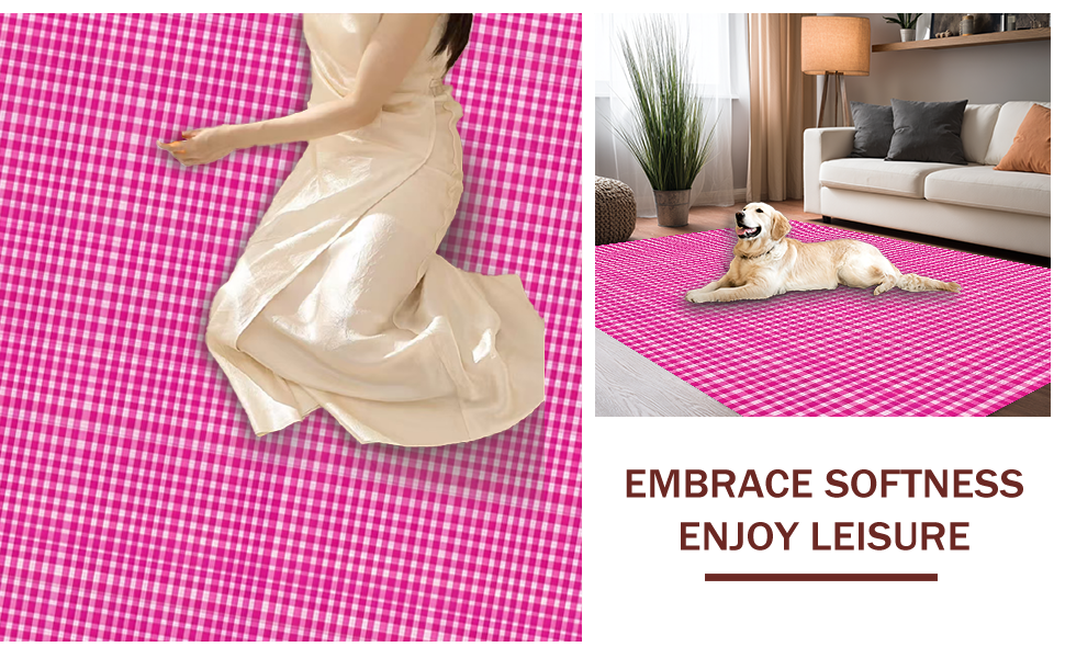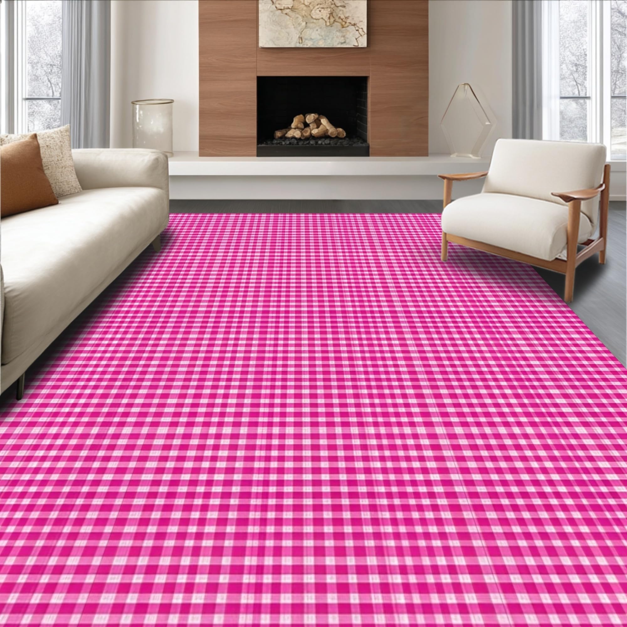 Ultra Soft Area Rug, Non Slip, Stain Resistant, Washable Area Rugs for Living Room, Bedroom, Trendy Pink Check Pattern Appeal(Pink) Overview: