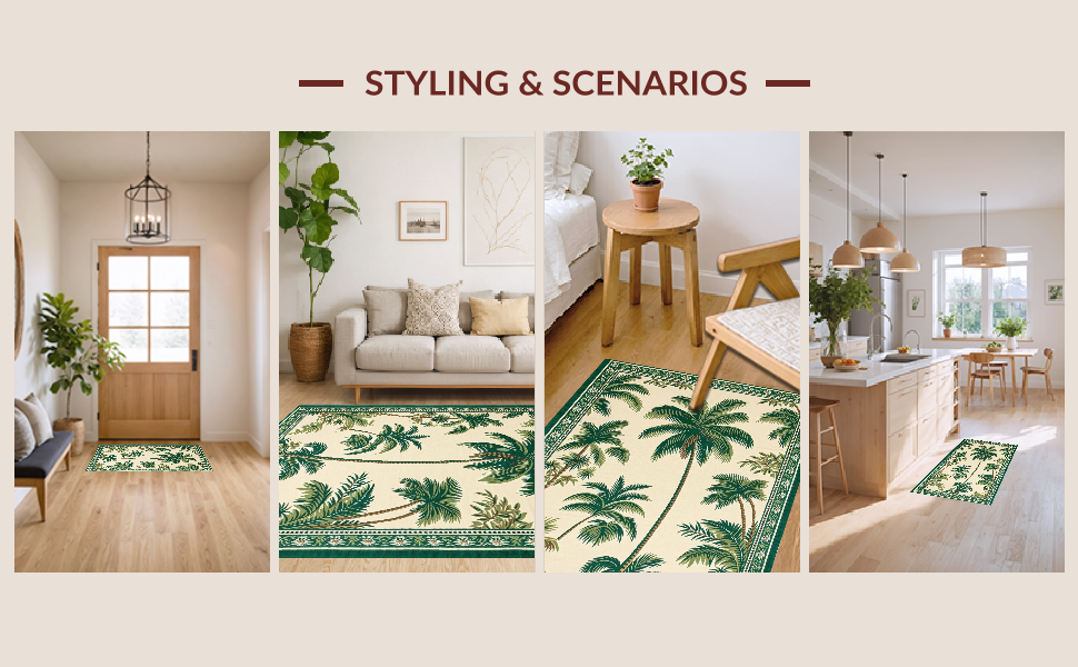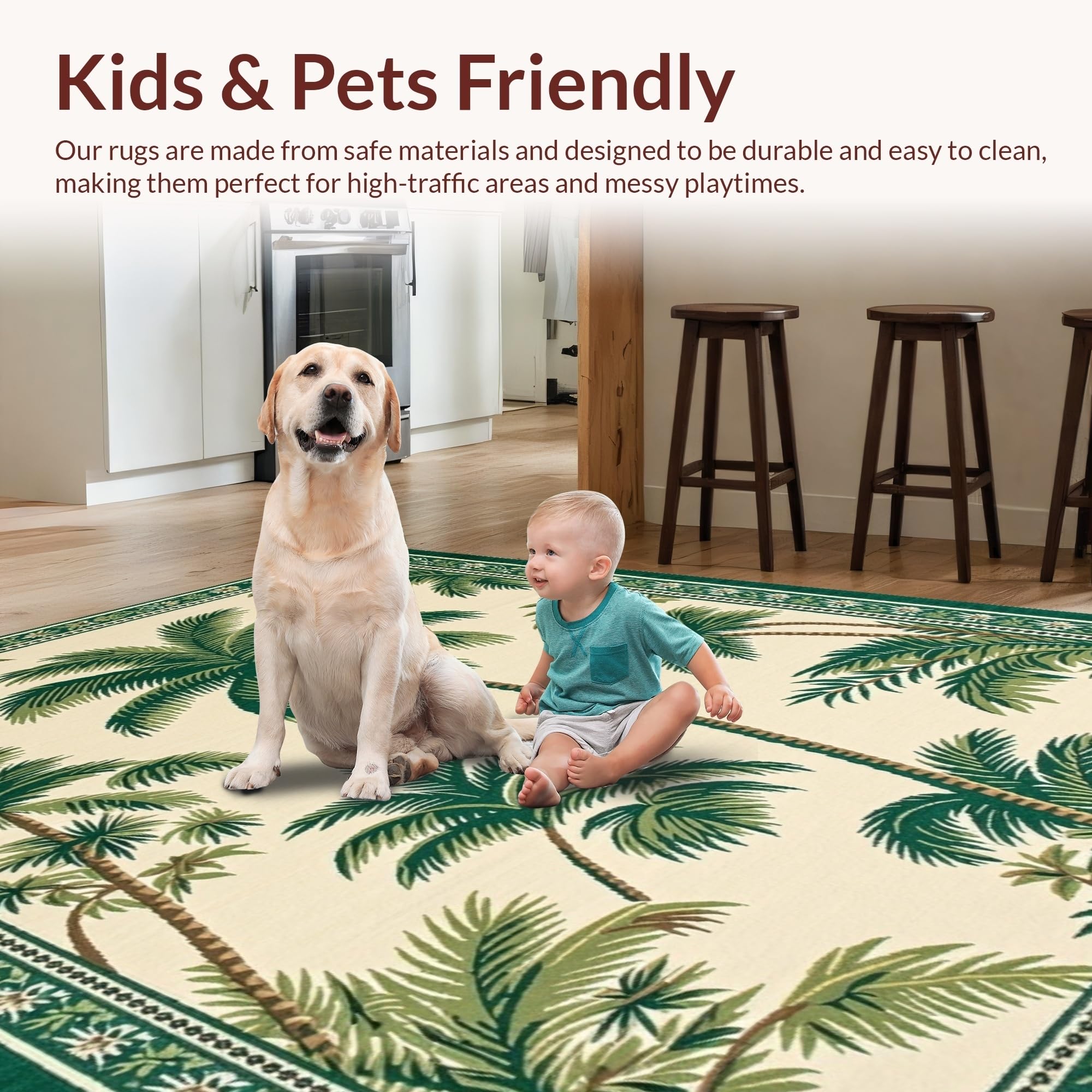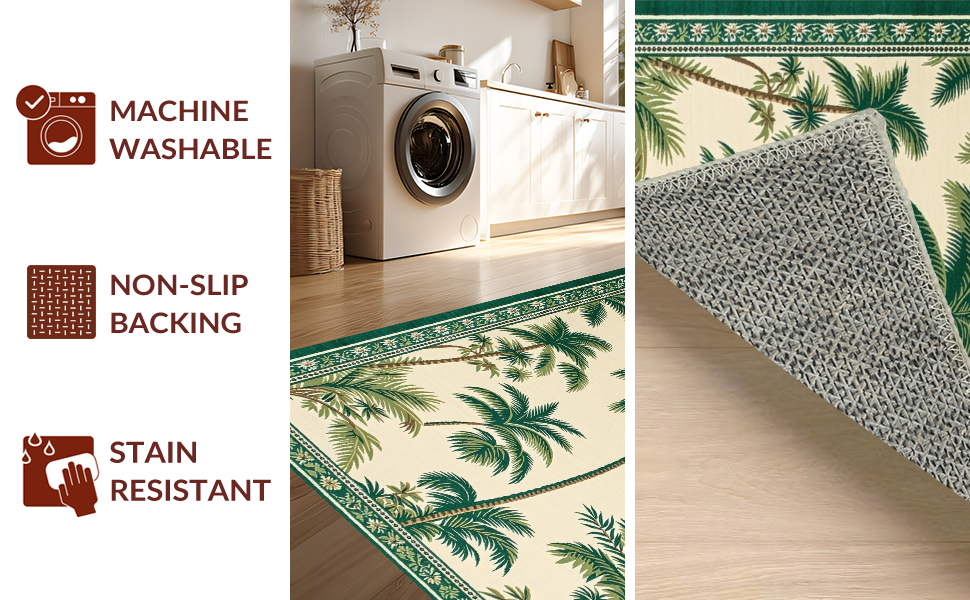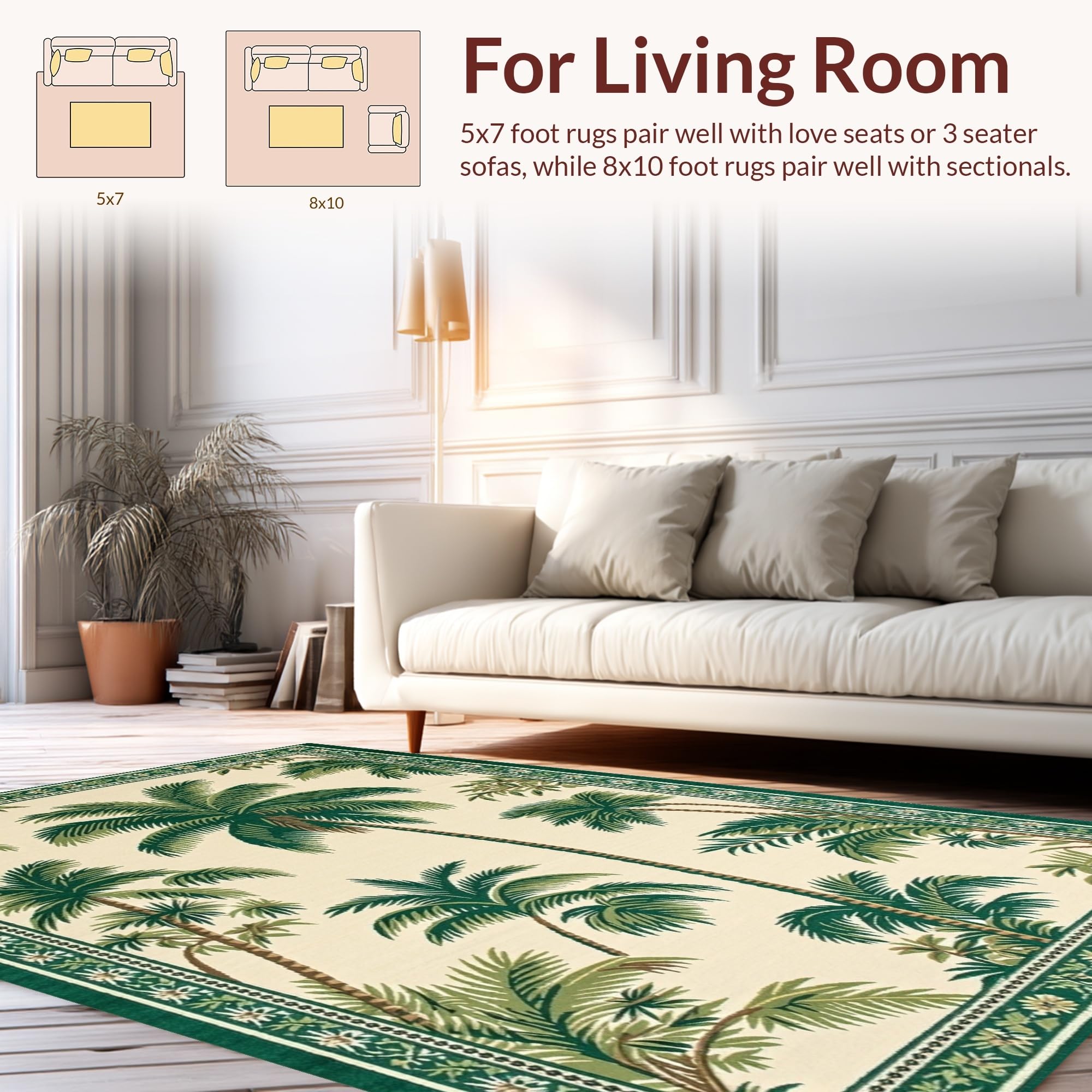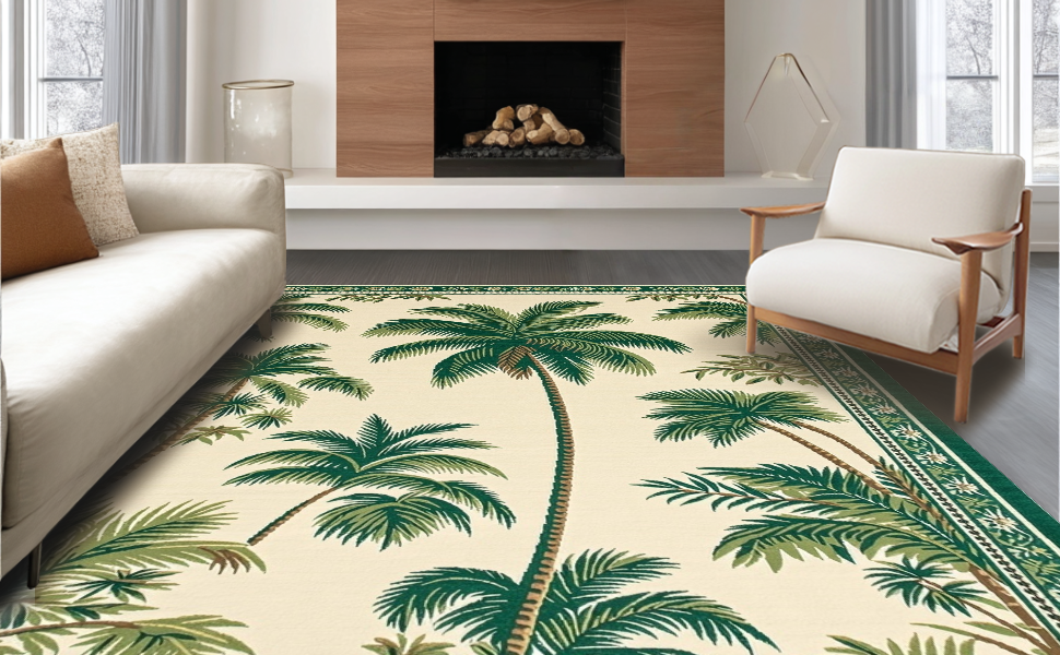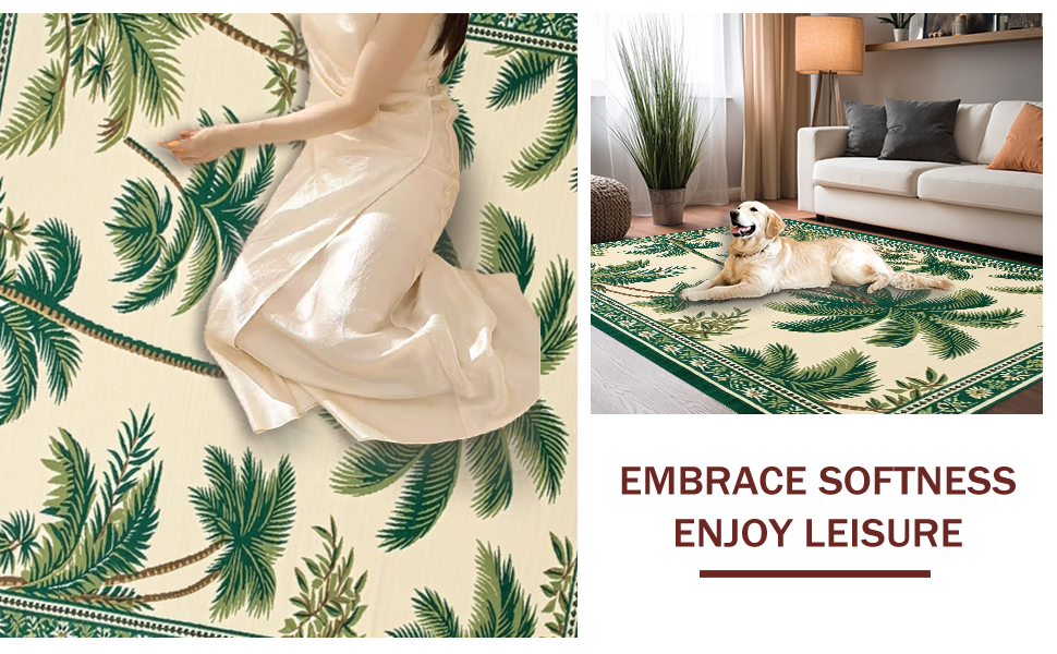 Ultra Soft Area Rug, Non Slip, Stain Resistant, Washable Area Rugs for Living Room, Bedroom, Trendy Retro Tropical Style(Beige) Overview: