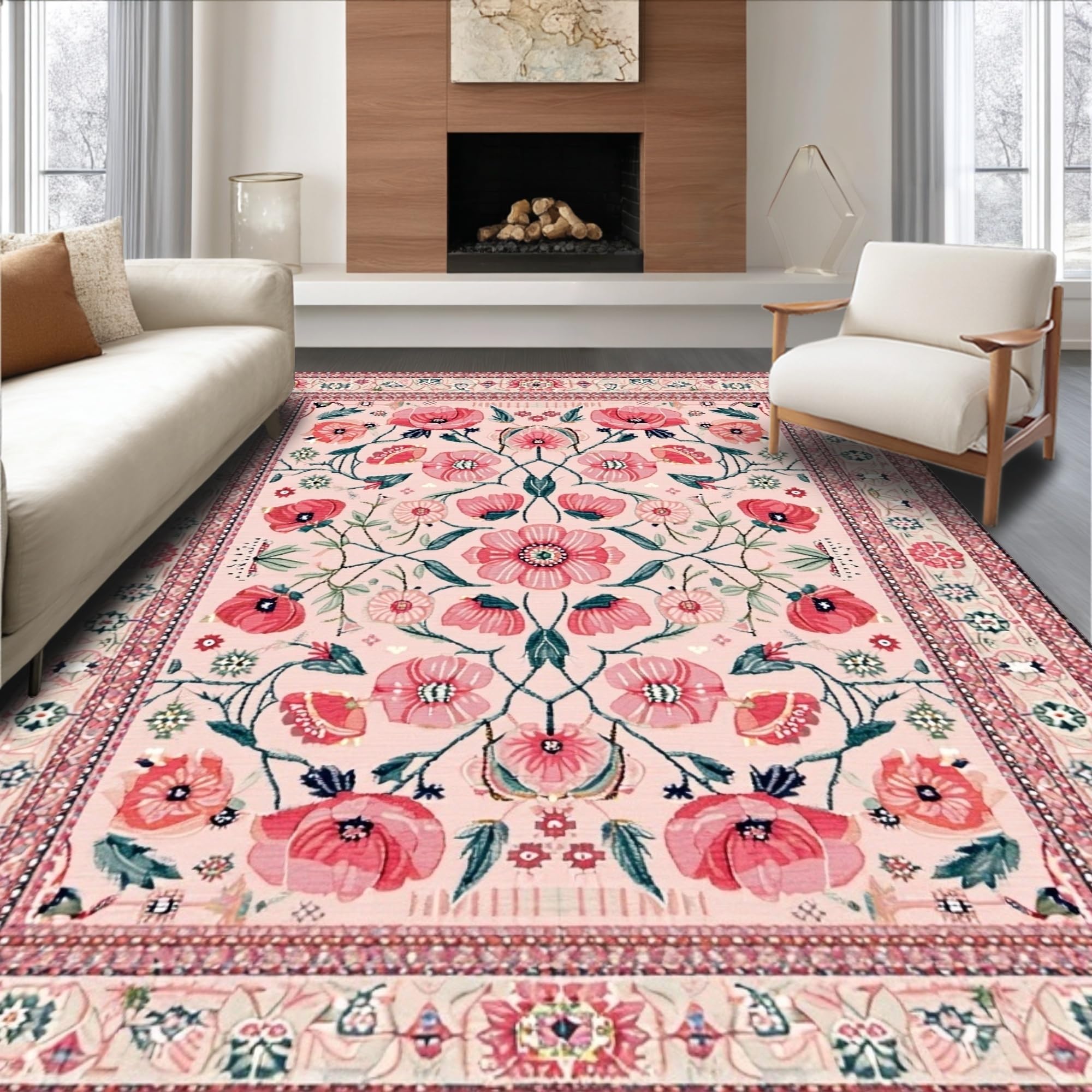 Ultra Soft Area Rug, Non Slip, Stain Resistant, Washable Area Rugs for Living Room, Bedroom, Trendy Soft Pink Lattice Pattern(Pink) Overview: