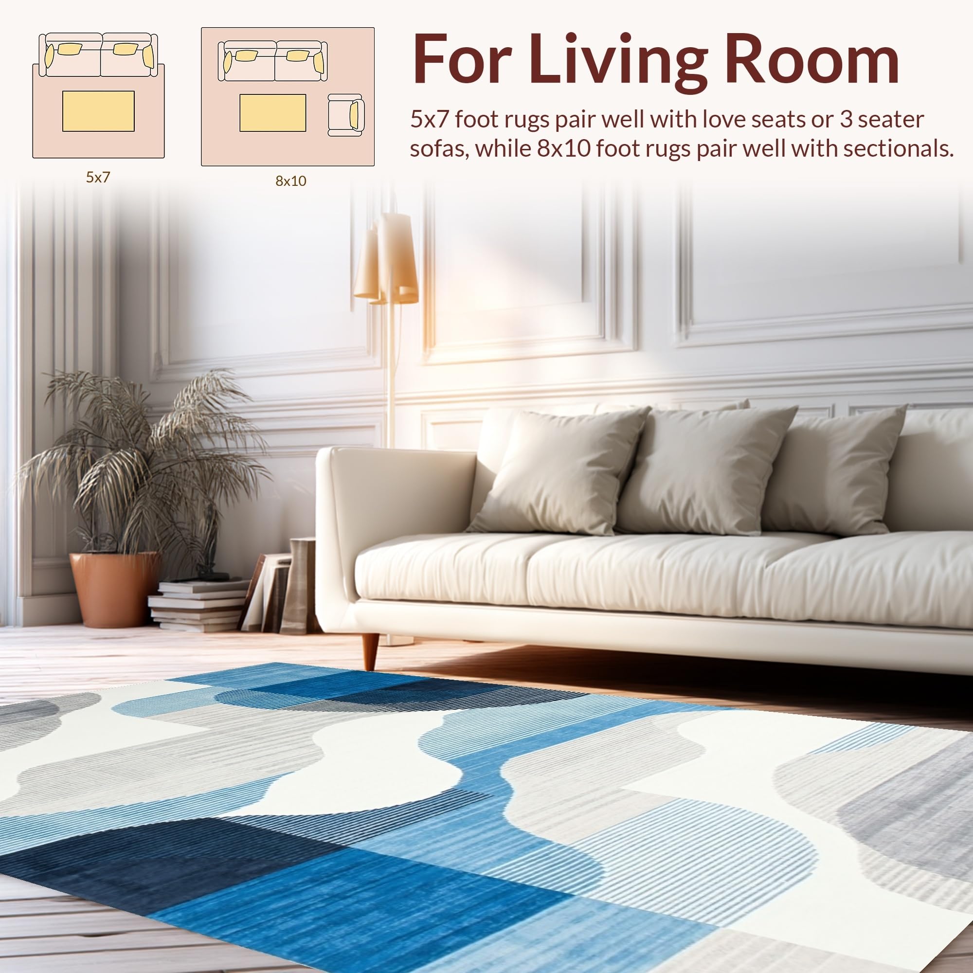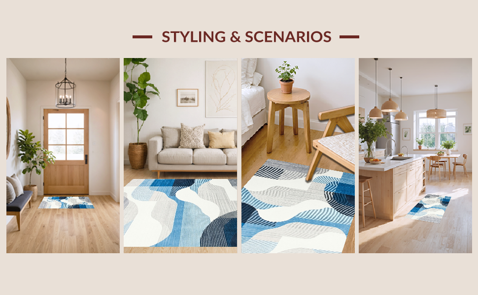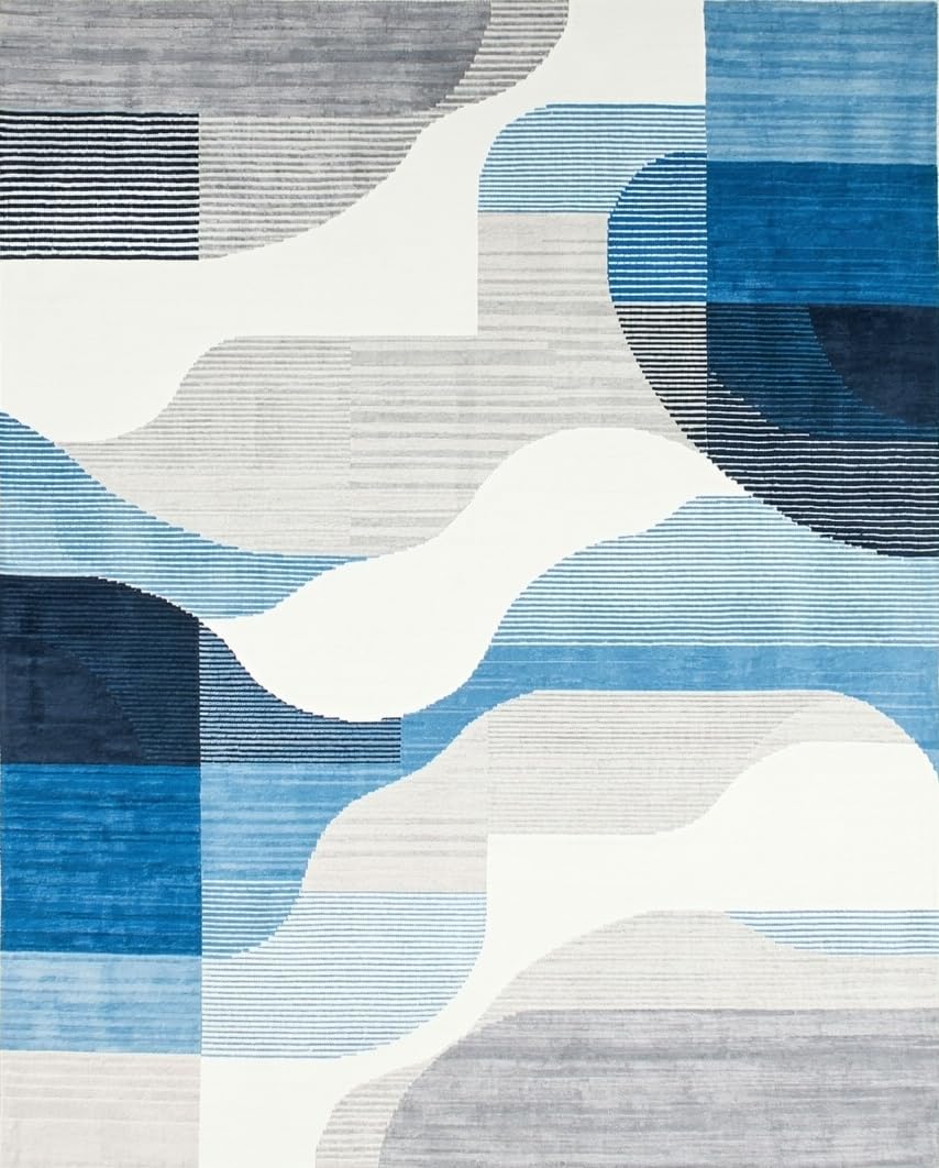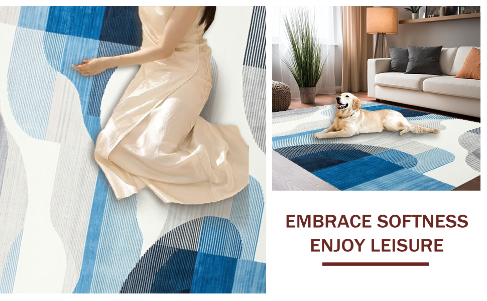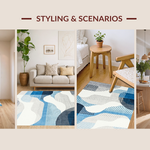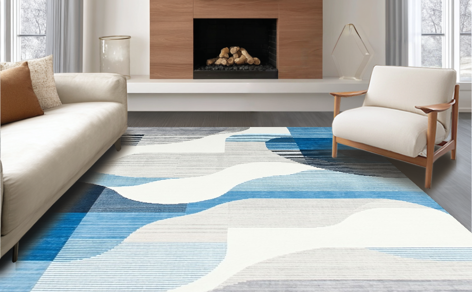 Ultra Soft Area Rug, Non Slip, Stain Resistant, Washable Area Rugs for Living Room, Bedroom, Trendy Soft-toned Artistic Flow(Blue) Overview: