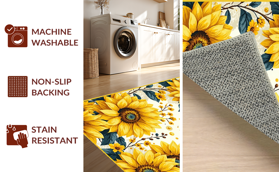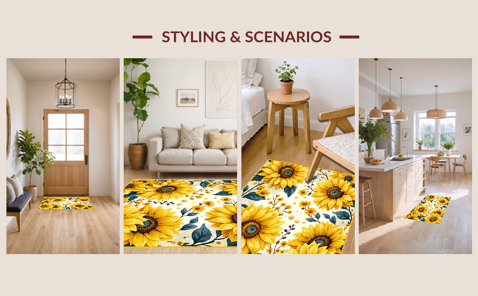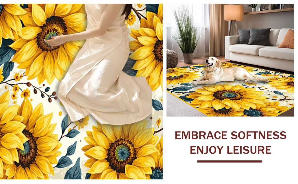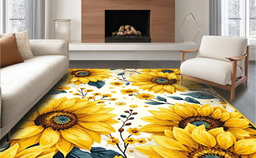 Ultra Soft Area Rug, Non Slip, Stain Resistant, Washable Area Rugs for Living Room, Bedroom, Trendy Yellow Floral Harmony(Yellow) Overview: