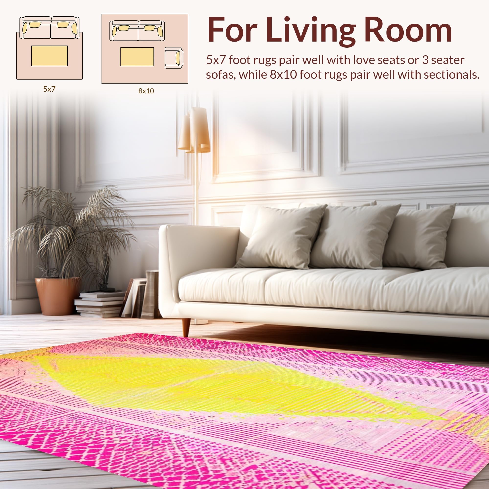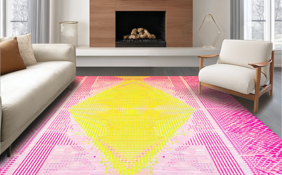 Ultra Soft Area Rug, Non Slip, Stain Resistant, Washable Area Rugs for Living Room, Bedroom, Trendy Youthful Diamond Texture(Pink) Overview: