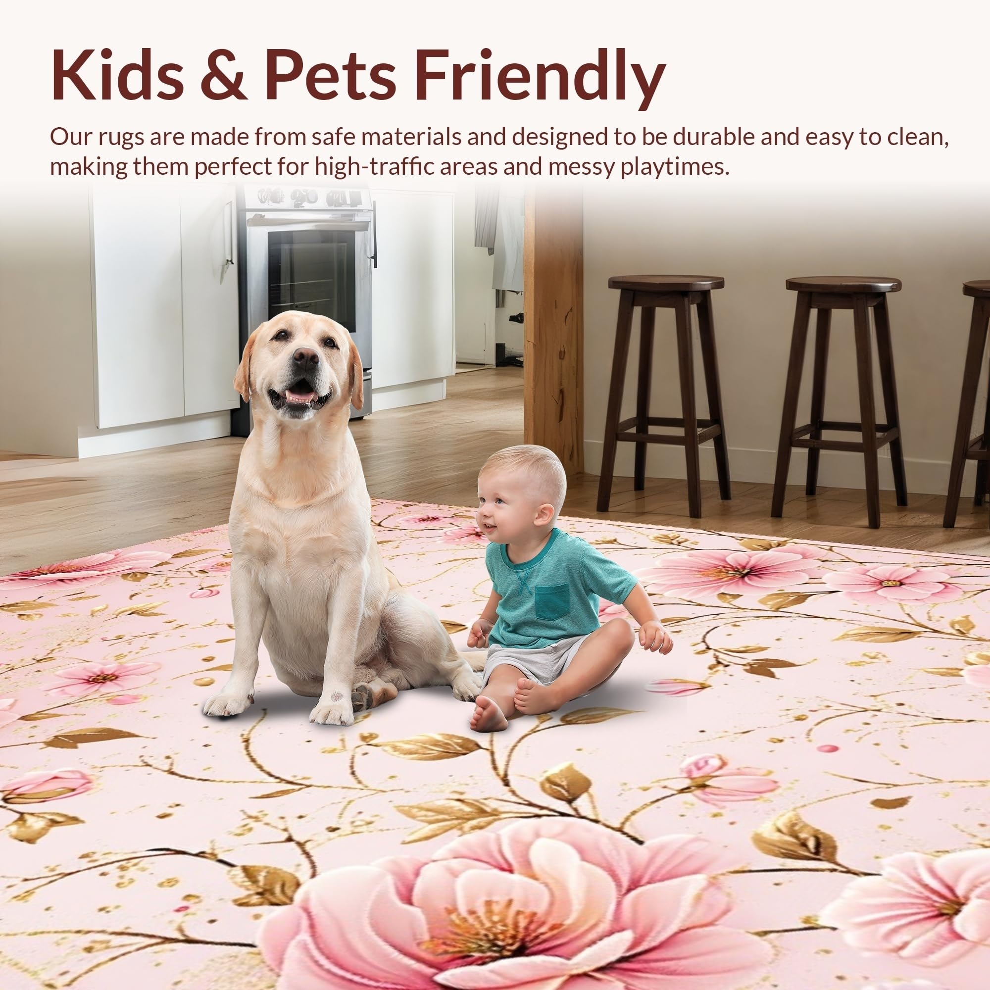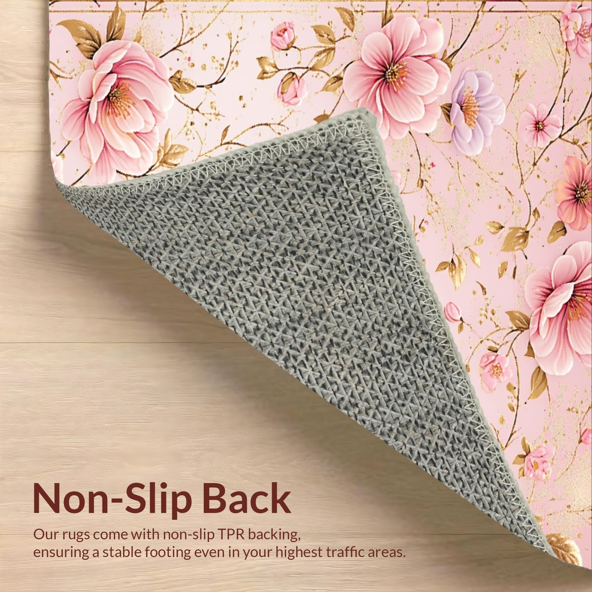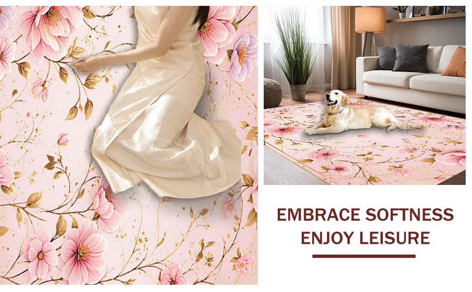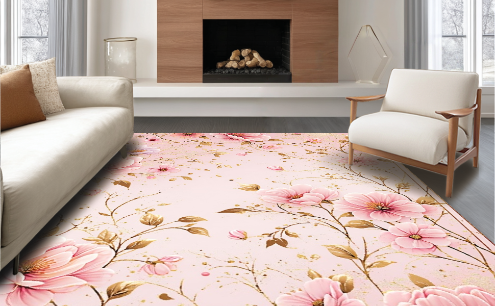 Ultra Soft Area Rug, Non Slip, Stain Resistant, Washable Area Rugs for Living Room, Bedroom, Trendy Youthful Floral Expression(Pink) Overview: