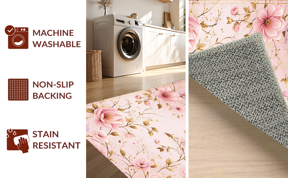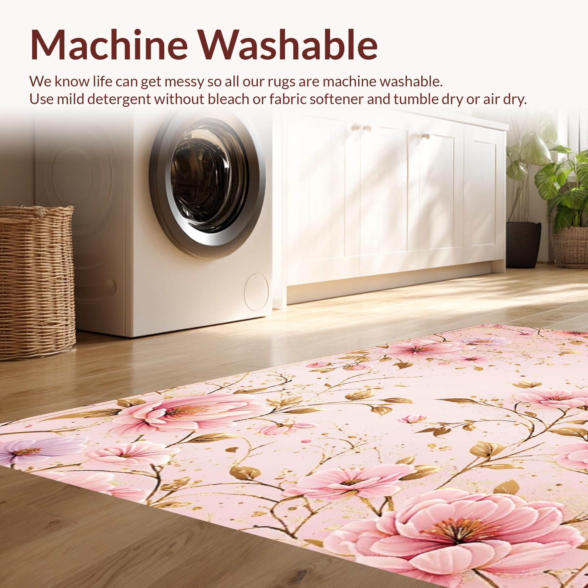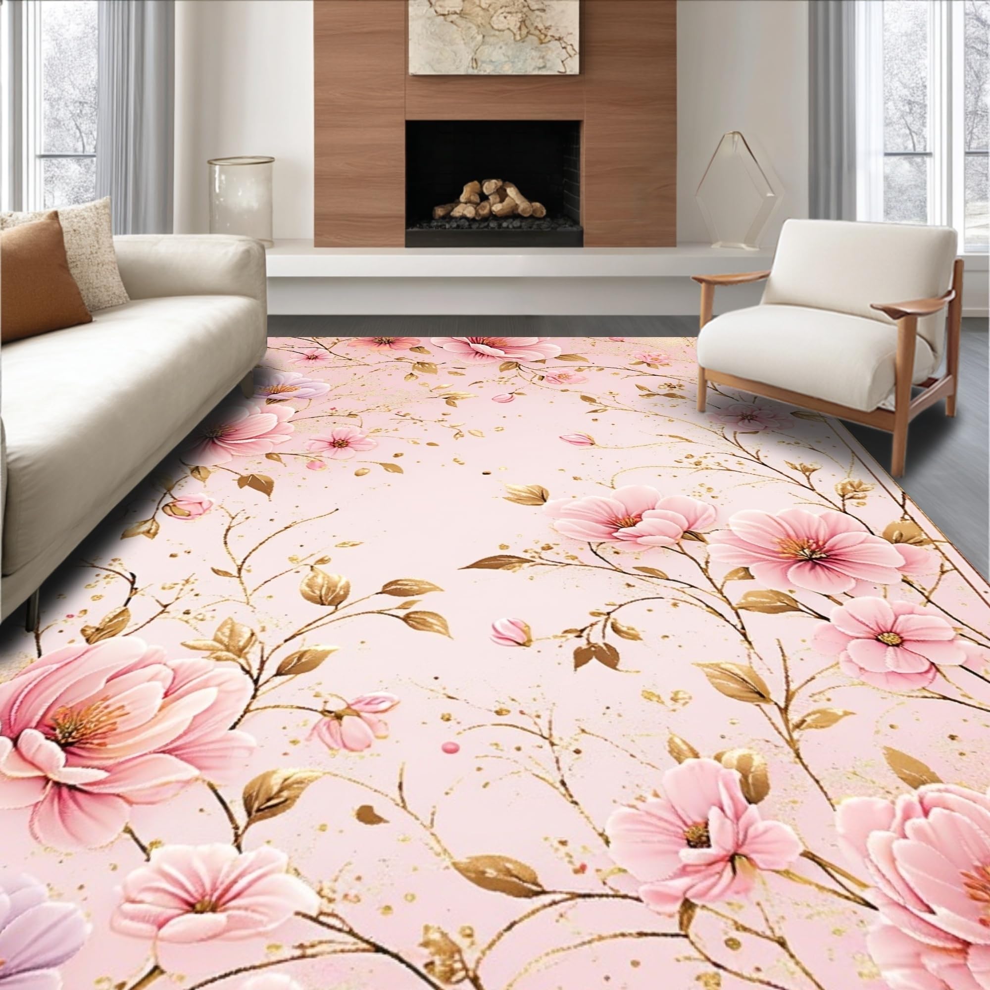 Ultra Soft Area Rug, Non Slip, Stain Resistant, Washable Area Rugs for Living Room, Bedroom, Trendy Youthful Floral Expression(Pink) Overview:
