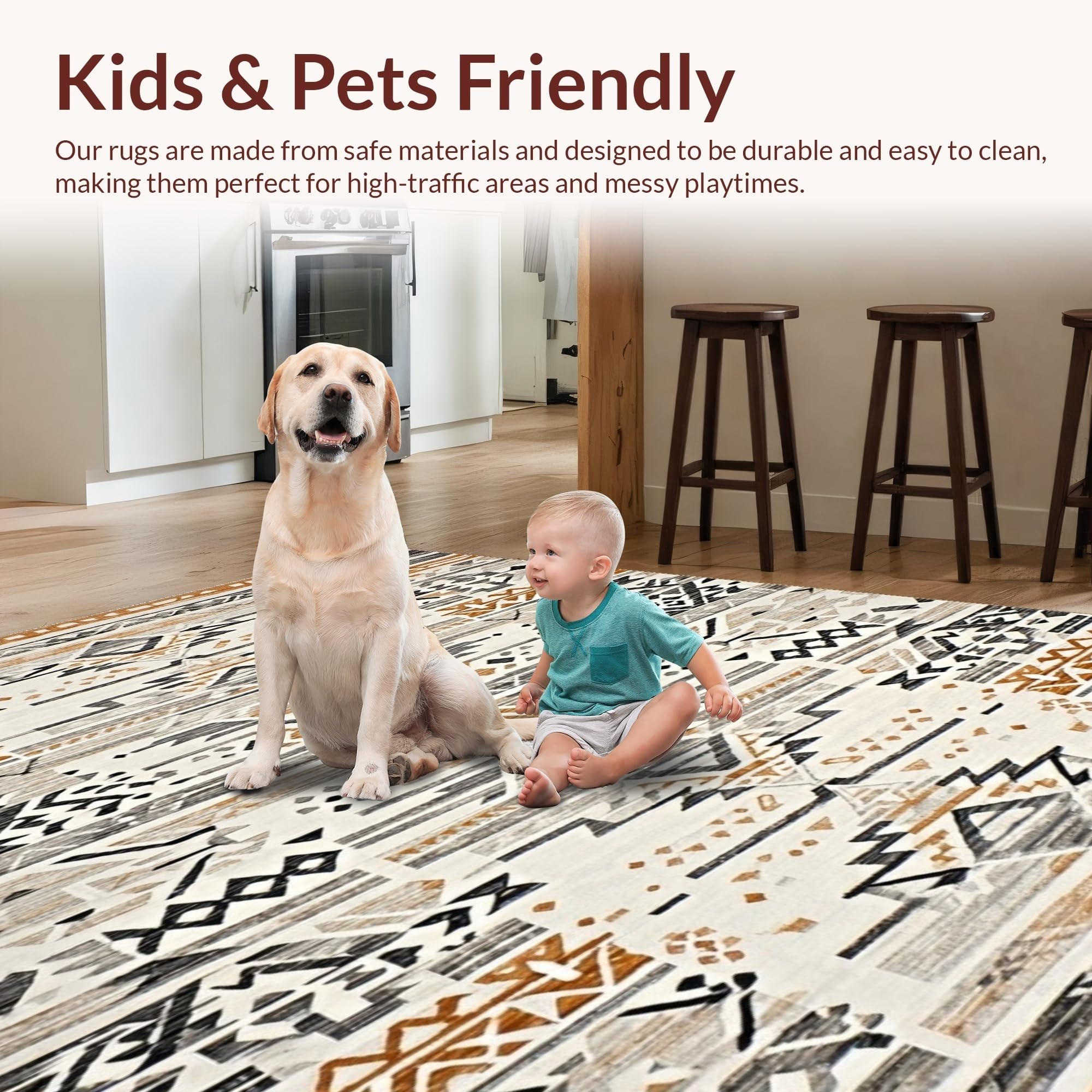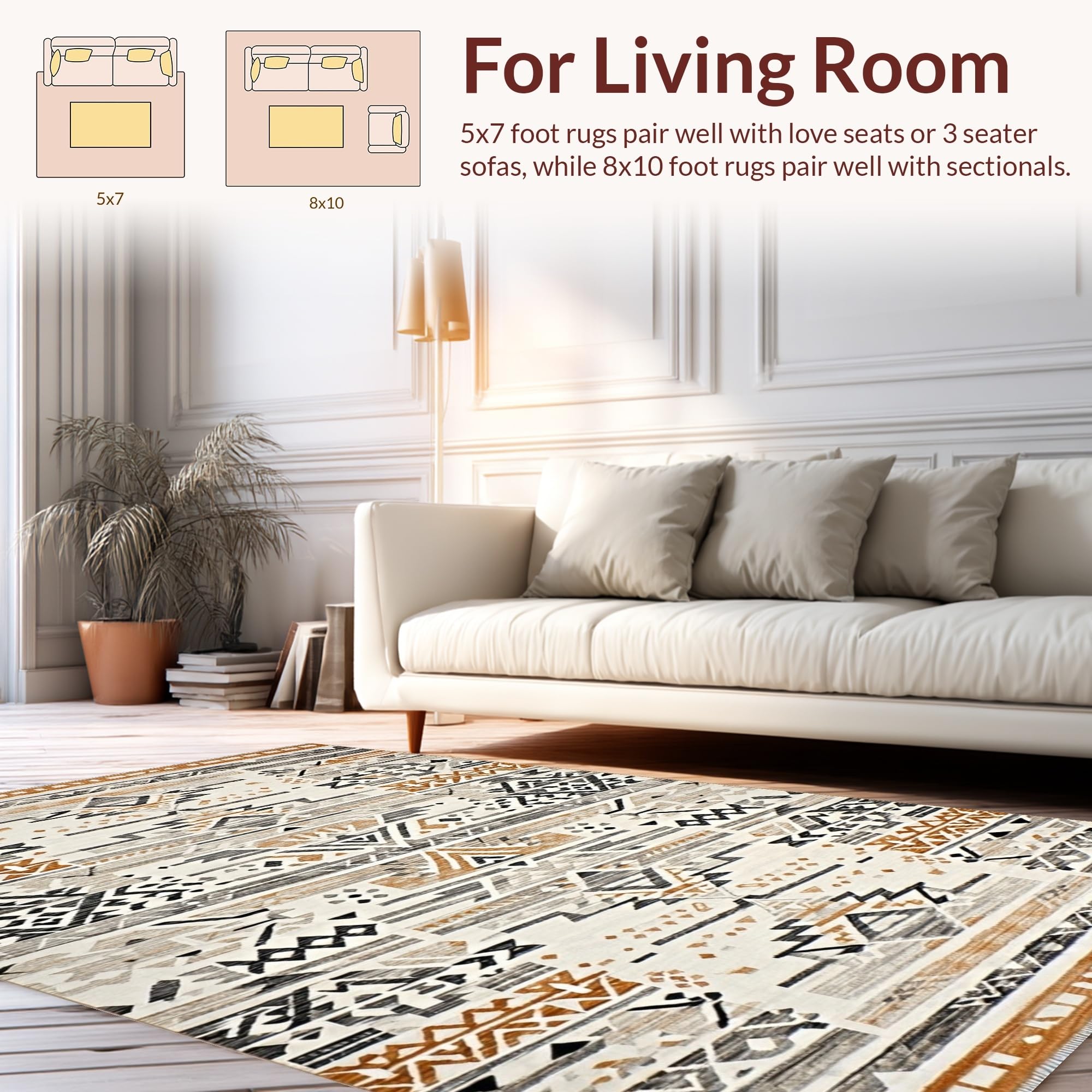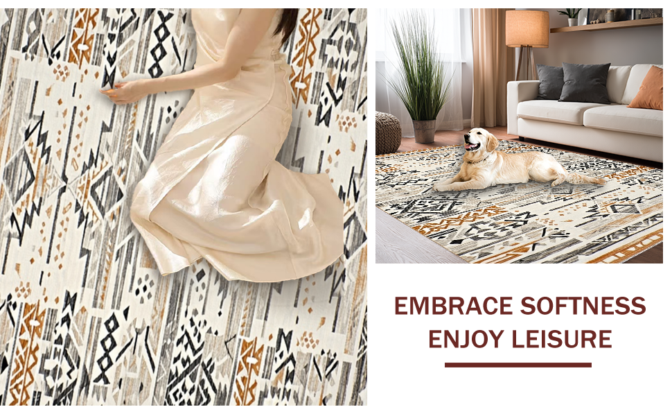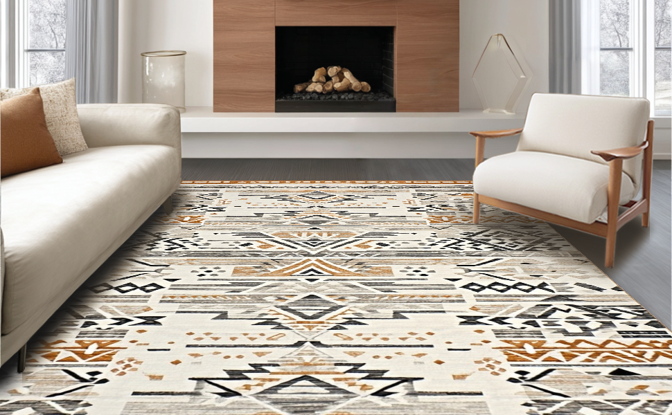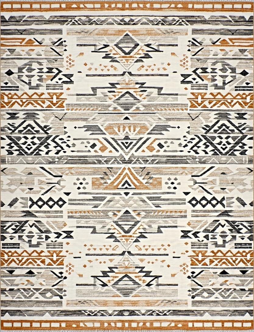 Ultra Soft Area Rug, Non Slip, Stain Resistant, Washable Area Rugs for Living Room, Bedroom, Tribal Earthy Tones Geometric Design(Gray) Overview: