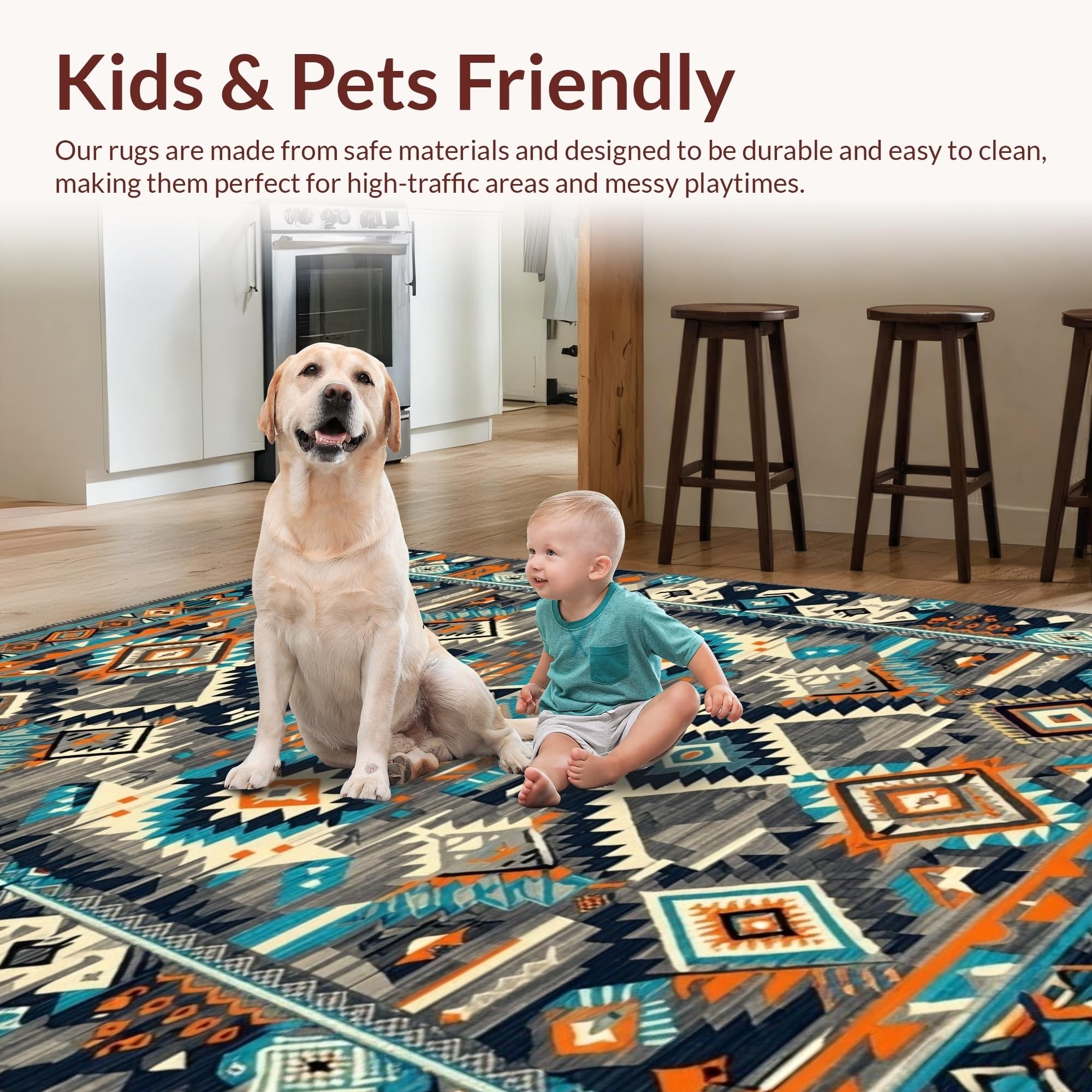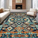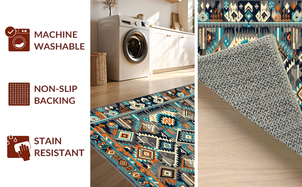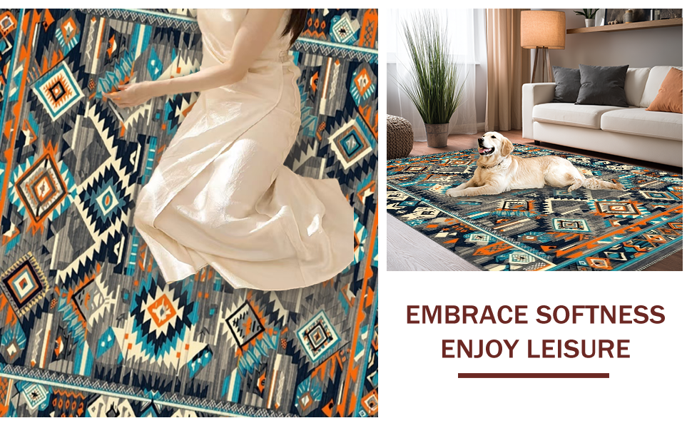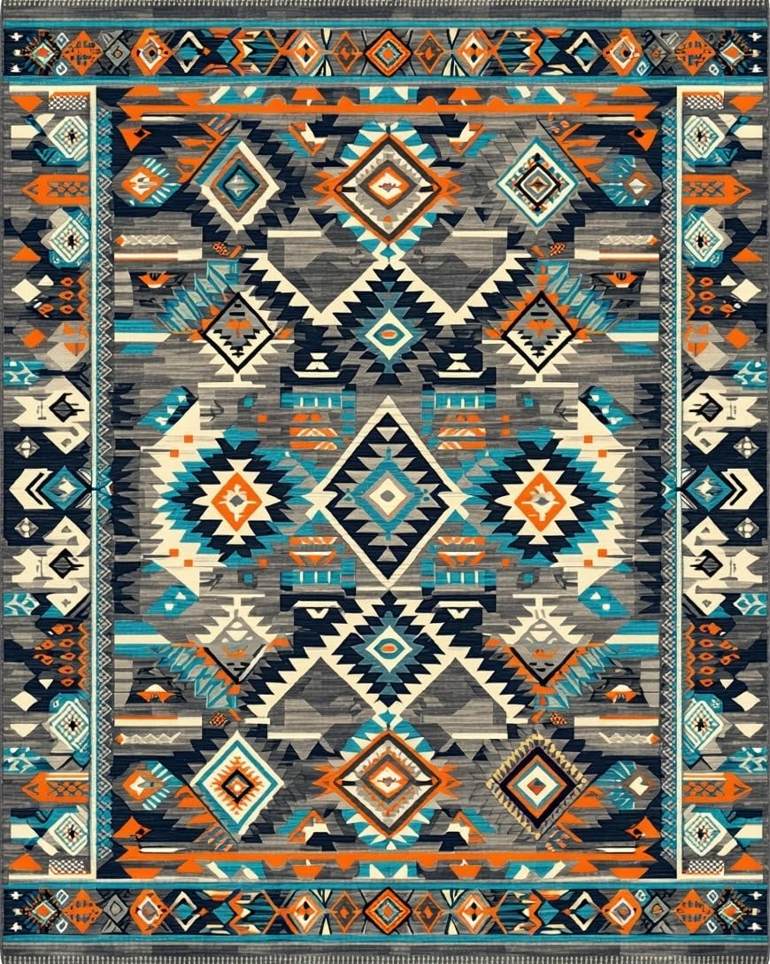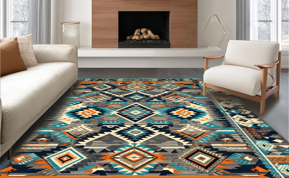 Ultra Soft Area Rug, Non Slip, Stain Resistant, Washable Area Rugs for Living Room, Bedroom, Tribal-Inspired Earthy Tones(Blue) Overview: