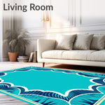 Flatwoven High Traffic Area Rug, Tropical Artisanal Bordered, Non Slip, Stain Resistant, Washable Area Rugs for Living Room, Bedroom (Turquoise) Overview: