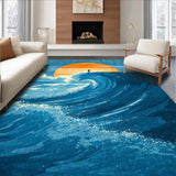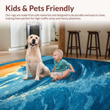 Ultra Soft Area Rug, Non Slip, Stain Resistant, Washable Area Rugs for Living Room, Bedroom, Tropical Bath Mat Surf Board Bathroom Rug Swimmer Coastal Decor(Blue) Overview: