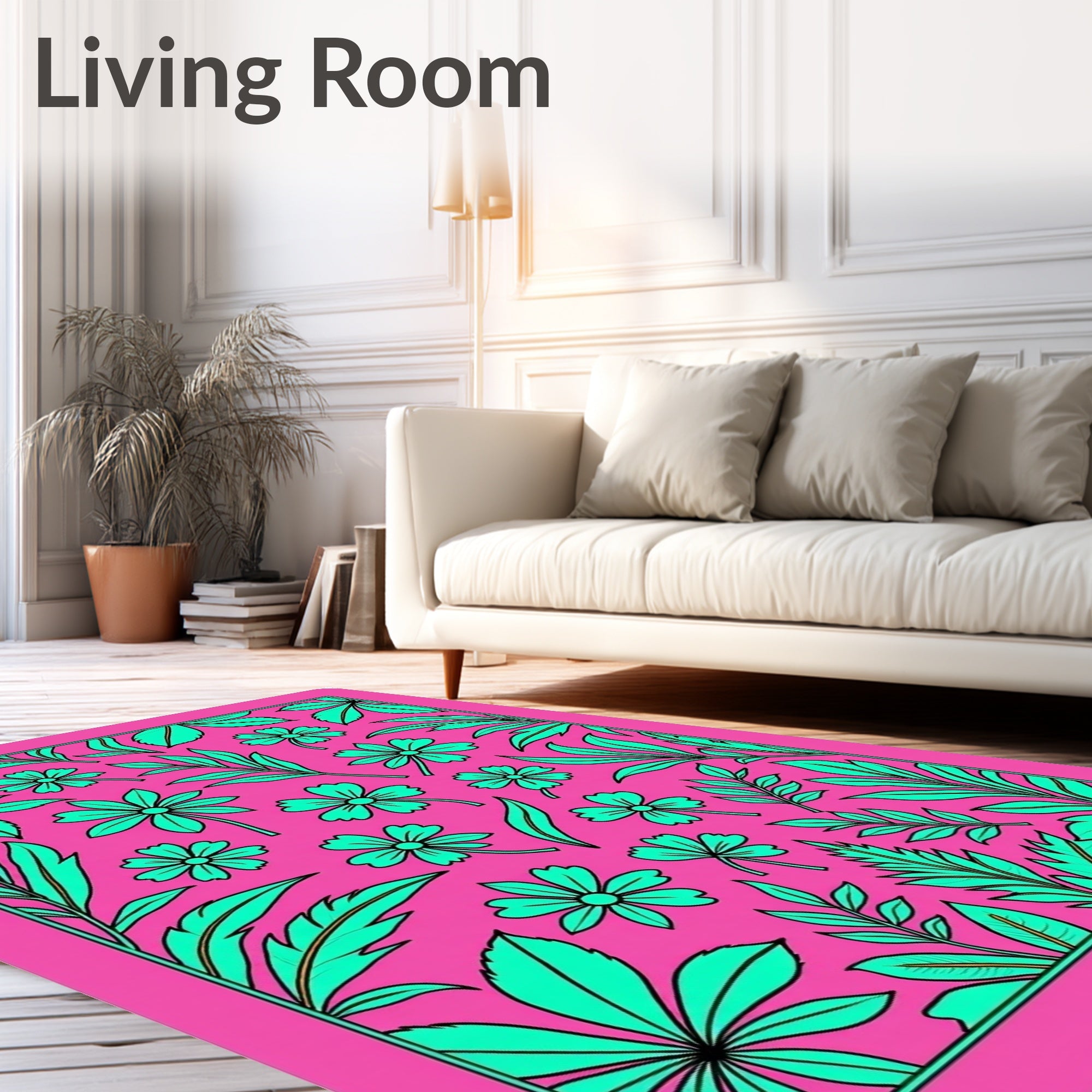 Flatwoven High Traffic Area Rug, Tropical Bloom Corridor Featuring Lush Botanical Motifs, Non Slip, Stain Resistant, Washable Area Rugs for Living Room, Bedroom (Pink) Overview: