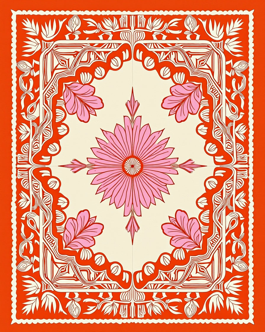 Tropical Bloom Medallion with Interlocking Petal Motifs(Orange)
