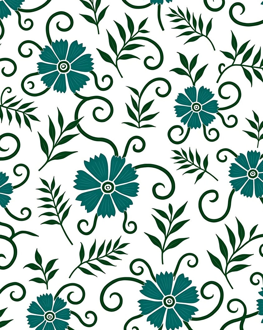 Tropical Botanical Scrolls Featuring Vibrant Exotic Blooms and Ferns(Blue)