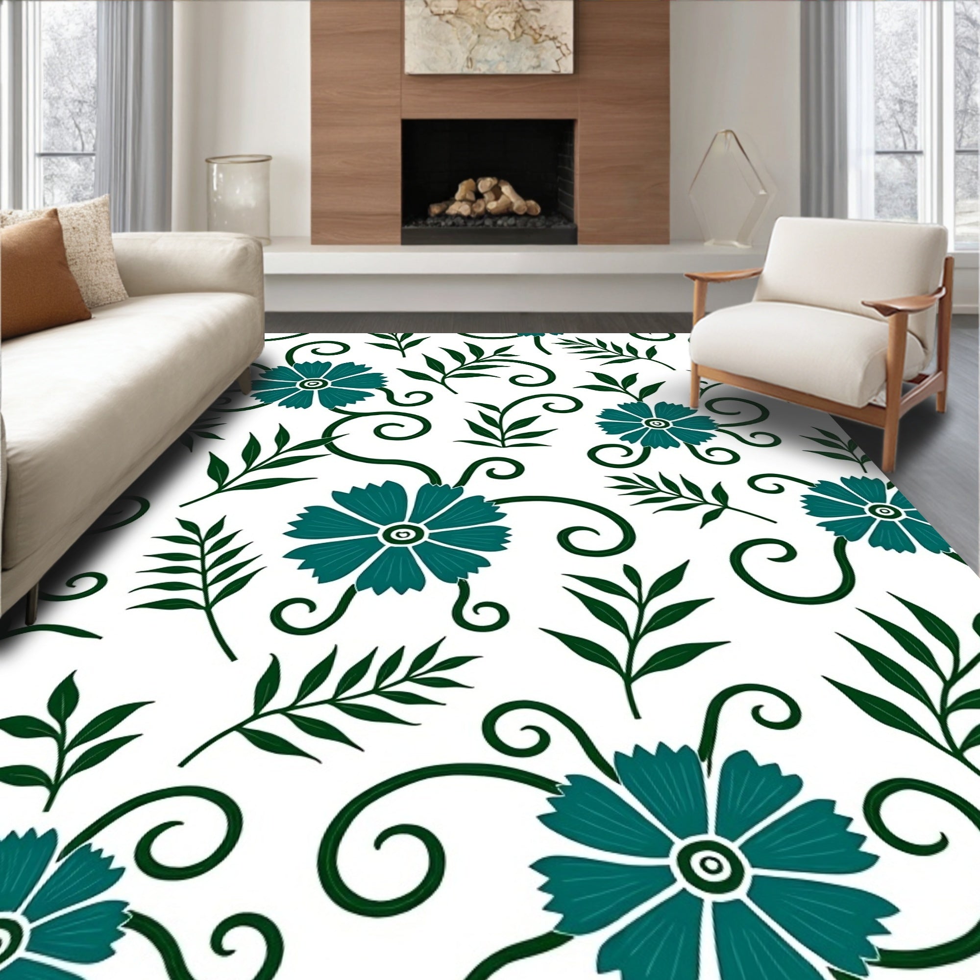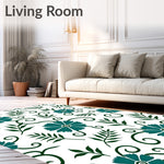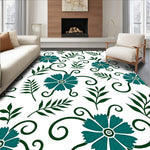 Flatwoven High Traffic Area Rug, Tropical Botanical Scrolls Featuring Vibrant Exotic Blooms and Ferns, Non Slip, Stain Resistant, Washable Area Rugs for Living Room, Bedroom (Blue) Overview: