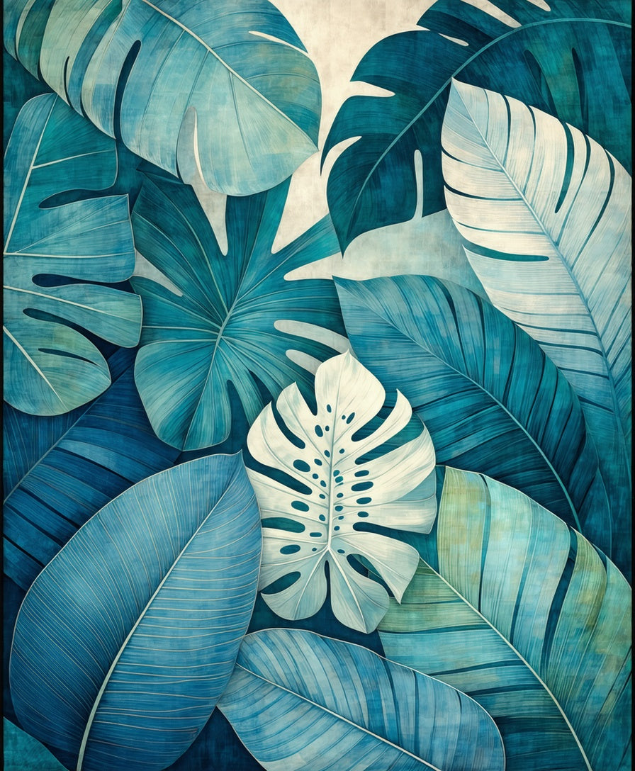 Tropical Breeze Mosaic with Monstera and Areca Leaf Interplay(Teal)