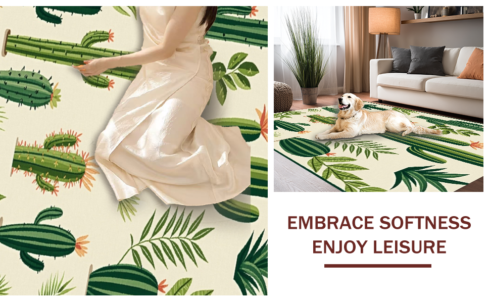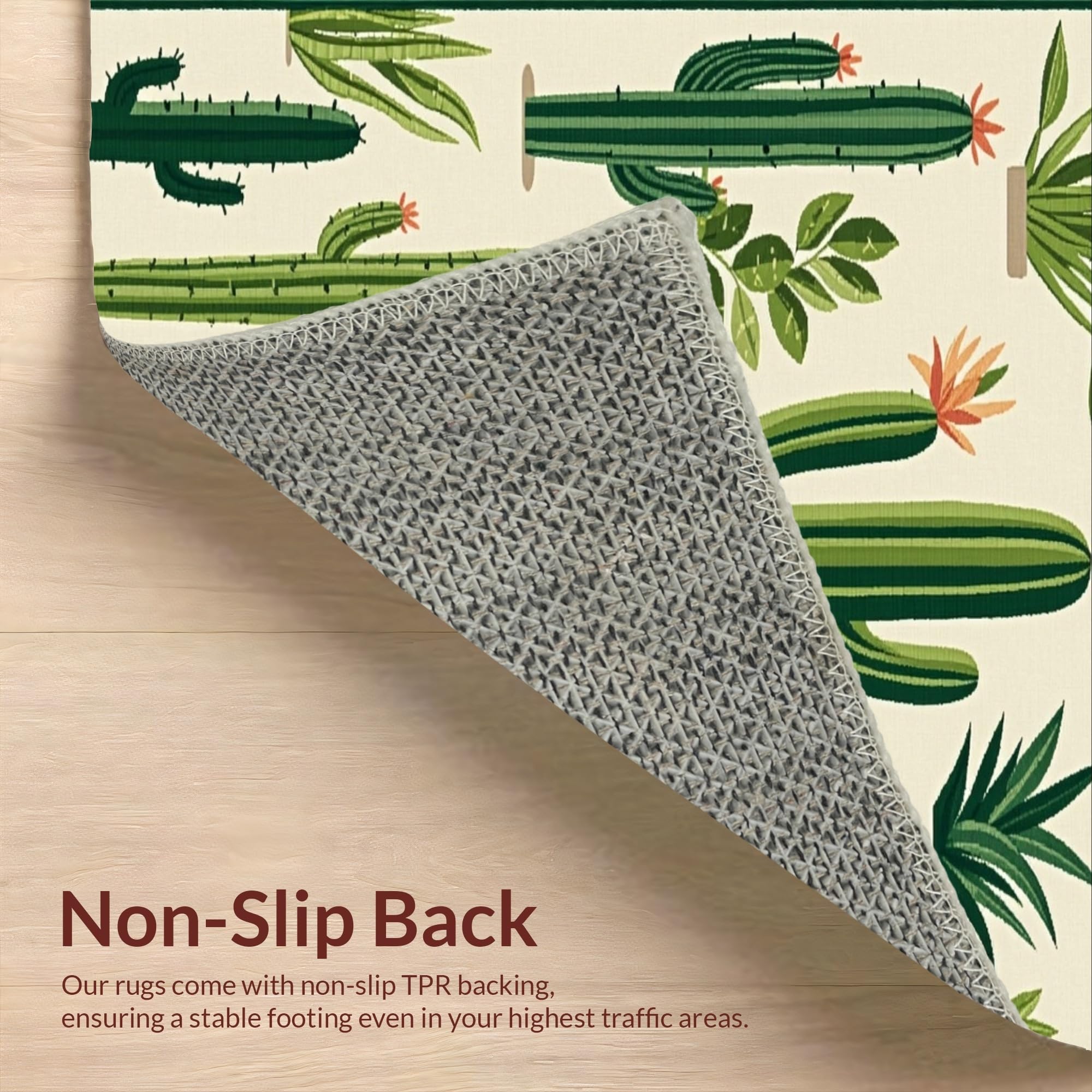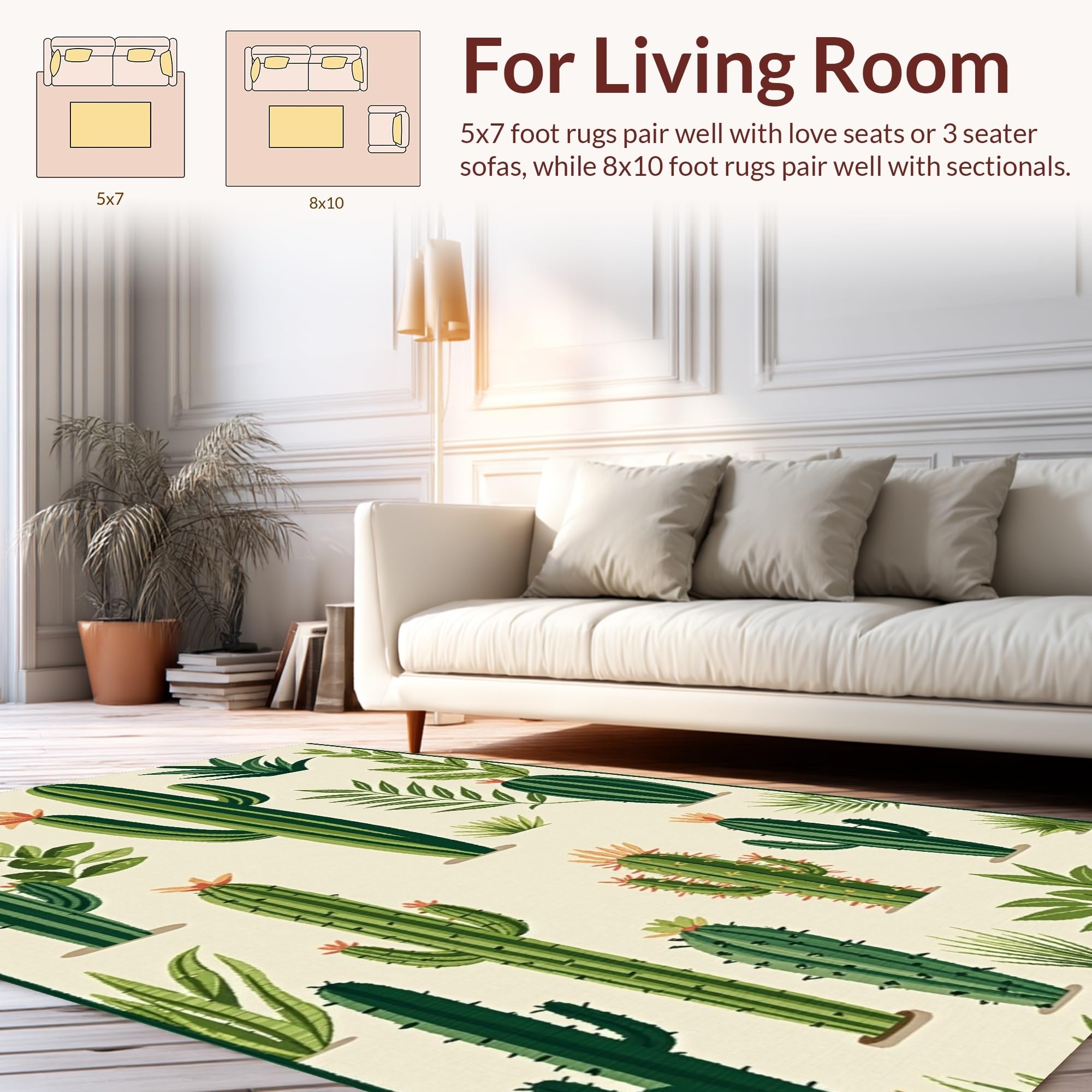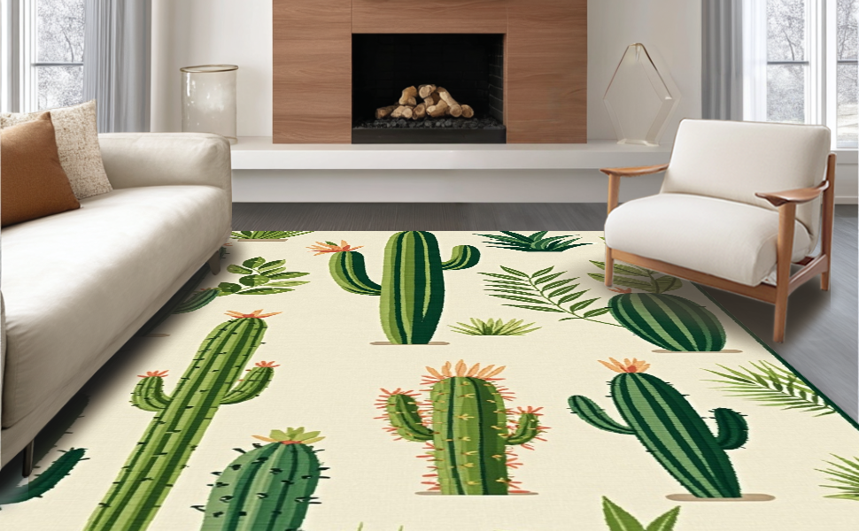 Ultra Soft Area Rug, Non Slip, Stain Resistant, Washable Area Rugs for Living Room, Bedroom, Tropical Cactus Landscape Art(Ivory) Overview: