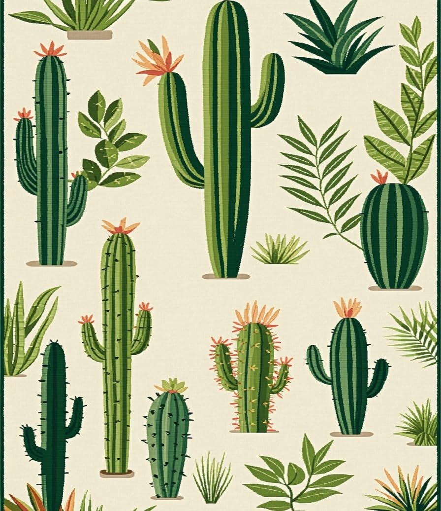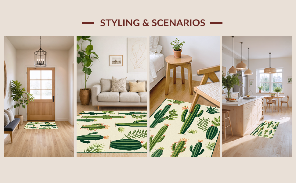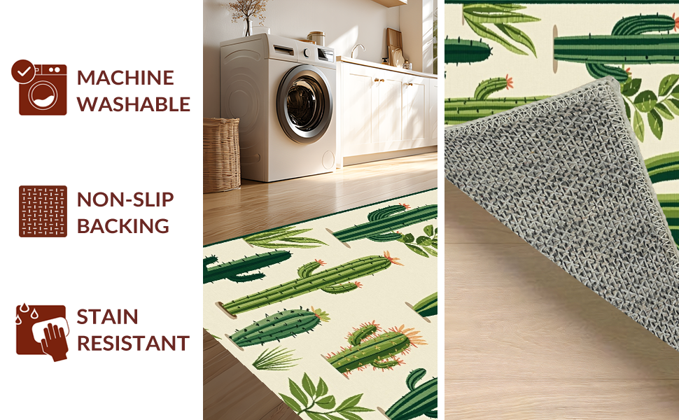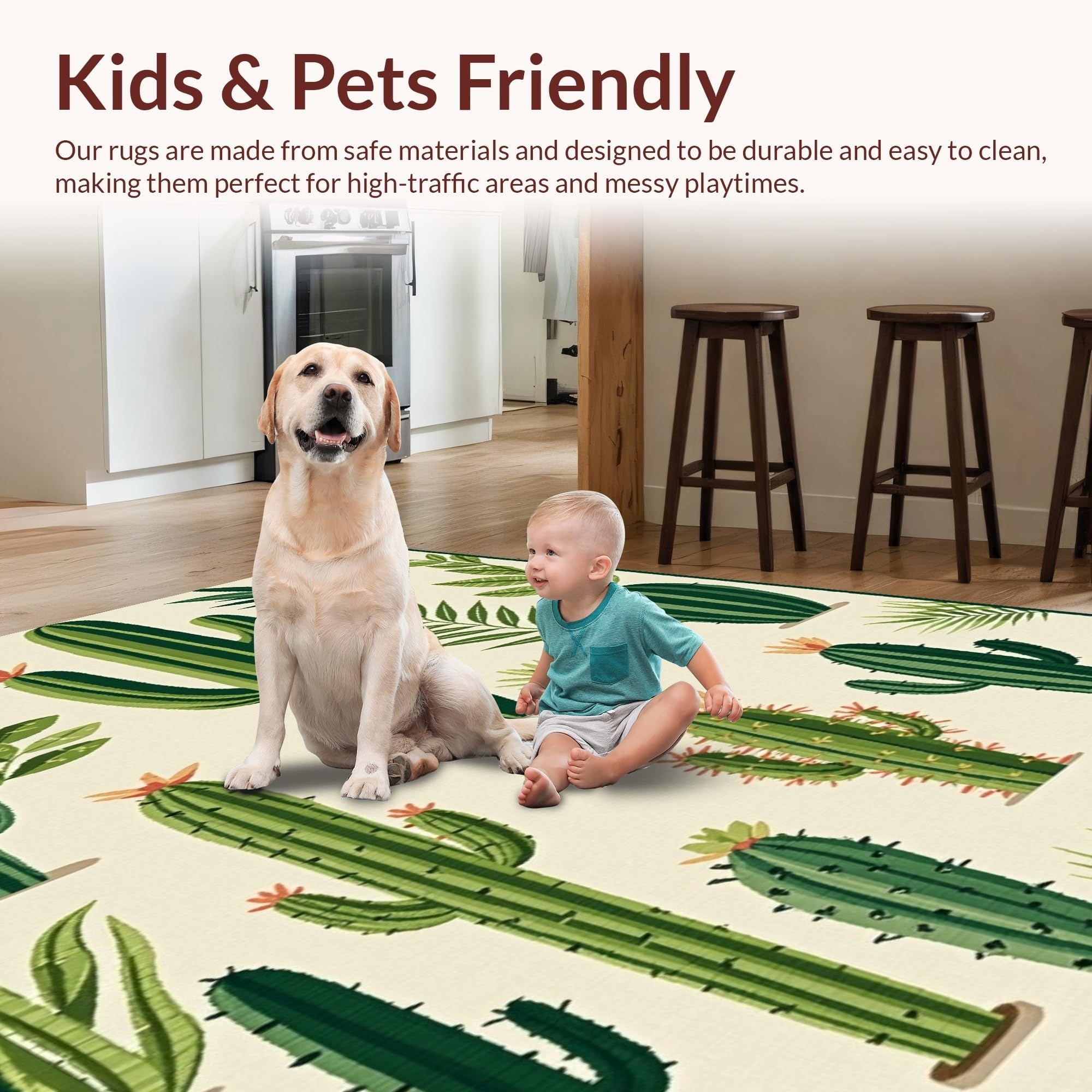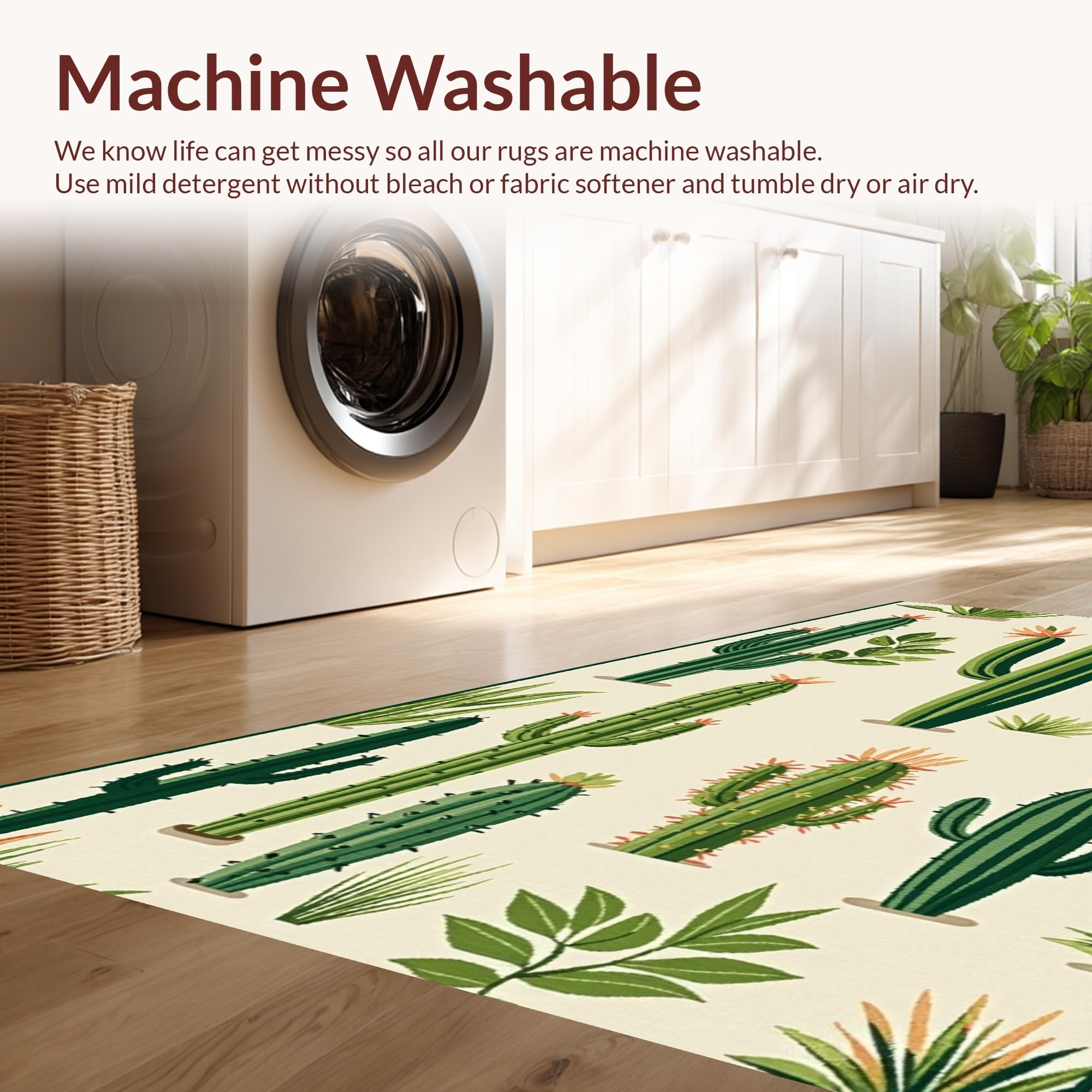 Ultra Soft Area Rug, Non Slip, Stain Resistant, Washable Area Rugs for Living Room, Bedroom, Tropical Cactus Landscape Art(Ivory) Overview: